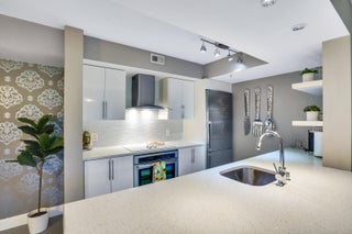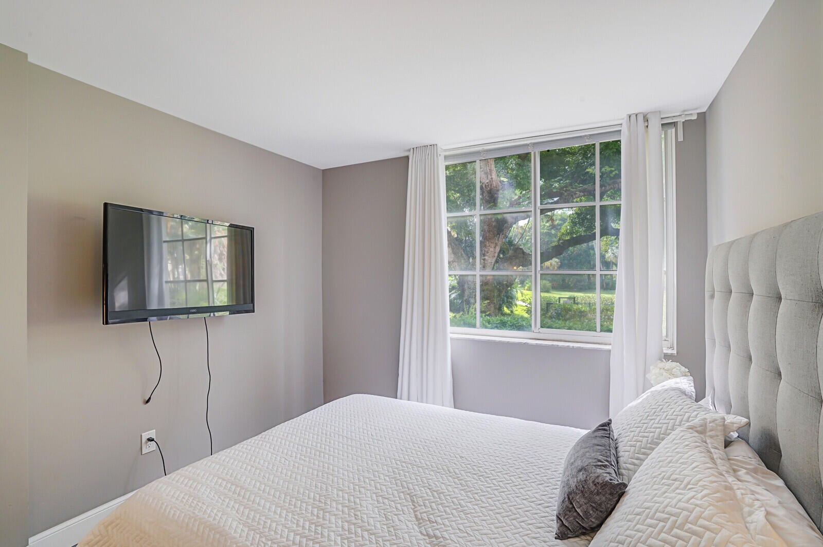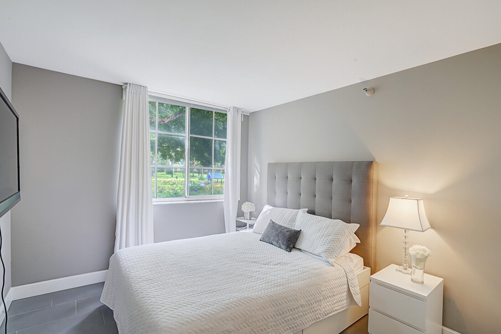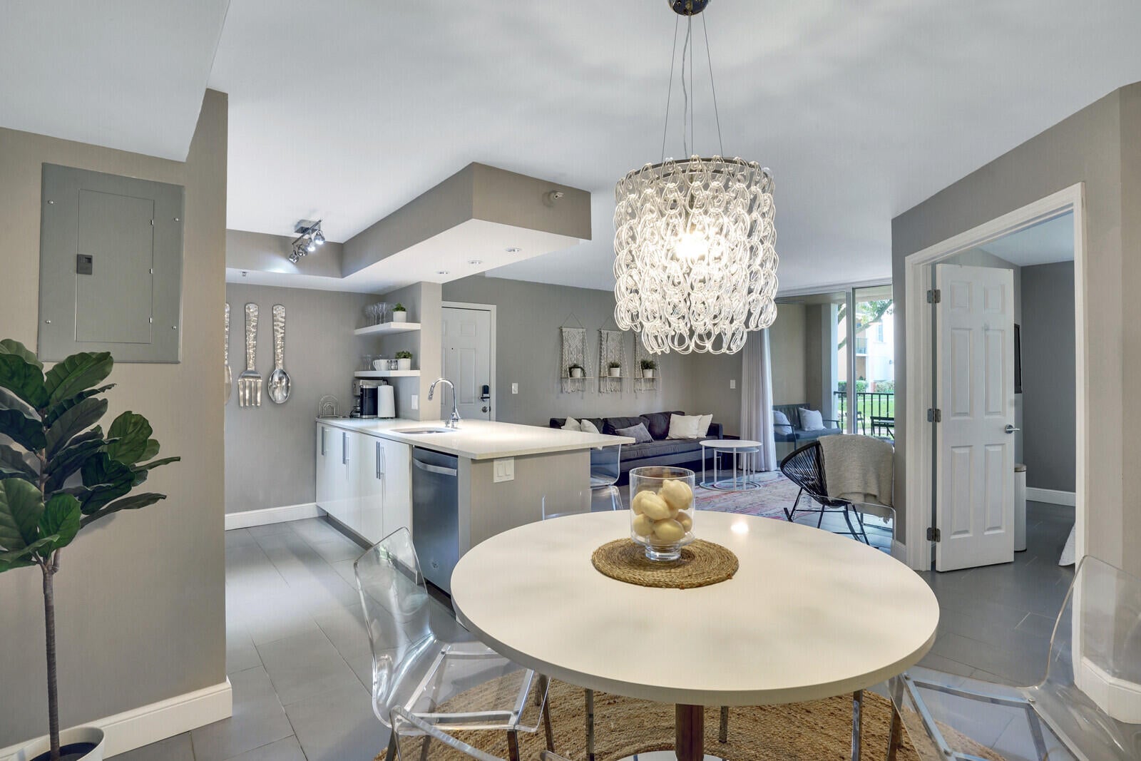 Stunning 2/1 ground-floor condo in the highly sought-after Yacht Club on the Intracoastal. FURNISHED. This beautifully custom-designed, turnkey residence is located in a gated, resort-style community and features a peaceful garden view, a private covered patio perfect for outdoor dining, and an open-concept layout ideal for modern living. The interior showcases a sleek stainless-steel kitchen with quartz countertops, custom cabinetry, designer lighting, and custom wallpaper in the dining area. The spacious primary bedroom includes a generous walk-in closet, and both bedrooms are thoughtfully appointed for comfort and style. Enjoy acres of lush, landscaped grounds and top-tier amenities including two pools directly on the Intracoastal for boat watching and beachy living