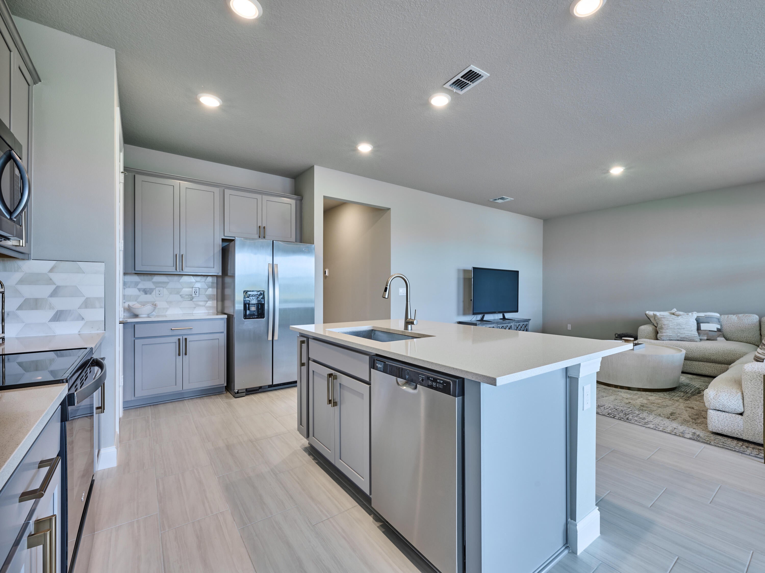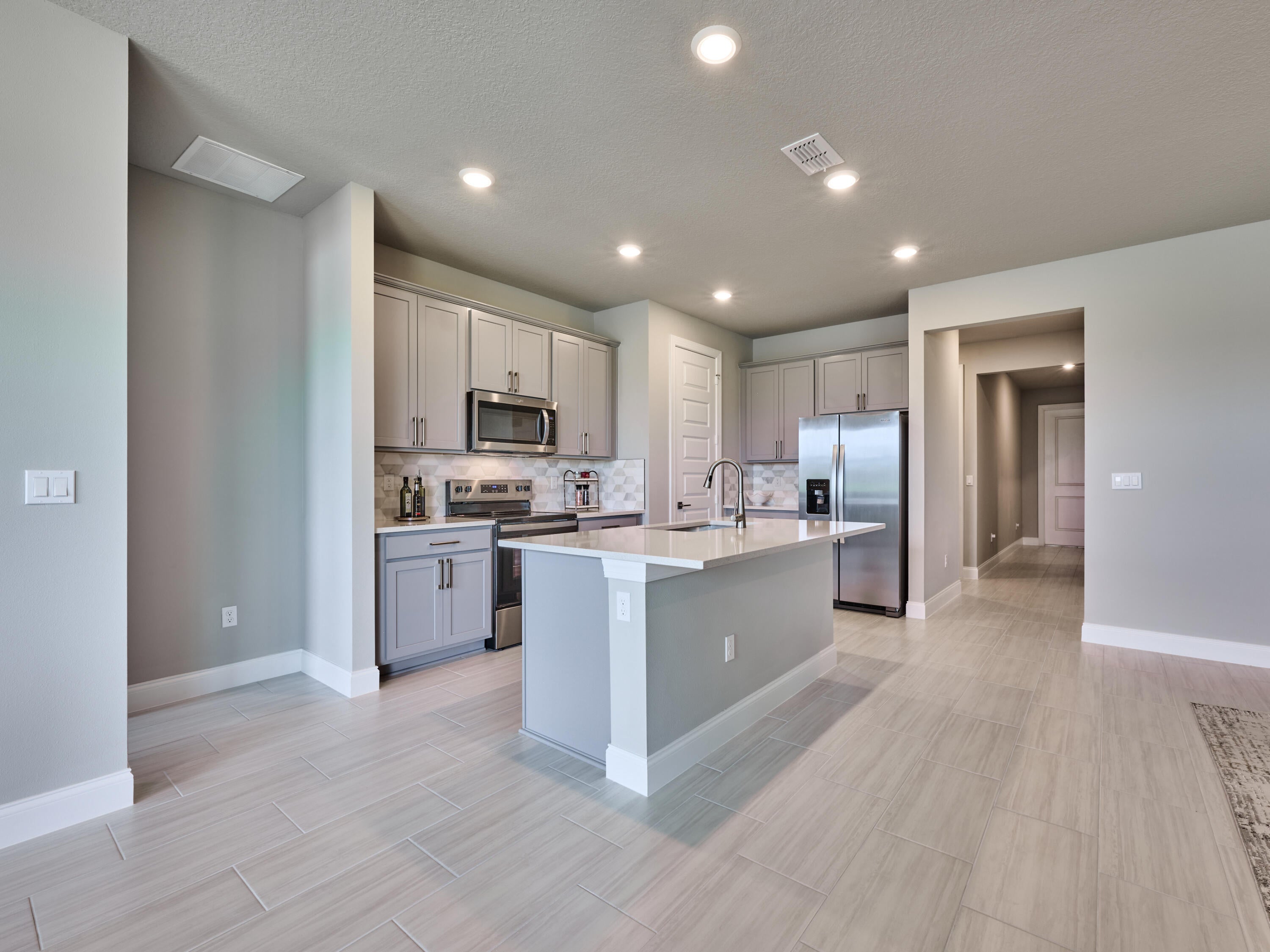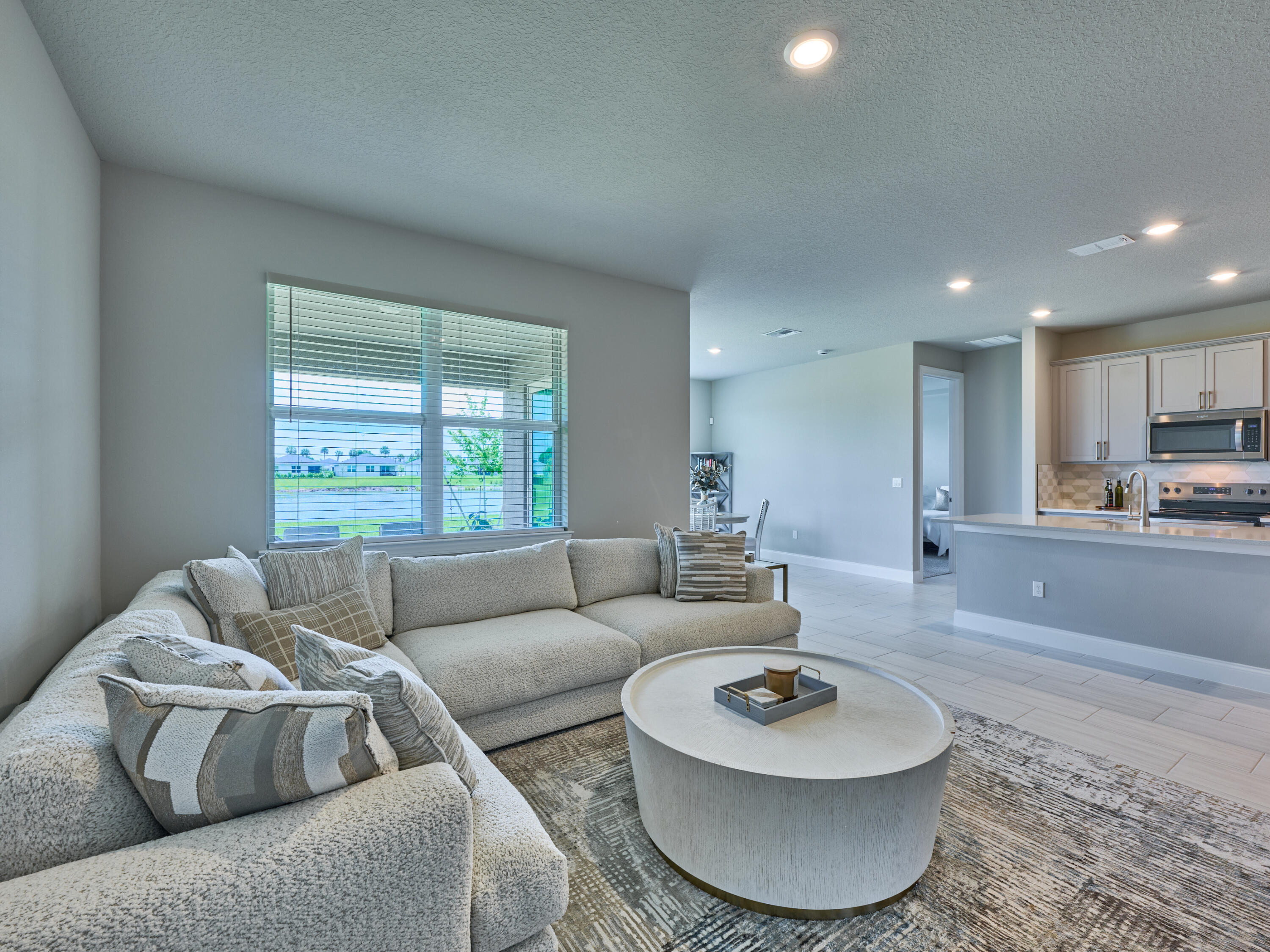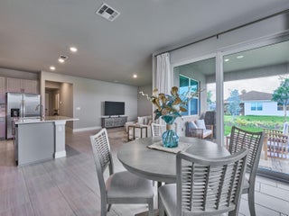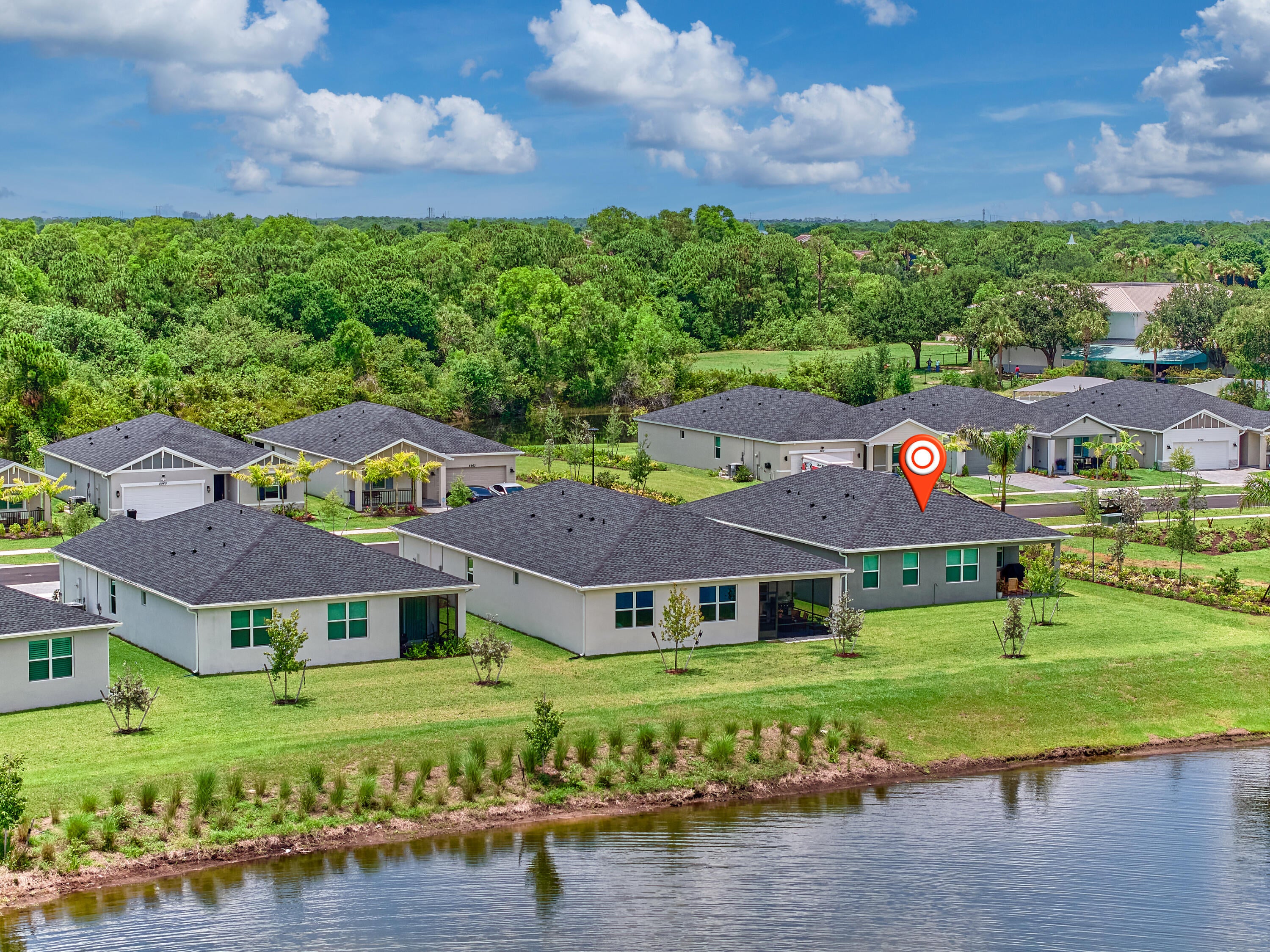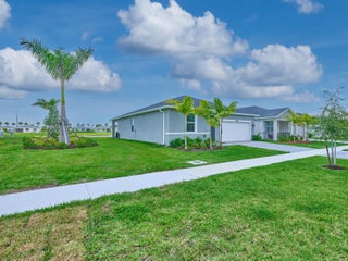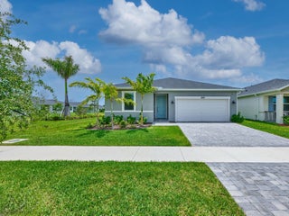 Welcome to the beautiful gated community of Azalea! Step into this breathtaking 2024 CBS-built home offering the perfect blend of style and comfort. With 3 bedrooms and 2 bathrooms, this thoughtfully designed split floor plan is ideal for both entertaining and everyday life. The heart of the home is the elegant kitchen, featuring stainless steel appliances, a walk-in pantry, and space for a coffee bar or cocktail nook. The kitchen overlooks the living area, so you can stay connected with family and guests while cooking. The dining area sits just off the kitchen with lovely views of the lake. The owner's suite is a private retreat, complete with a window showcasing lake views, dual sinks, a walk-in closet, and an extra storage closet. Enjoy added convenience with an indoor laundryroom, and peace of mind with a full suite of smart home features; including a smart thermostat, keypad front door entry, doorbell camera, and a security system, all operable from your smartphone. Step outside to a peaceful open patio overlooking the lake, perfect for relaxing or entertaining. LAWN MAINTENANCE INCLUDED! Ideally located close to Publix, I-95, restaurants, and shopping, combining easy access to everyday conveniences with serene lakefront living.