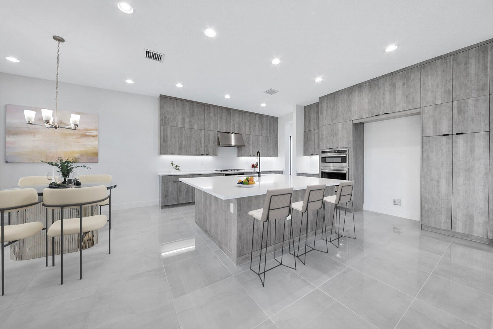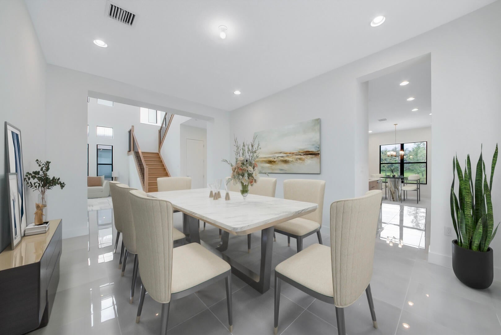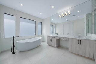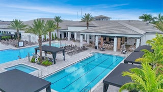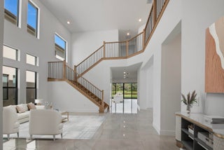 Welcome to this stunning Polynesia model in the sought-after community of Lotus Palm. The foyer leads to a formal living room with soaring two-story ceilings and an elegant formal dining area. The spacious family room flows seamlessly into an open chef's kitchen featuring quartz countertops, a center island with snack bar, stainless steel appliances, double ovens, a 5-burner gas range, and a sunny breakfast nook. The first floor also offers a cabana bath and a guest bedroom with an ensuite bath and walk-in closet. Upstairs, the luxurious primary suite impresses with a double-door entry, coffered ceiling, expansive walk-in closet, and his and hers bathrooms.On the 2nd floor you will also find three additional bedrooms include one with balcony access, along with a versatile loft. Additional features include neutral flooring, abundant recessed lighting, storage under the stairs, impact glass, and a 75-gallon gas water heater. Enjoy serene lake views from the covered patio surrounded by lush tropical landscaping, perfect for relaxing or entertaining. Lotus Palm offers resort-style living with a 26,500+ sq. ft. clubhouse featuring a bistro & bar, lounge, fitness center, game rooms, and an indoor multi-sports court. Enjoy a resort pool with lap lanes, beach entry, splash park, and party pavilion. Sports enthusiasts can play on 6 lighted tennis courts, 5 pickleball courts, and join clinics or tournaments. The community also offers a yoga garden, family-friendly events, and endless opportunities to relax, connect, and play.