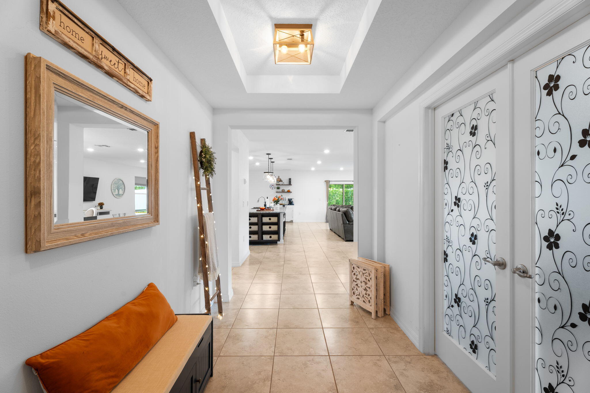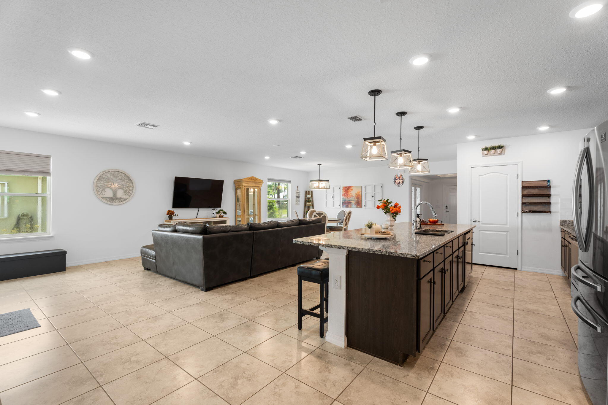 Designed for today's lifestyle with open spaces and timeless finishes, this 2020-built 4 bedroom + den, 3 bath home lives as beautifully as it looks. The oversized kitchen island flows into the great room, the true heart of the home, where style meets connection. A 3-car garage adds versatility for vehicles, storage, or hobbies. Outdoor living is elevated with both a screened front porch and rear patio, designed for year-round enjoyment in Florida's climate. Upgrades like fruit trees, lush landscaping, and a fenced yard complete a move-in ready home. With no HOA, near Crosstown Pkwy for quick I-95 access and 10 minutes to Tradition, this residence brings together lifestyle, location, and value in perfect harmony.