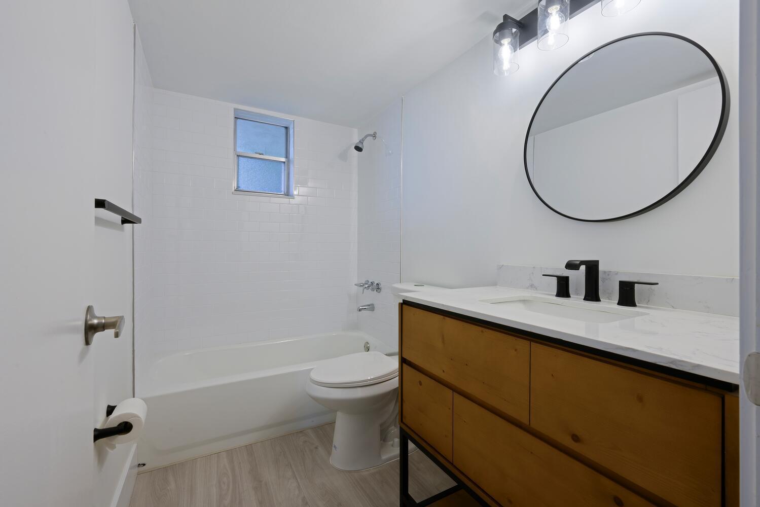Be the first to live in this fully renovated 2-bed, 2-bath first-floor condo, redesigned with modern luxury in mind. Both bathrooms feature brand-new, high-end finishes, including a spa-like walk-in shower in the primary suite. The stunning new kitchen offers white shaker cabinets, quartz countertops, and new stainless-steel appliances. Neutral luxury vinyl plank flooring flows throughout the open living/dining space, leading to an enclosed patio--ideal for relaxing or entertaining. Updates include a new electrical panel, new fixtures, and accordion/roll-down shutters. Stylish, turnkey, and never lived in since renovation! Located in the highly sought after Lake Clarke Gardens, an age 55+ community with amenities that include 2 heated pools, sauna, exercise room, billiards room, & BBQ area