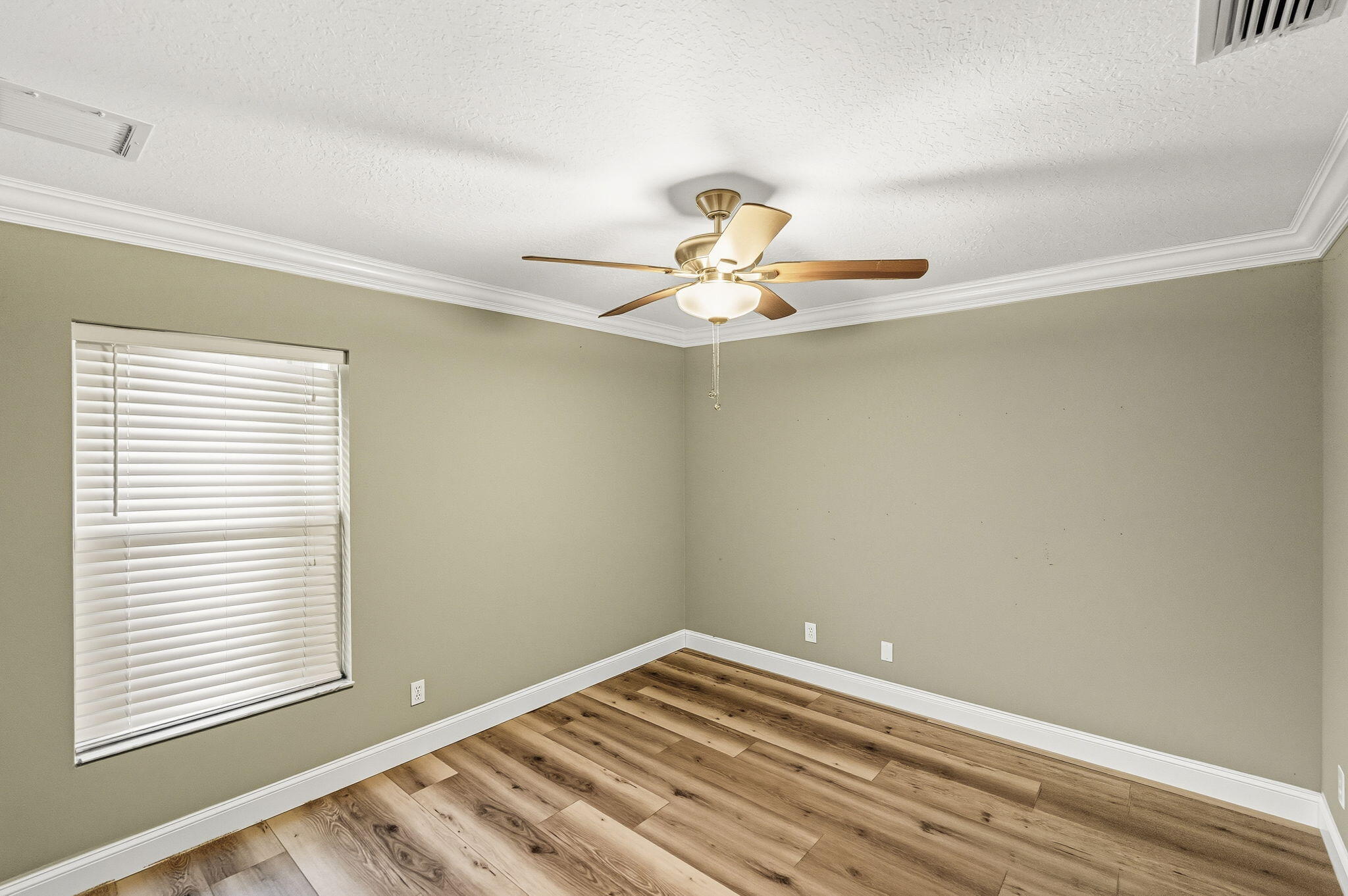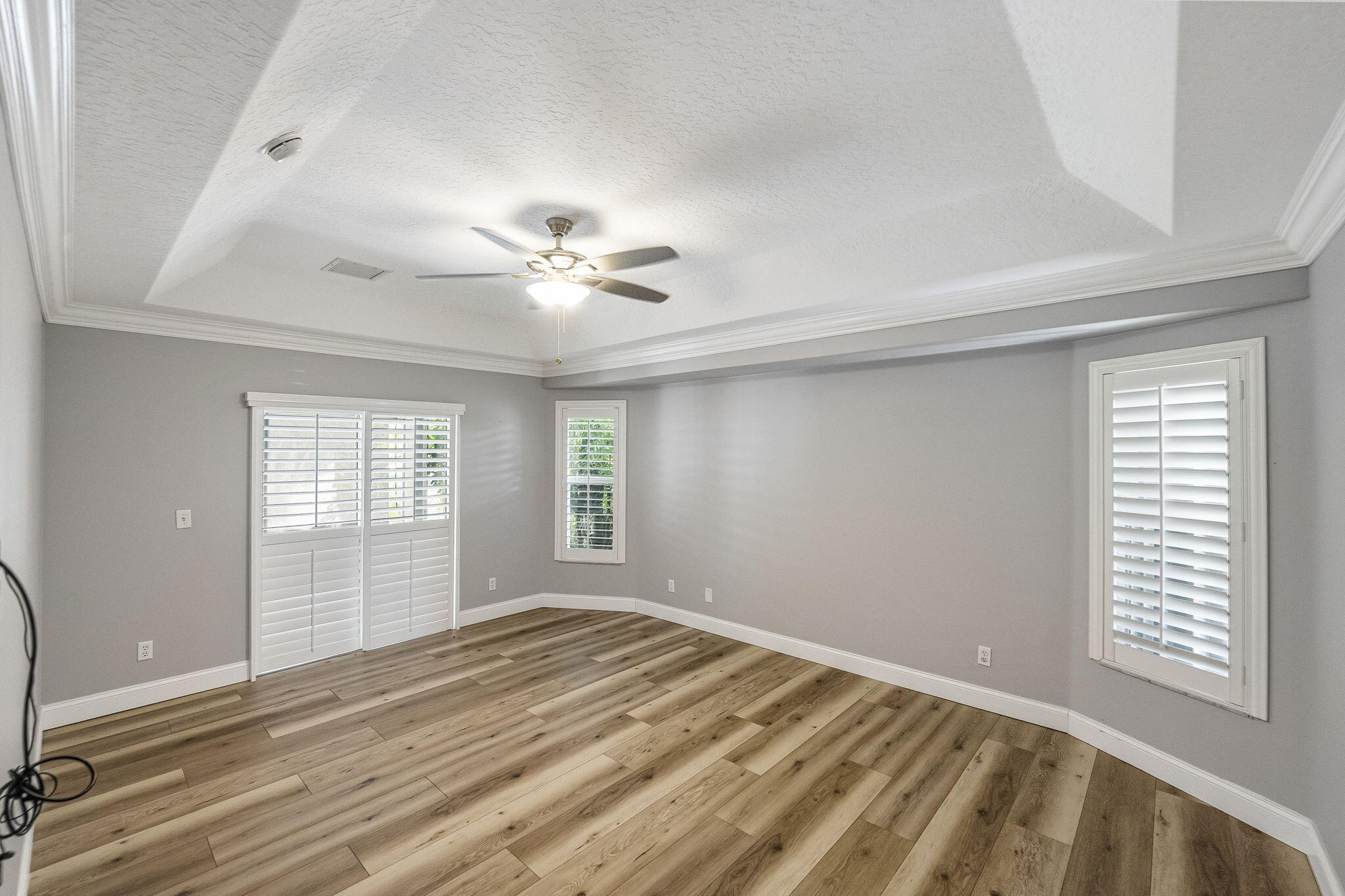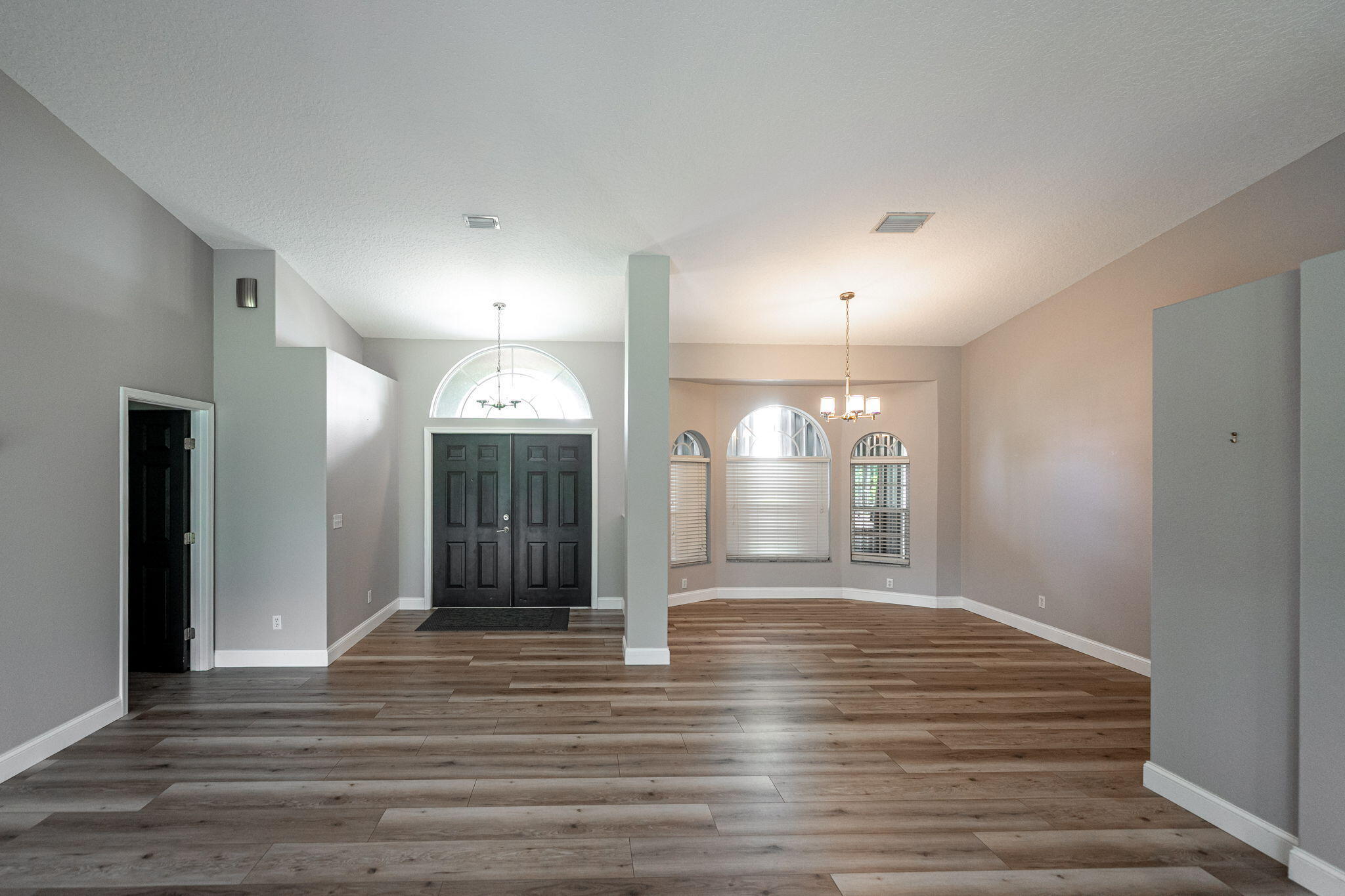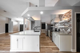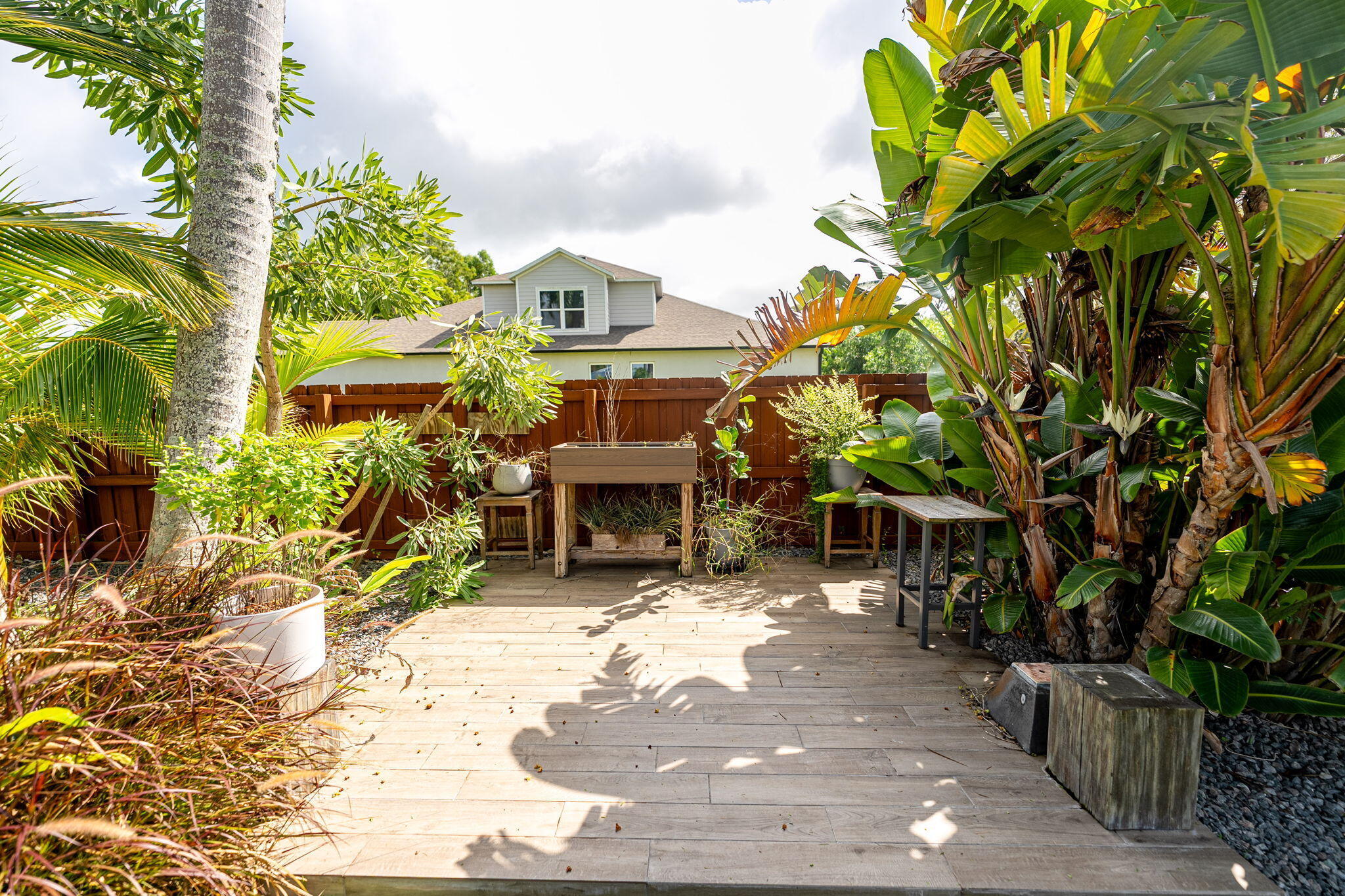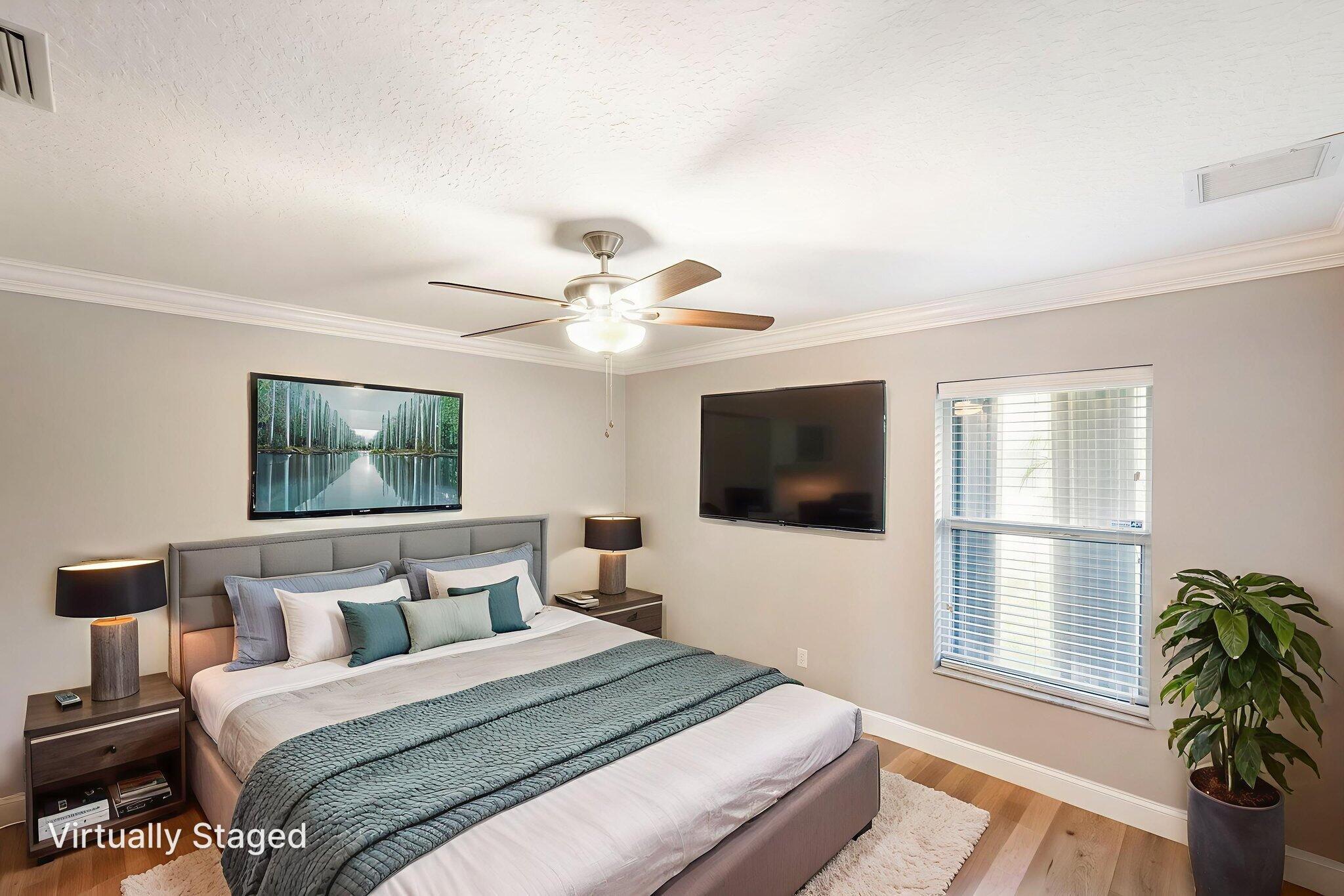 Discover this distinctive 3-bedroom, 2-bath, CBS home, with an attached 2-car garage, on a quiet street in the highly desirable Torino neighborhood. This property shows like a model with an inviting, wide-open floor plan, split-bedrooms and beautiful wood laminate flooring throughout every room. The well-appointed gourmet kitchen has been stylishly updated with quartz countertops, stainless steel appliances, and grey cabinets. You will love the designer Plantation Shutters and crown molding. A newer metal roof was installed in 2022, and the AC system was replaced in 2016. The large screened patio opens to a lushly landscaped, fenced backyard, deck and tranquil outdoor space with koi pond and BBQ area. Top location convenient to shopping, schools, access to I95 and area beaches.