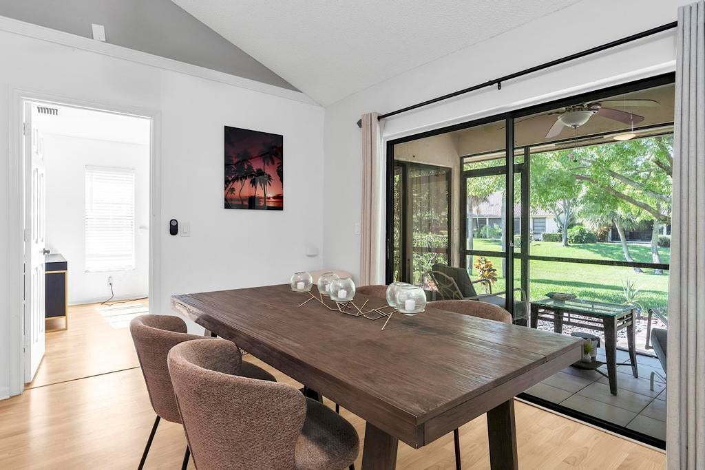 Superb East Boca location. Spacious 2 bedroom 2 bath villa with soaring ceilings, open floor plan and screened-in patio. Modern kitchen and baths with walk-in closet and in unit washer & dryer. Garage converted into an extra room perfect for an office or third bedroom. The Windwood community is surrounded by nature with two community pools, tennis courts, walking trails and more. Centrally located in East Boca, close to parks, top rated schools, I-95, FAU, Boca Regional Hospital and is only 1.5 miles to the beach. Available December 1st.