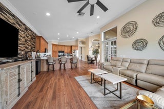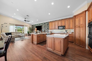This gorgeous Madrid model features 3 bedrooms + den, 2.5 baths and beautiful lake views from the extended screen enclosed patio. Upgrade highlights include: a whole house generator, luxury vinyl planks, tons of kitchen and bath upgrades, solid core doors, central vacuum system, plantation shutters and Hunter Douglas blinds, custom closet systems, crown molding, French doors, front gutters, accordion shutters, upgraded landscaping and so much more. Please call for more details. HOA Fee includes lawn care, alarm monitoring, phone, cable and internet. Clubhouse recently renovated.