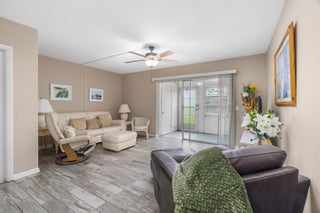 Come enjoy this spacious 2-bedroom, 1.5-bath home in a peaceful 55+ community where neighbors look out for one another and life moves at a relaxed pace. Unwind on your screened patio overlooking green space, a perfect spot for morning coffee, fresh air, or catching up with a friend. The community offers a pool, library, and sauna, giving you plenty of ways to stay active or simply relax your way. In addition, to entertainment space to rent for parties. Located just 10 minutes from the beach and close to shopping, dining, and the mall, you'll have everything you need within easy reach -- whether you're here for the season or all year long. Enjoy the comfort, connection, and sunshine that make South Florida living so special!