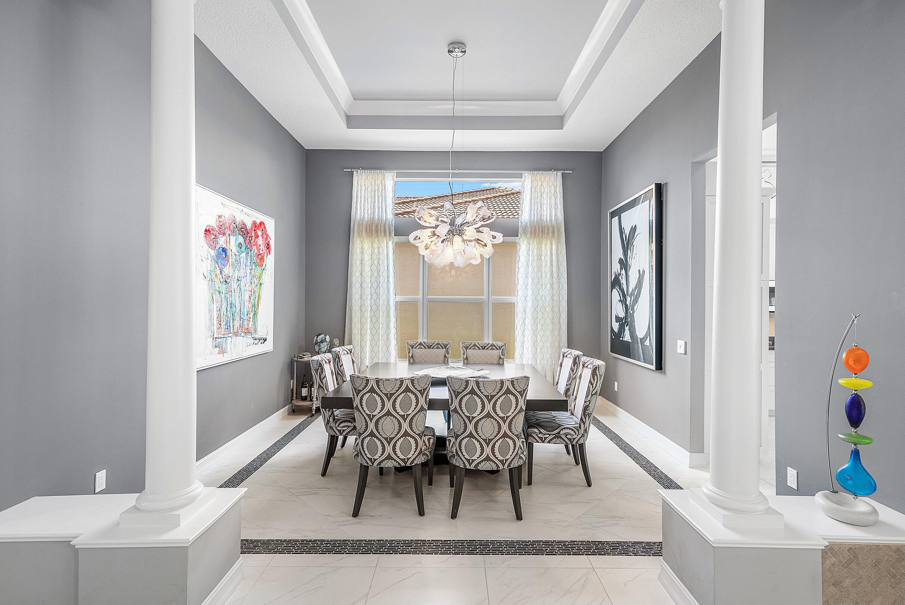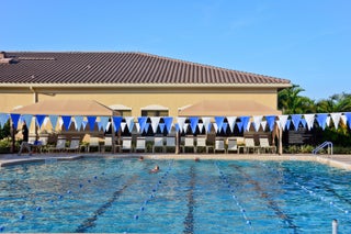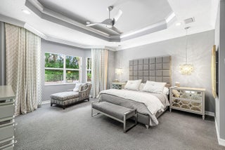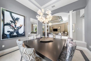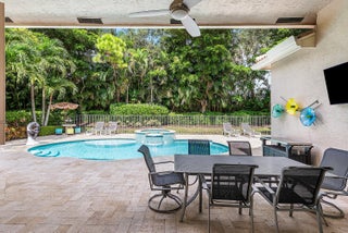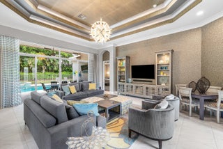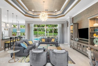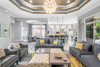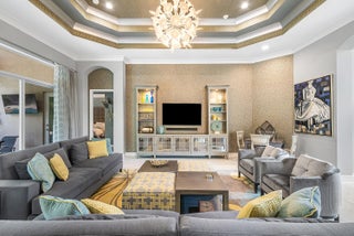 Decorator-designed home featuring a stunning freeform heated pool with a spa and sundeck. Enjoy a gourmet kitchen with upgraded granite counters, ''model view'' cabinetry, built-in double oven and cooktop, and custom pantry with glass doors. Baths offer upgraded shower tile, countertops, and mirrors to ceiling. Elegant finishes include crown molding, etched glass doors, custom closets in the Primary bedroom, chandeliers, decorative wallpaper, and porcelain tile. Accordion shutters, Saturnia marble patio, lush landscaping, and epoxy garage floor complete this exceptional residence. Please call for details on Valencia Reserve clubhouse renovations including renovation renderings. HOA Fee includes exterior painting of house, lawn care, alarm monitoring, cable and internet.