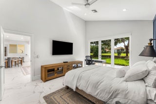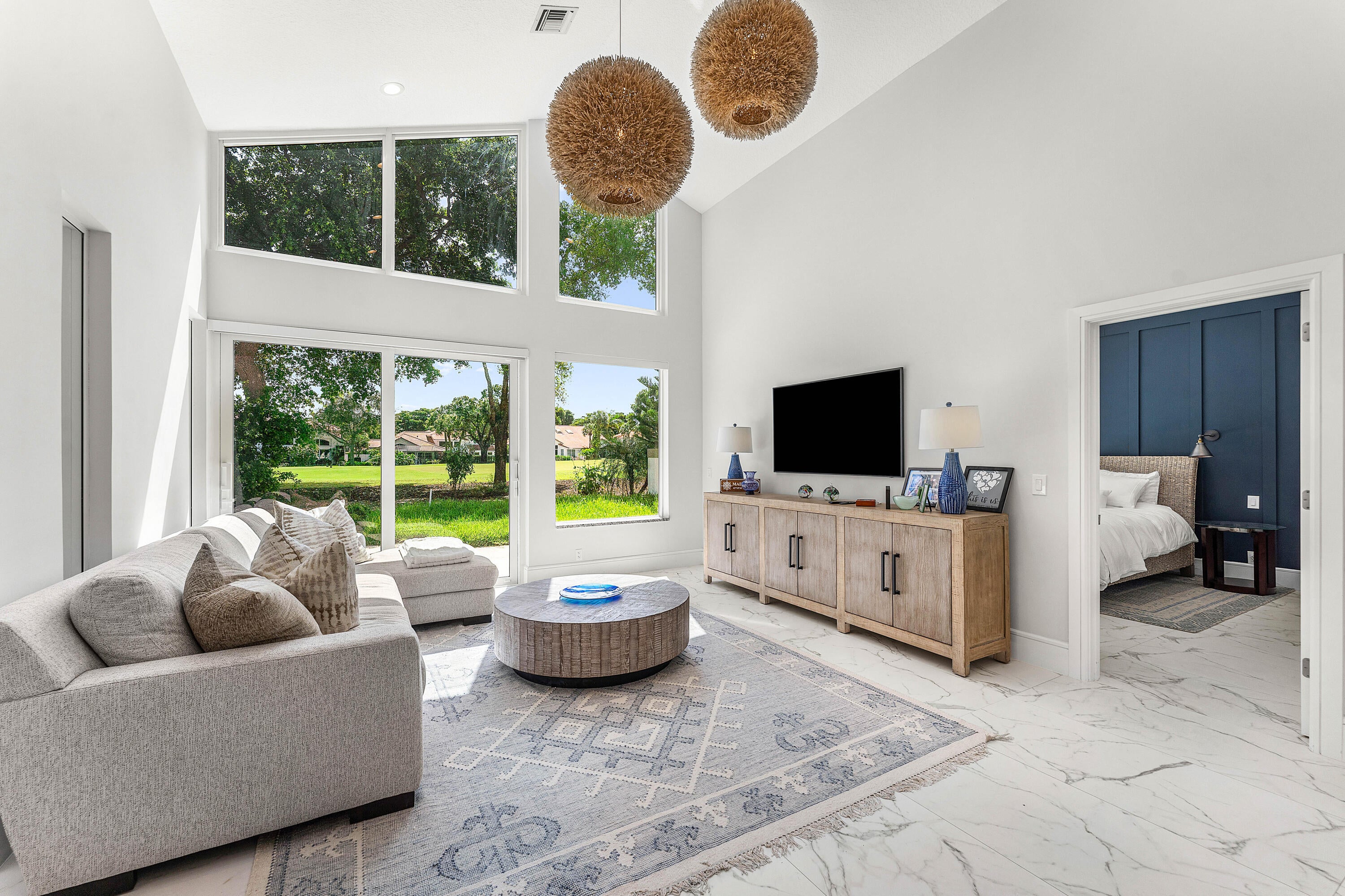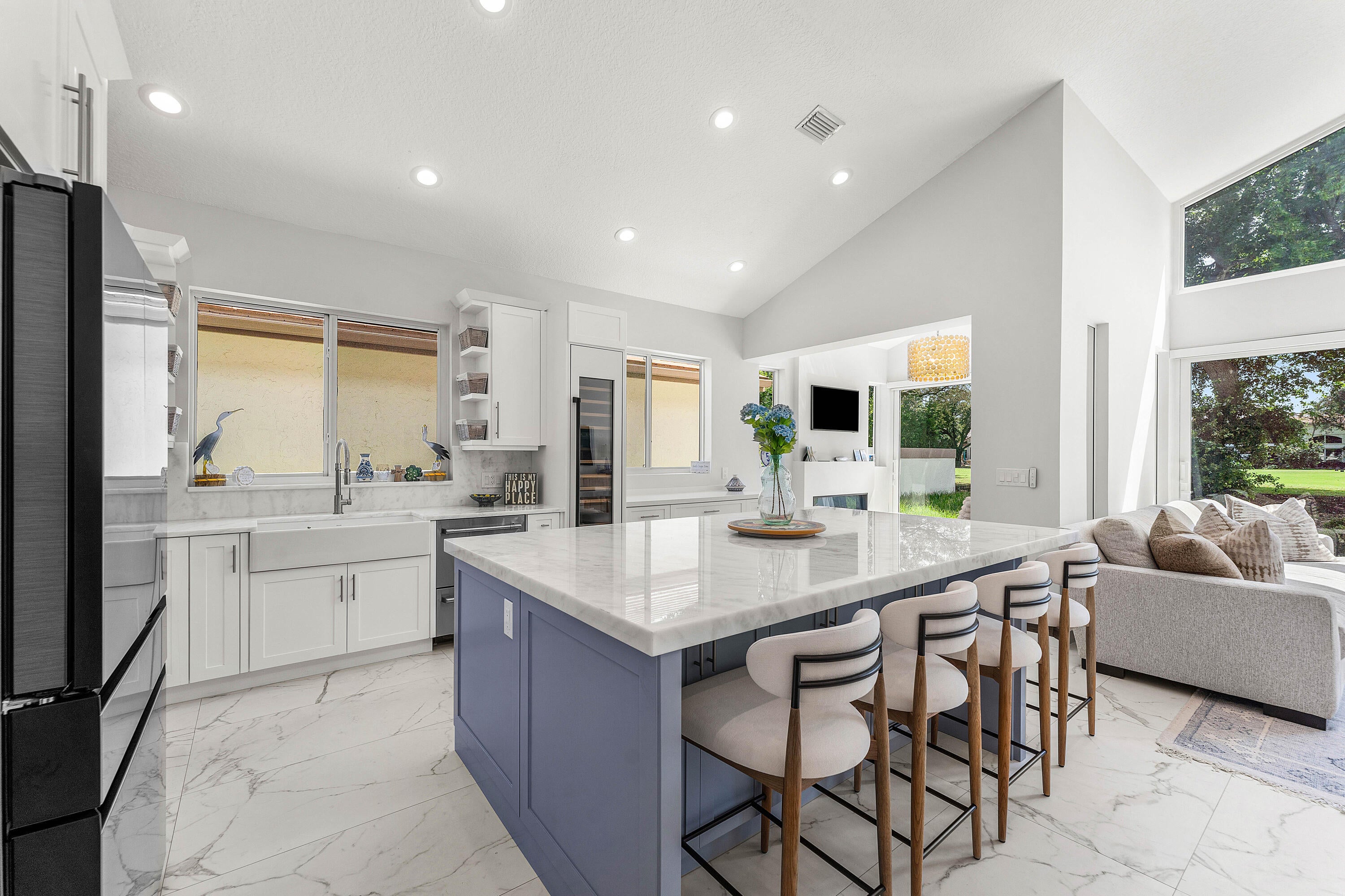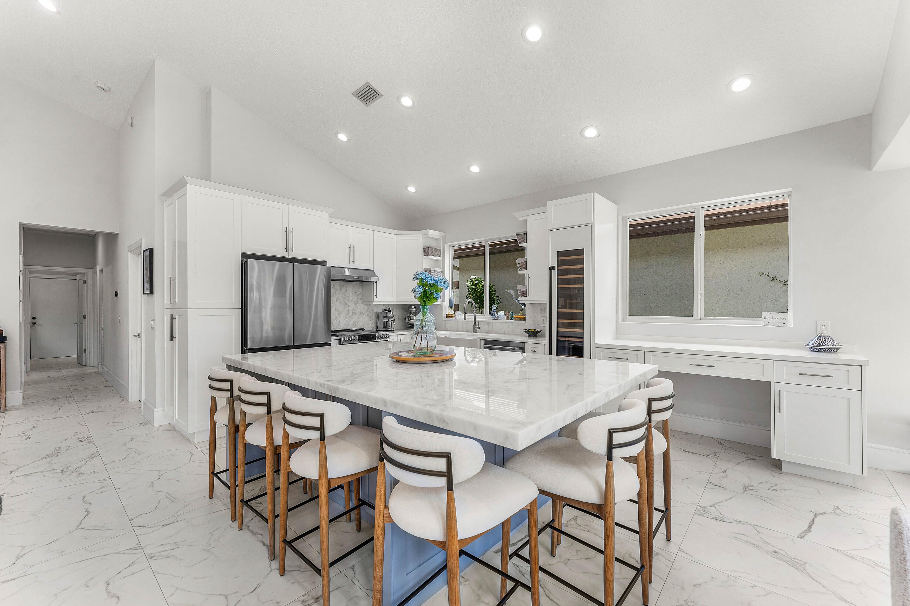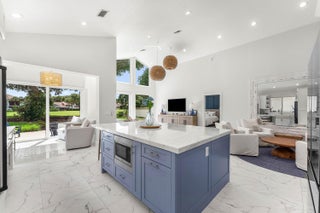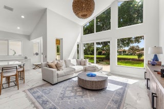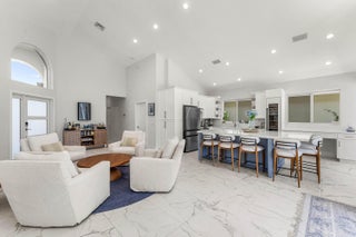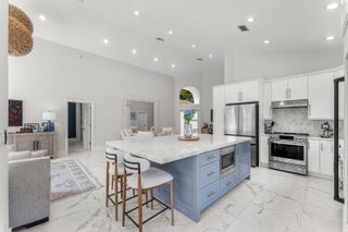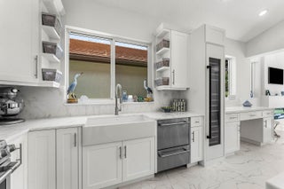 This stunningly renovated 3-bedroom, 2-bath residence offers modern luxury with serene golf course views. Featuring brand new impact windows and doors, an impact-rated garage door, and sleek large-format tile flooring throughout, every detail has been thoughtfully designed.The gourmet kitchen showcases quartz countertops, a spacious island, custom lighting, and a 55-bottle wine cooler--perfect for entertaining. Elegant upgrades continue with electric shades and beautifully renovated bathrooms, each with a double vanity for added comfort and style.Step outside to your private backyard sanctuary, currently being completed with white tile, custom landscaping, and aluminum rear fence - an ideal space for relaxation and entertaining.Move-in ready and designed for today's lifestyle, this home combines sophistication with the peace of golf-front living