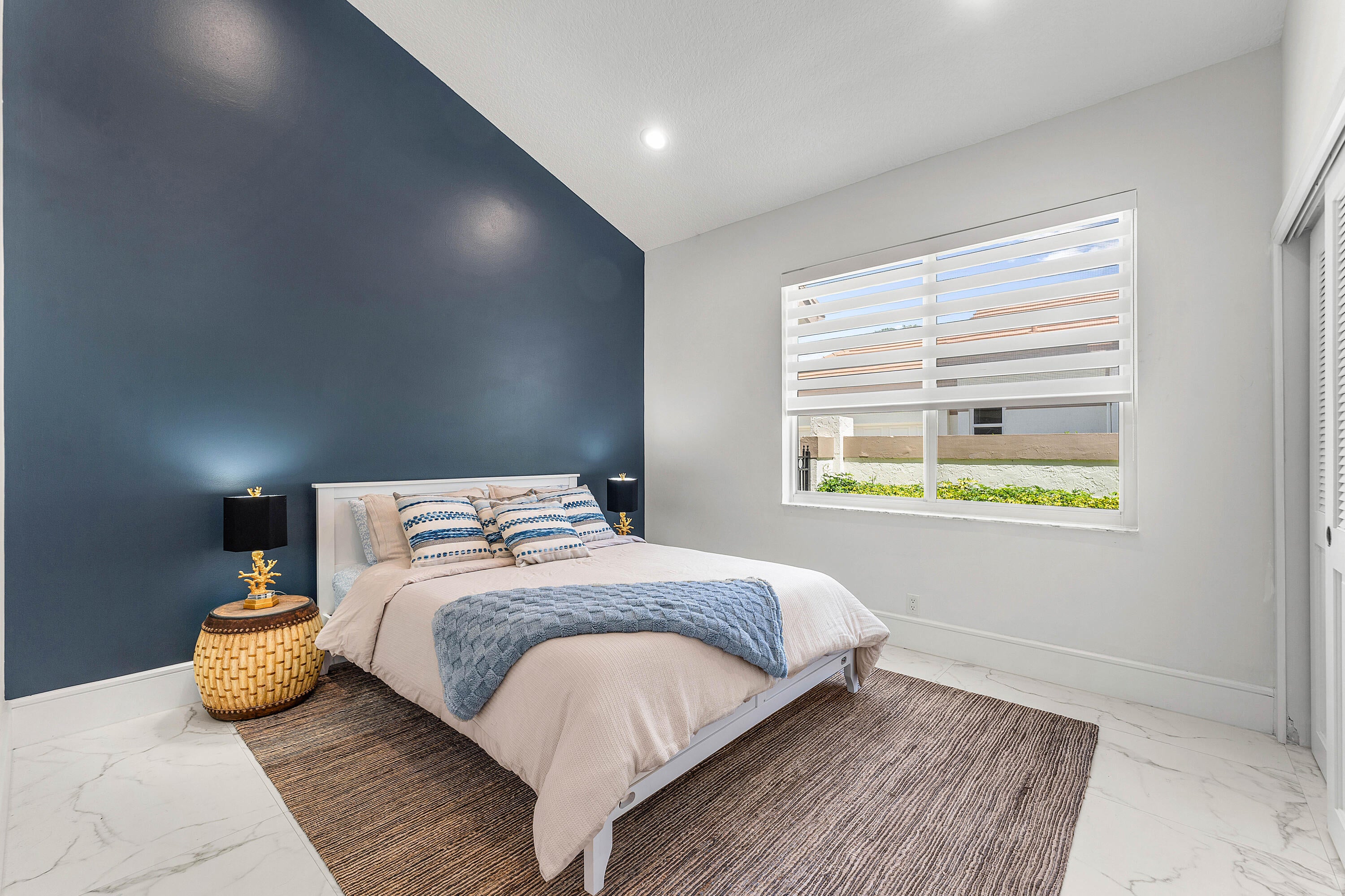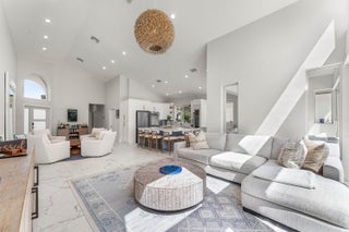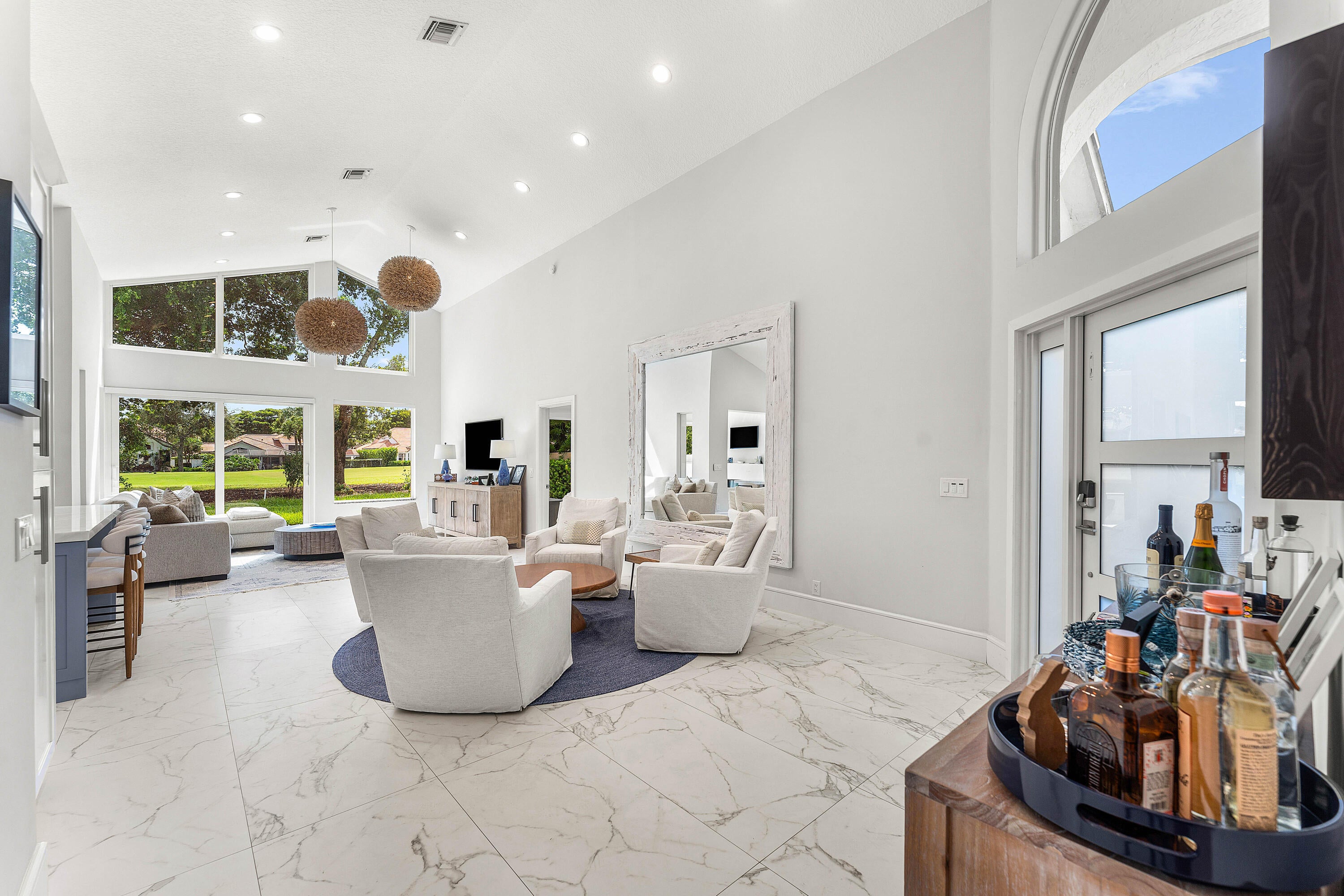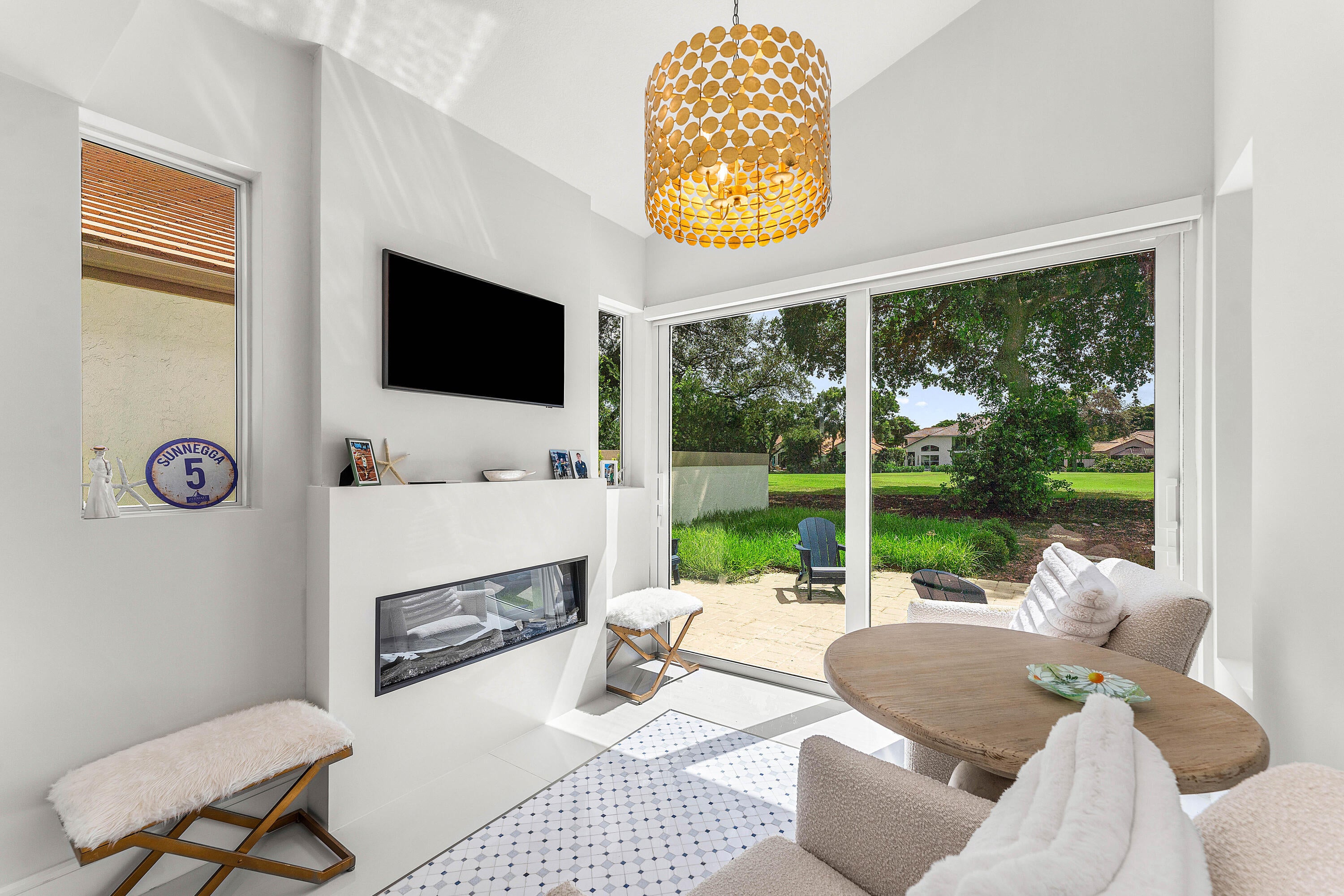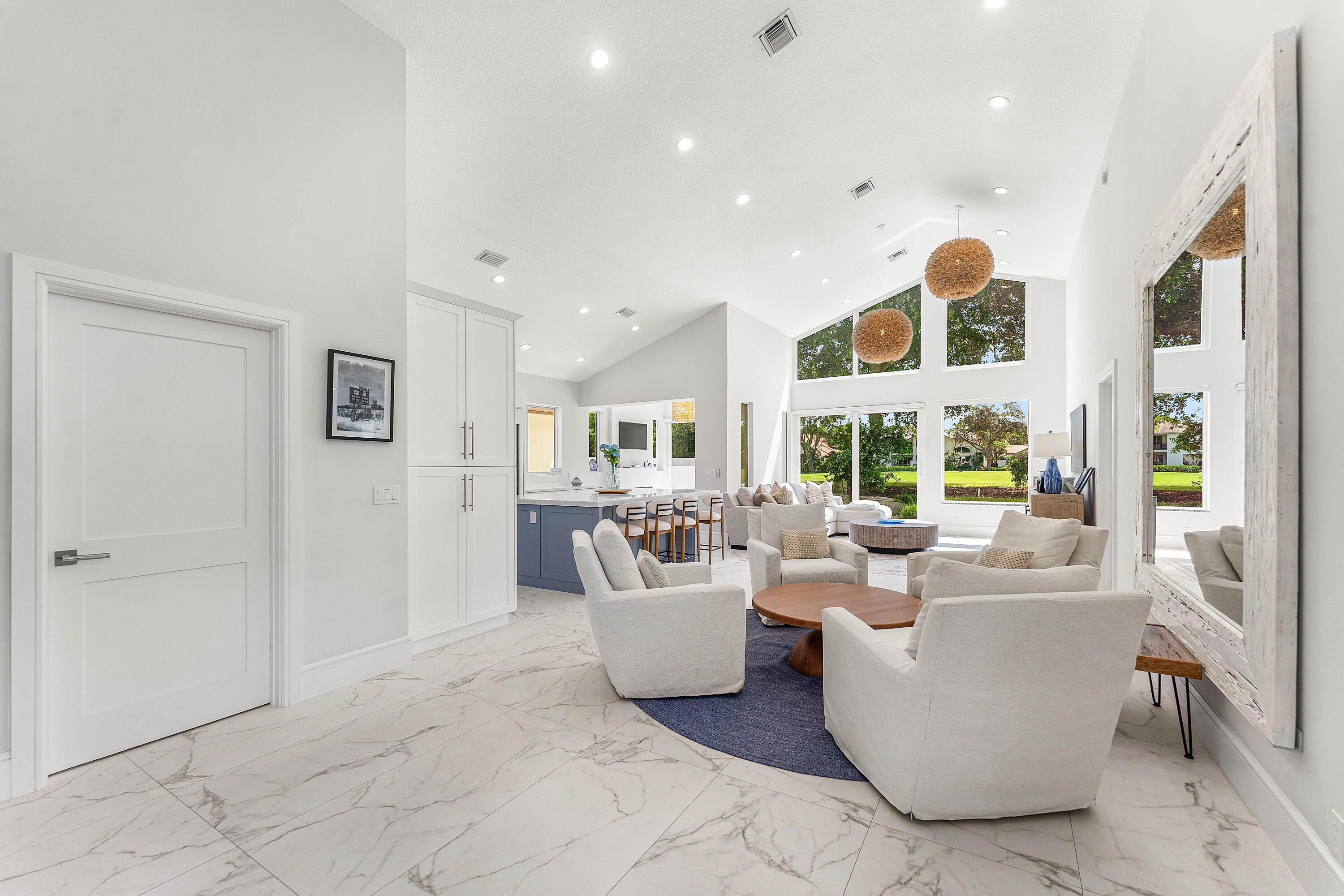 This stunningly renovated 3-bedroom, 2-bath residence offers modern luxury with serene golf course views. Featuring brand new impact windows and doors, an impact-rated garage door, and sleek large-format tile flooring throughout, every detail has been thoughtfully designed.The gourmet kitchen showcases quartz countertops, a spacious island, custom lighting, and a 55-bottle wine cooler--perfect for entertaining. Elegant upgrades continue with electric shades and beautifully renovated bathrooms, each with a double vanity for added comfort and style.Step outside to your private backyard sanctuary, currently being completed with white tile, custom landscaping, and aluminum rear fence - an ideal space for relaxation and entertaining.Move-in ready and designed for today's lifestyle, this home combines sophistication with the peace of golf-front living