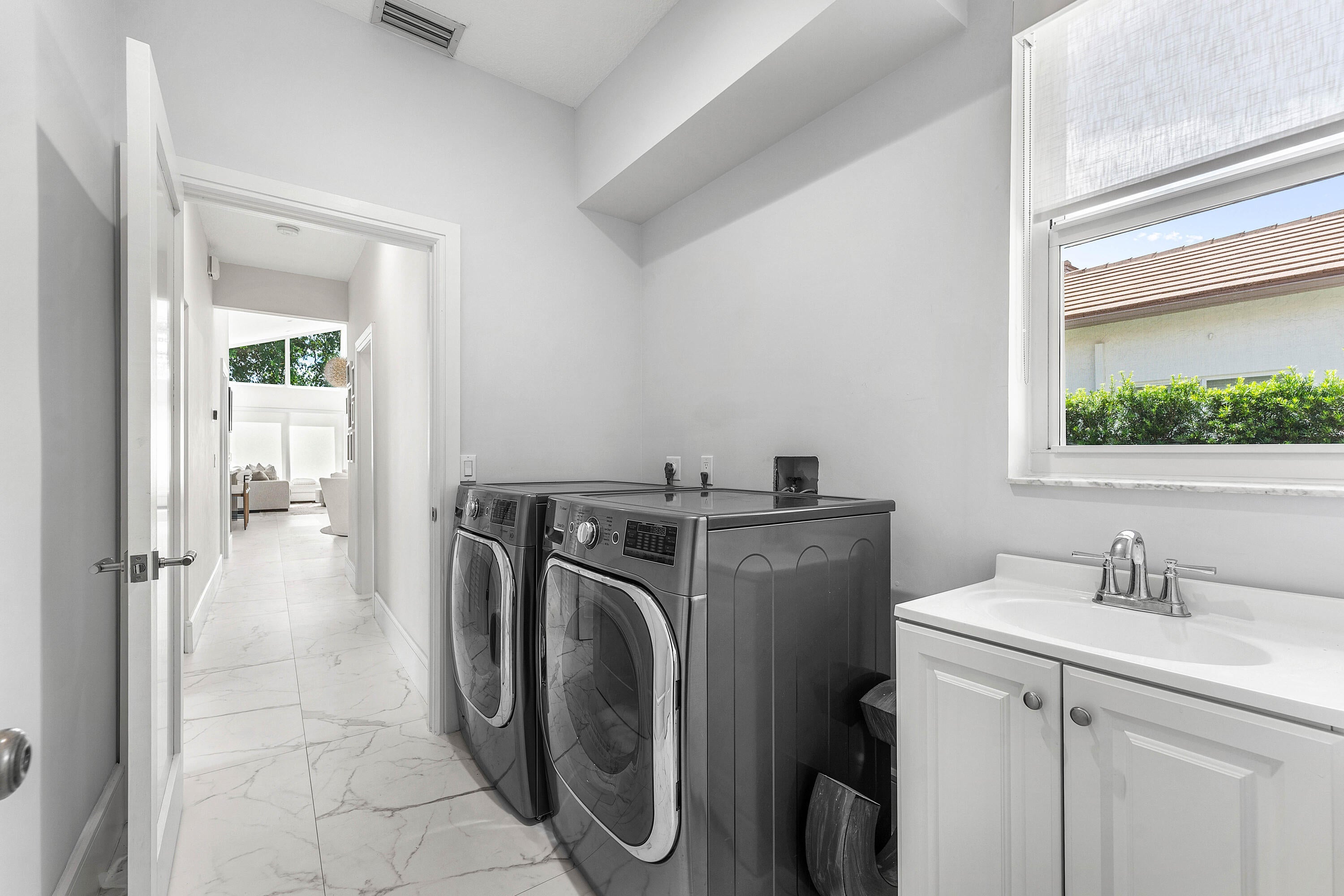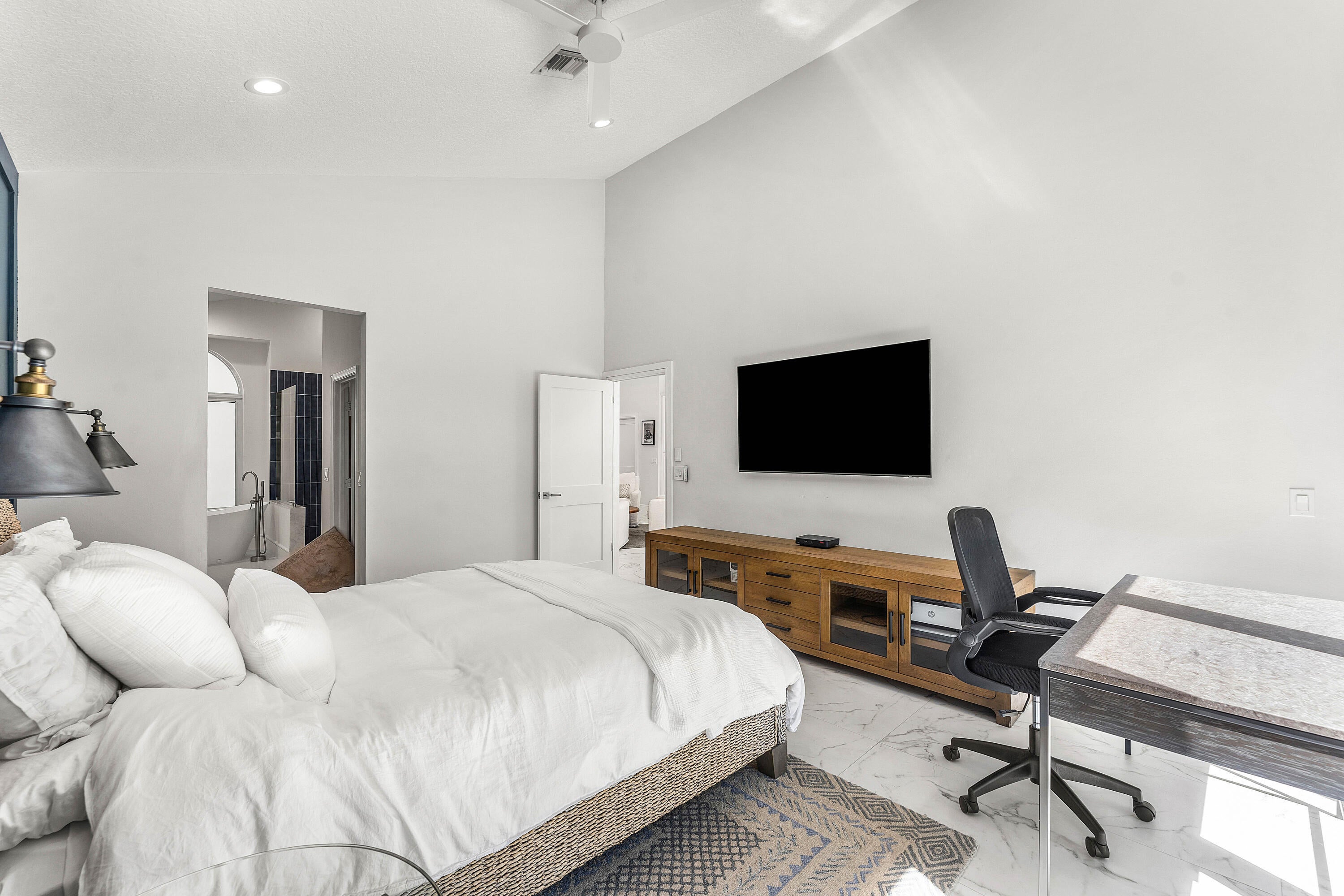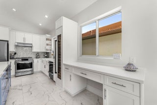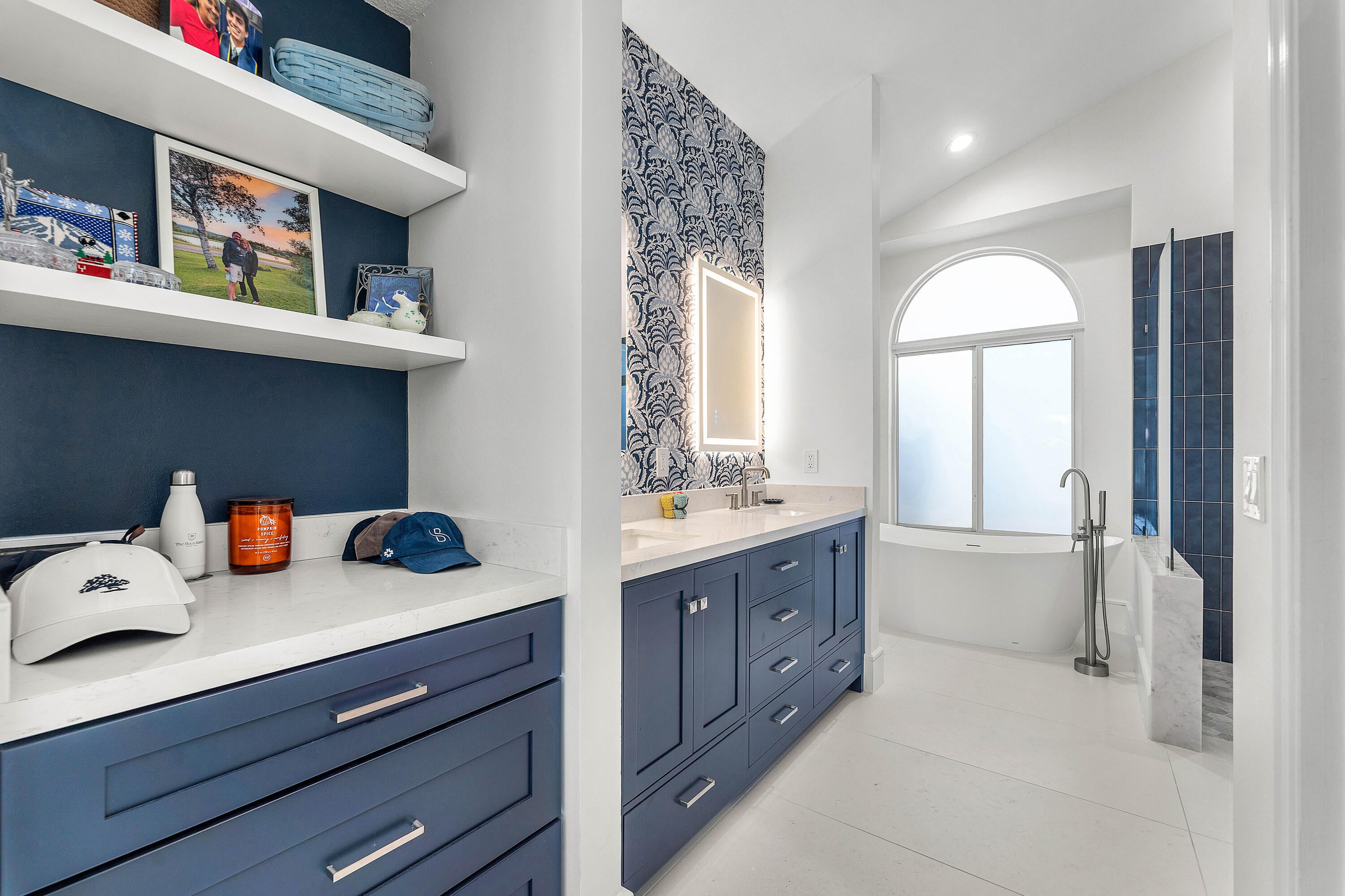 This stunningly renovated 3-bedroom, 2-bath residence offers modern luxury with serene golf course views. Featuring brand new impact windows and doors, an impact-rated garage door, and sleek large-format tile flooring throughout, every detail has been thoughtfully designed.The gourmet kitchen showcases quartz countertops, a spacious island, custom lighting, and a 55-bottle wine cooler--perfect for entertaining. Elegant upgrades continue with electric shades and beautifully renovated bathrooms, each with a double vanity for added comfort and style.Step outside to your private backyard sanctuary, currently being completed with white tile, custom landscaping, and aluminum rear fence - an ideal space for relaxation and entertaining.Move-in ready and designed for today's lifestyle, this home combines sophistication with the peace of golf-front living