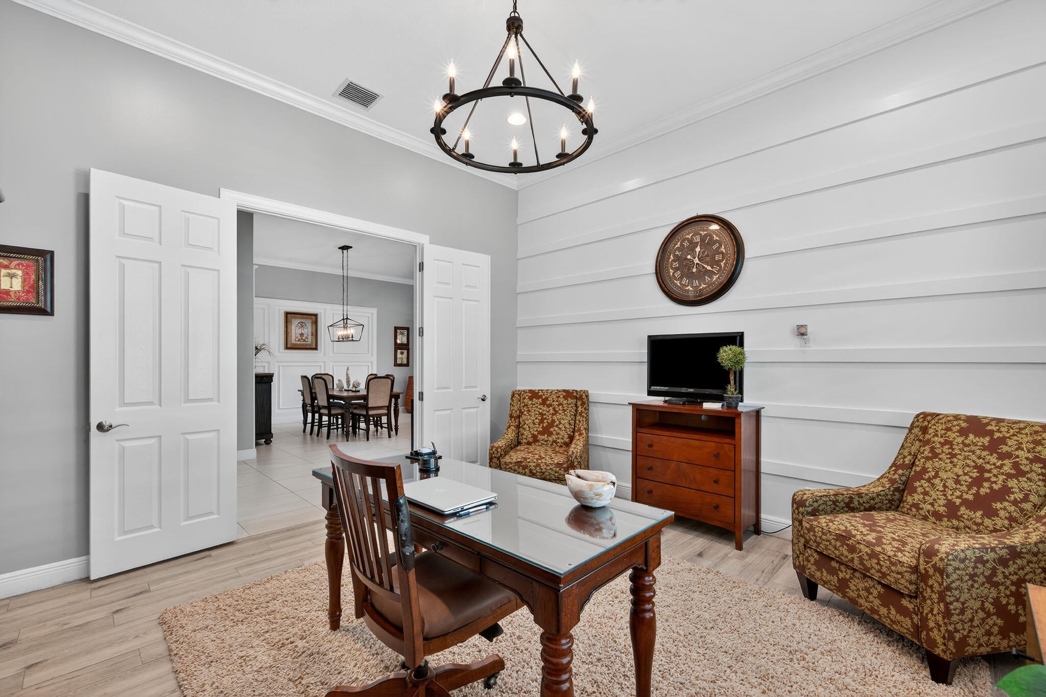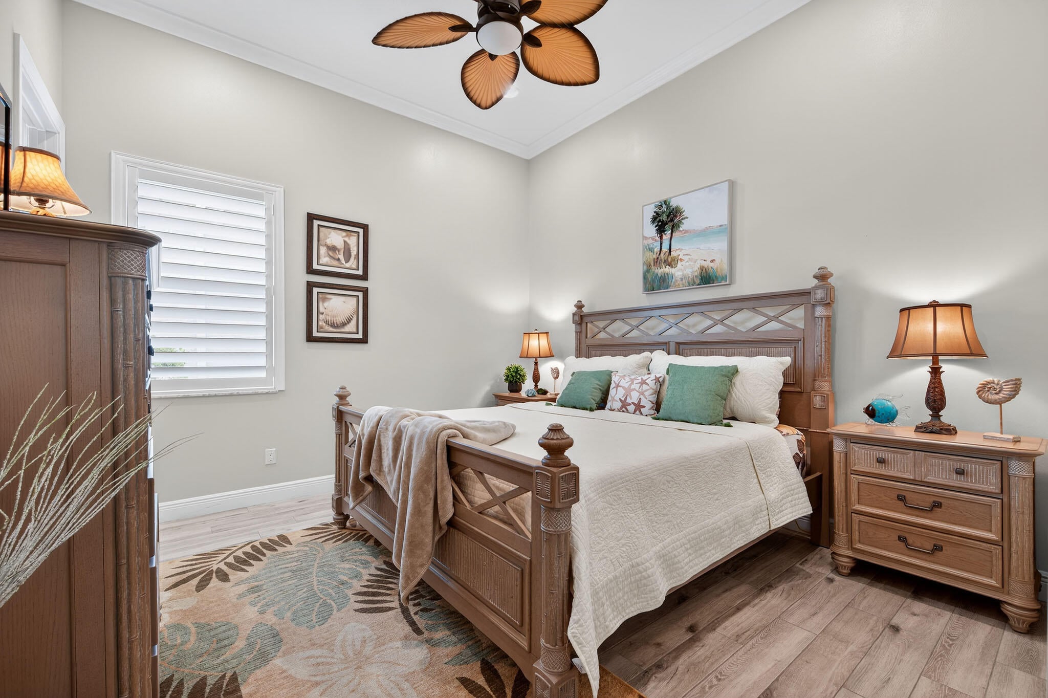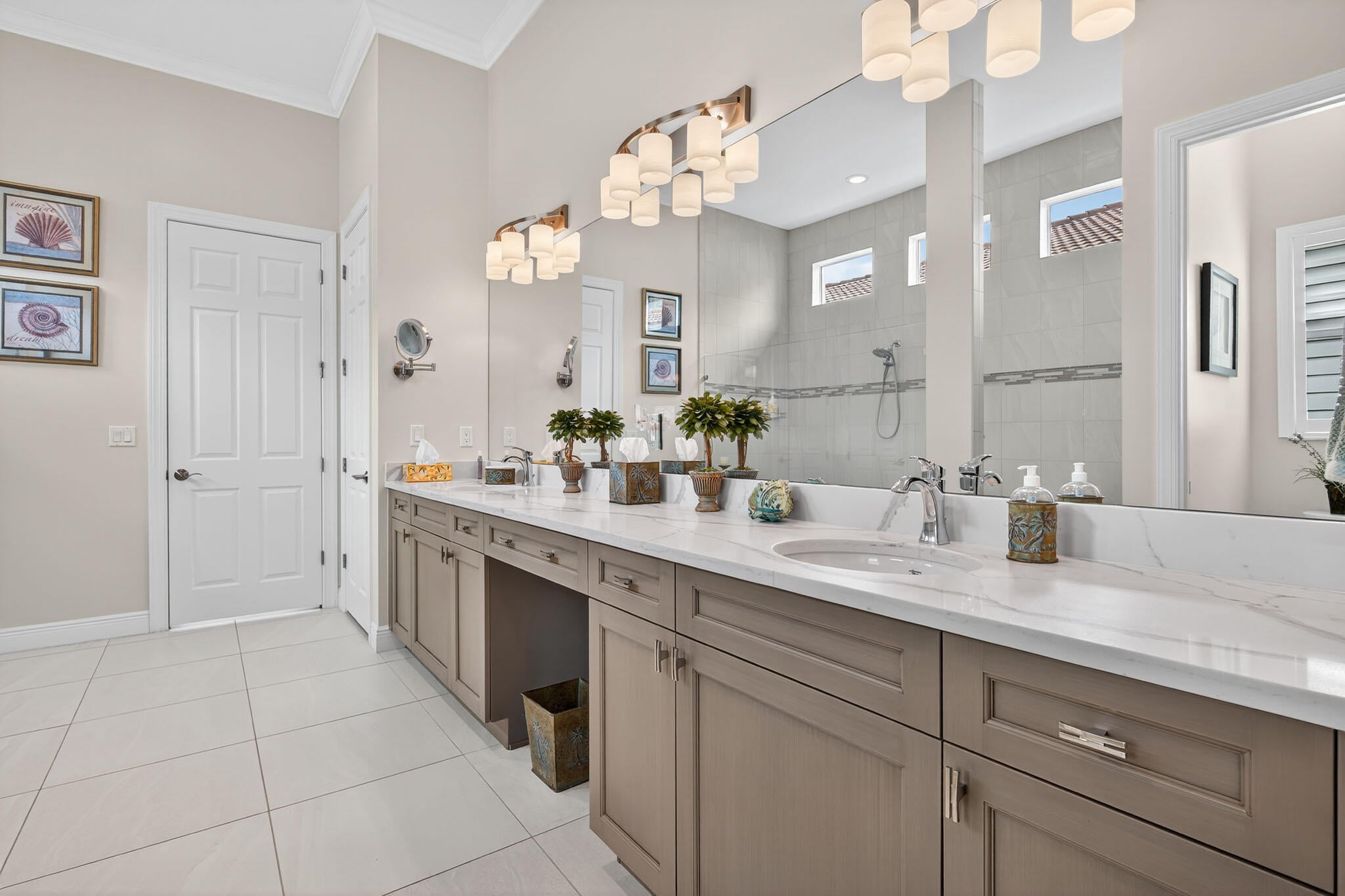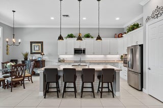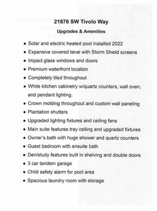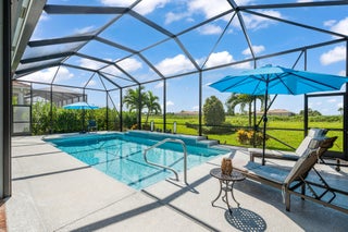 Enjoy luxury living in this beautifully upgraded 3,000sft home, located in prestigious PGA Verano golf community. Step inside to discover a bright open floor plan fully tiled throughout, enhanced by crown molding and custom wall moldings in the dining room and den. Plantation shutters, upgraded fans, and designer light fixtures add a refined touch throughout the home. The spacious open-concept kitchen features a massive quartz island, sleek white cabinetry, wall oven, and stainless steel appliances--a chef's dream and an entertainer's delight. Enjoy outdoor living year-round with the screened-in pool with solar-heat and electric heat backup! The expansive lanai affords privacy complete with electric-powered storm screens for added weather protection. This property backs up to a wide canal, providing a serene setting for relaxing or entertaining. All windows and doors are impact glass, offering both safety and energy efficiency. The home also includes a 3-car tandem garage and a large laundry room with ample storage. Please review the list of upgrades attached in the documents section. Located in the gated community of PGA Verano, residents enjoy access to a state-of-the-art clubhouse, fitness center, pickleball and tennis courts, and a full calendar of social events. Golf enthusiasts will appreciate the private golf cart path to the nearby PGA Golf Clubmembership is optional and subject to availability. HOA dues include: basic cable, high-speed internet, alarm monitoring, lawn care, common area maintenance, gated security, and more. This is more than just a homeit's a lifestyle. Don't miss your chance to own this incredible property in one of the Treasure Coast's premier communities!