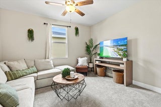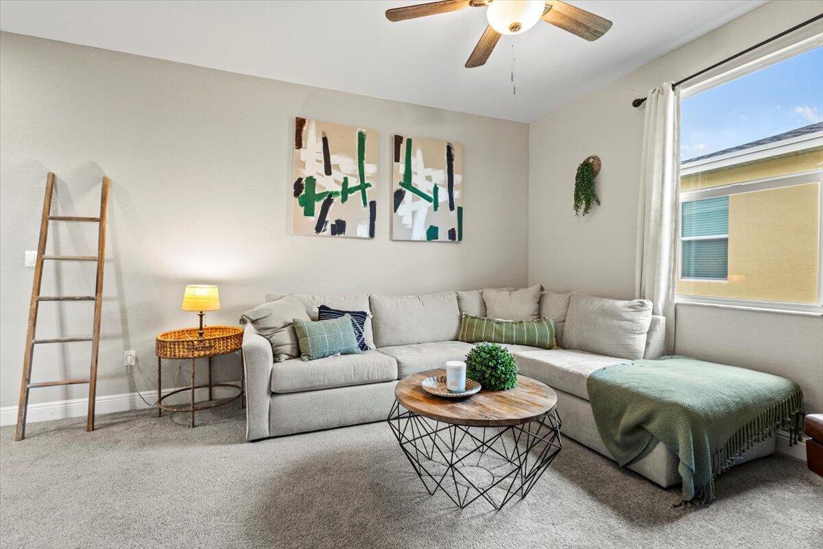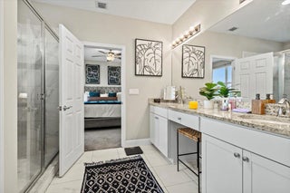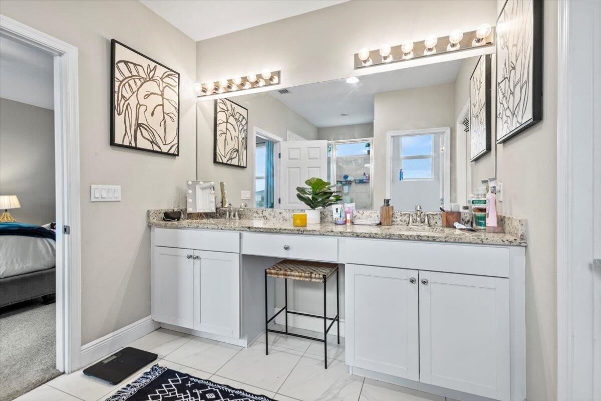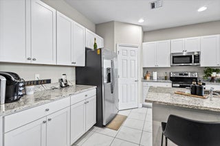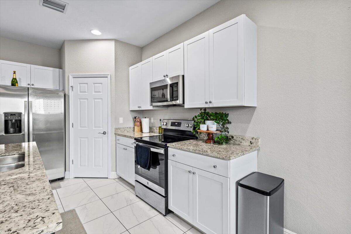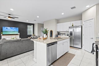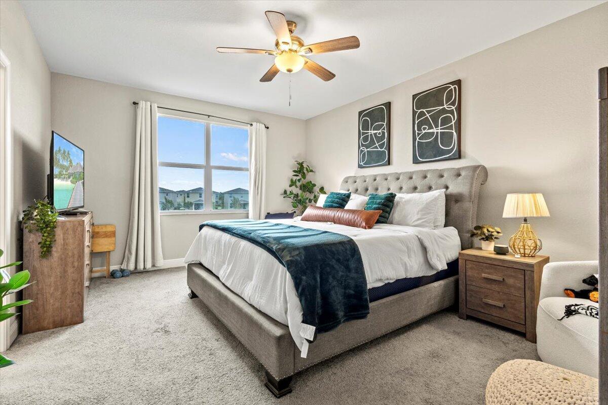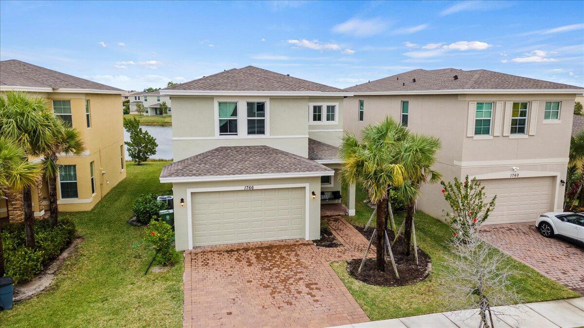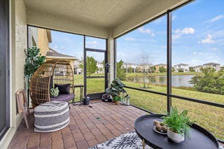 . The open-concept living area is highlighted by high ceilings and large windows, while the kitchen offers stainless steel appliances, granite countertops, and a sizable island. The master suite boasts a luxurious en-suite bathroom with a walk-in shower. The beautifully landscaped yard and covered patio, which offers a serene lake view, creating an ideal setting for outdoor living. The community also provides amenities such as a clubhouse, pool, fitness center, and walking trails.