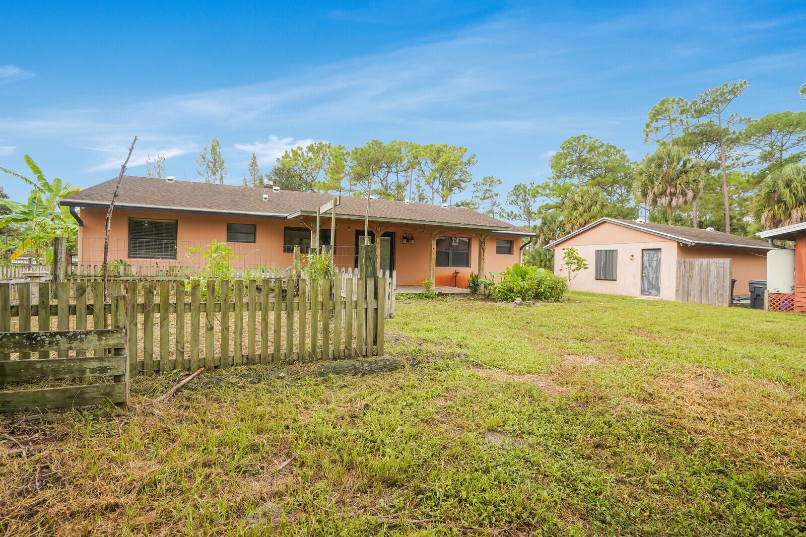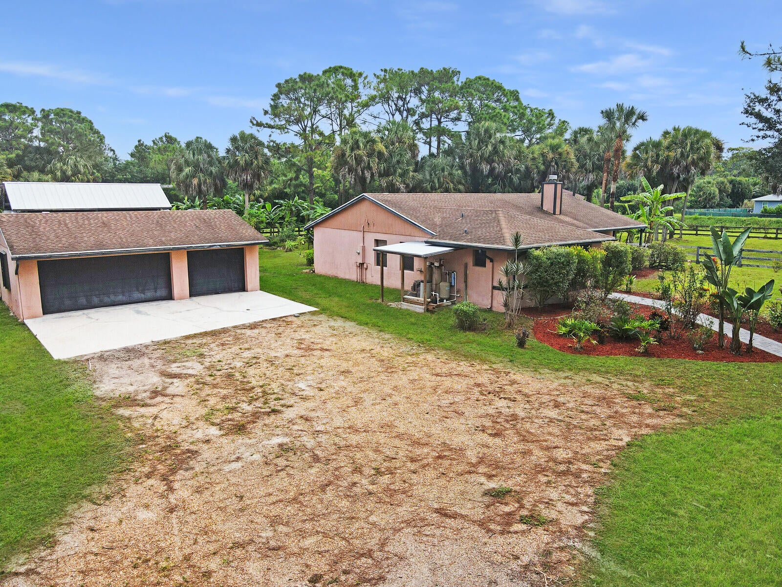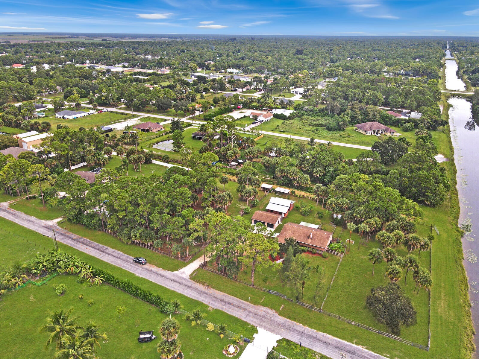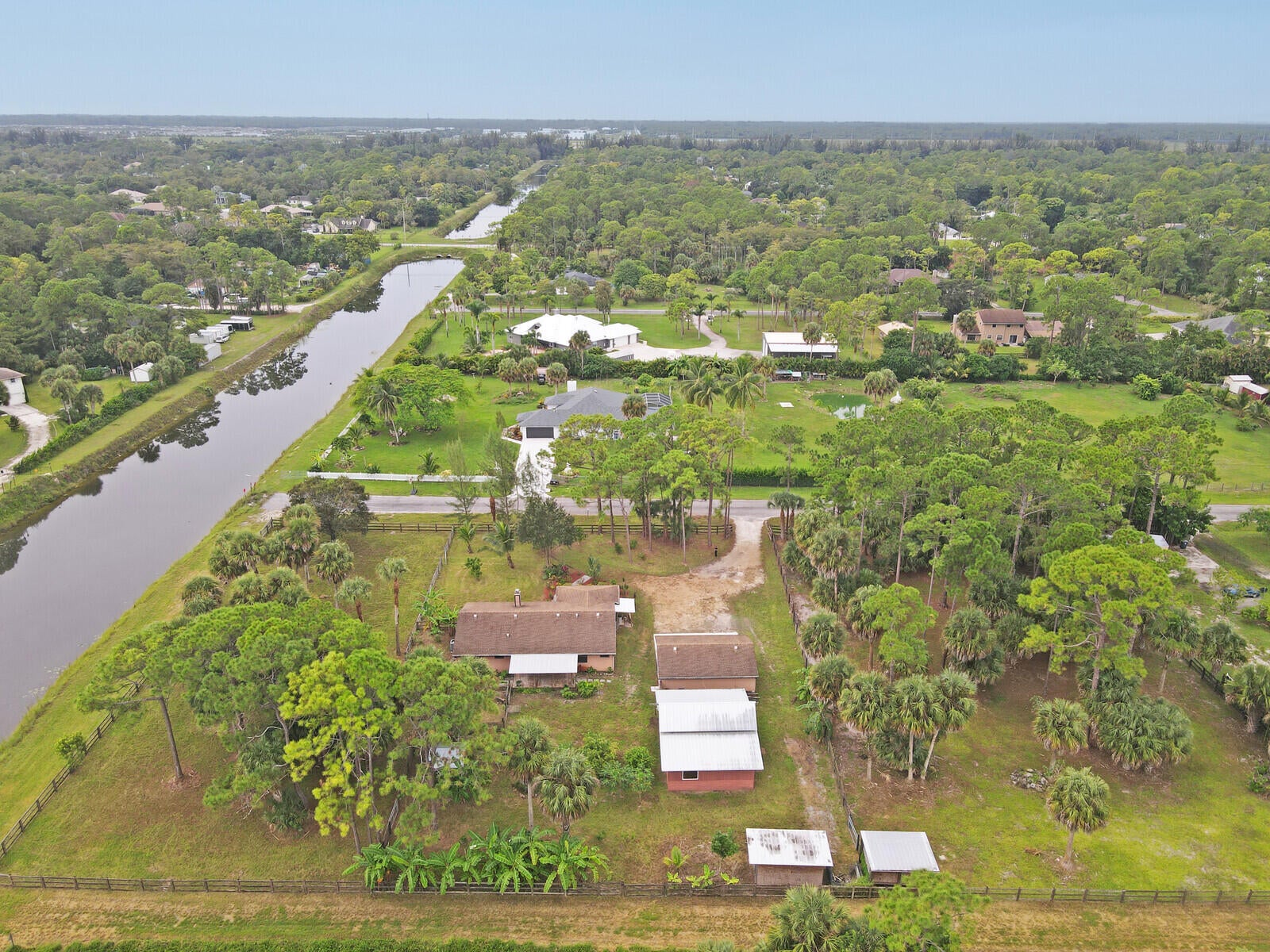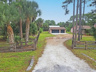 Welcome to your dream home in the heart of Loxahatchee! This spacious 4-bedroom, 3-bathroom ranch-style single-family home offers 1,803 sq ft of comfortable living space on a sprawling 2.82-acre fully fenced corner lot bordering a large canal--perfect for privacy, space, and serene views. The property features a versatile in-law suite complete with its own kitchenette and separate entrance, ideal for guest, family or even rental potential. A large 3 car DETACHED GARAGE/WORKSHOP provides ample space for hobbies, vehicles, or a home business. Equestrians and hobby farmers will love the large 4-STALL BARN and tack room, while the lush yard is enhanced with old-growth landscaping and mature fruit trees, creating a peaceful, park-like setting.No HOA means freedom to live your lifestyle without restrictions. Don't miss this rare opportunity to own a private retreat with endless potential! Call and schedule your showing today.