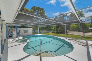 Ready to move in 3 bedroom, 2 bath home in Sandpiper bay community. Screened in heated pool with custom tiki hut and hot tub. Granite kitchen with stainless appliances. 3rd bedroom has murphy bed. 1 car garage with office/exercise room. Newer Instant hot water heater. Short walking distance to the upcoming upscale resort and Freedom rental boat dockage. You'll enjoy beautiful views and walking trails out your back door. Hurricane protection includes: 2020 metal roof and 4 impact windows and accordion shutters along with poured concrete walls. The patio comes complete with a Lloyd Flanders patio table set at a $8,000 value.