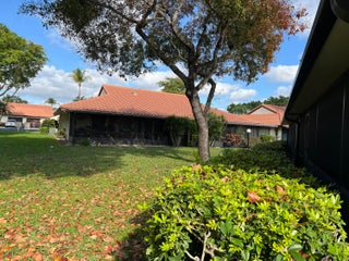 Lightly updated villa conveniently located close to shopping, restaurants, beaches, downtown Delray and more. This home is comfortably furnished with new living furniture, 300 sf shaded patio overlooking greenbelt area with no neighbors across the street from a tree lined area. Palm Chase is a hidden gem off the beaten path for peace and quiet. Clubhouse has heated pool, live shows during season, many clubs, gyms, pickle ball, har-tru tennis cts. and much more. 3rd BDRM is an open den area