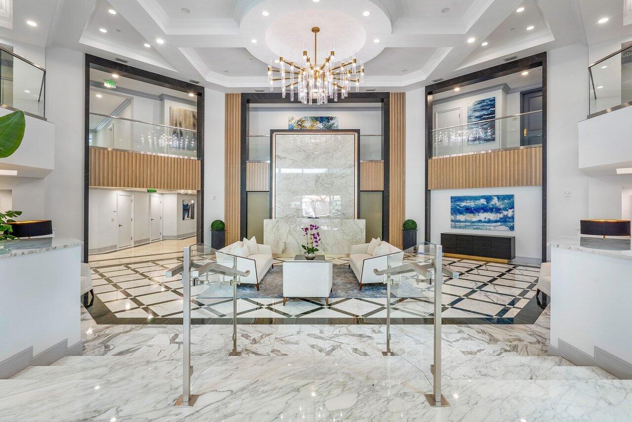 RARE PENTHOUSE, LOCATION & VIEWS!!! Located on the 9th-floor penthouse level of coveted Townsend Place, residence B906 offers refined downtown Boca Raton living with nearly 1,600 sq ft of light-filled space and elegant finishes. The open-concept living area is bathed in natural light from floor-to-ceiling sliding doors that lead to a spacious southeast-facing balcony -- the perfect vantage point to enjoy panoramic views of the Boca Raton Resort & Club golf course, the vibrant city skyline, and tropical treetops. The balcony creates a perfect setting for morning coffee or evening sunsets.This rare 1-bedroom + den, 1.5-bath residence features soaring 10-foot ceilings. The versatile den adds flexibility: a home office, media lounge, or guest space that can be used as a two bedroom. The den is a private separated room with its own skylight for natural lighting. The oversized newly remodeled kitchen anchors the home with a large quartz island and countertops, abundant cabinetry, a wine refridgrator, premium appliances, creating a welcoming space for everyday living or entertaining guests. The in-unit laundry provides a touch of practicality and ease. The primary suite features two large walk-in closets connected to a spa-style bath with oversized jacuzzi tub and its own skylight. There is ample storage throughout. Additional conveniences include an assigned covered-garage parking space, extra storage, 24-hour building security and a shipping and receiving department. The location is exceptional - nestled at the edge of Mizner Park, Royal Palm Place, and the Boca Raton Resort, Townsend Place offers unmatched walkability near fine dining, boutique shopping, art galleries, and cultural events. The city's pristine beaches are just minutes away, as are world-class golf courses and marinas. Living in Townsend Place means enjoying a full-service lifestyle with resort-style amenities just steps from your door. Residents are welcomed by a manned gatehouse, doorman, complementary valet and concierge services. A heated pool and spa, state-of-the-art fitness center, sauna, steam room, and club room create daily opportunities for relaxation and wellness. Whether you're seeking a full-time residence or seasonal retreat, penthouse B906 delivers the perfect blend of luxury, location, and lifestyle in the heart of Boca Raton. Please note that three months of maintenance fees are due by the buyer at closing to Townsend Place for capital reserve funding. Additionally, the condominium association requires a $500 move-in fee, ensuring a smooth transition for residents.