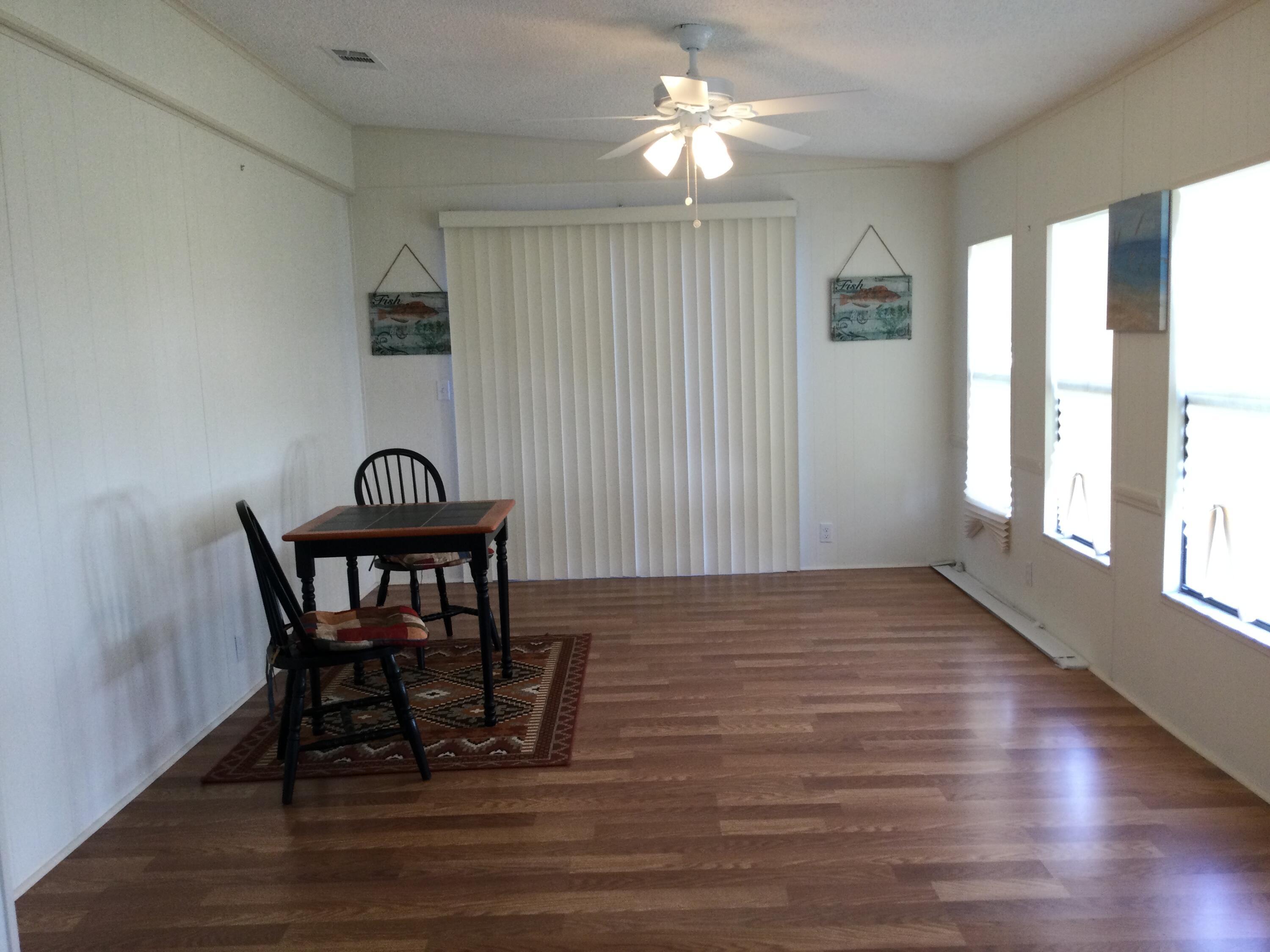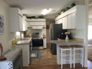 2025 roof on this nicely updated home and it's just what you are looking for. Open concept living/dining/kitchen and den. This home has a great space for entertaining and is located in the pet section. What else could you ask for. Lot rent covers taxes, lawn care, trash removal and all amenities. Amenities include golf, two pools, tennis, pickleball, bocce, shuffleboard, horse shoes, billiards, ping pong, clubhouse, library, party room, card room, dog park and much much more. Do as much as you like or just relax by the pool. Future residents must be approved by Spanish Lakes. Call for application.