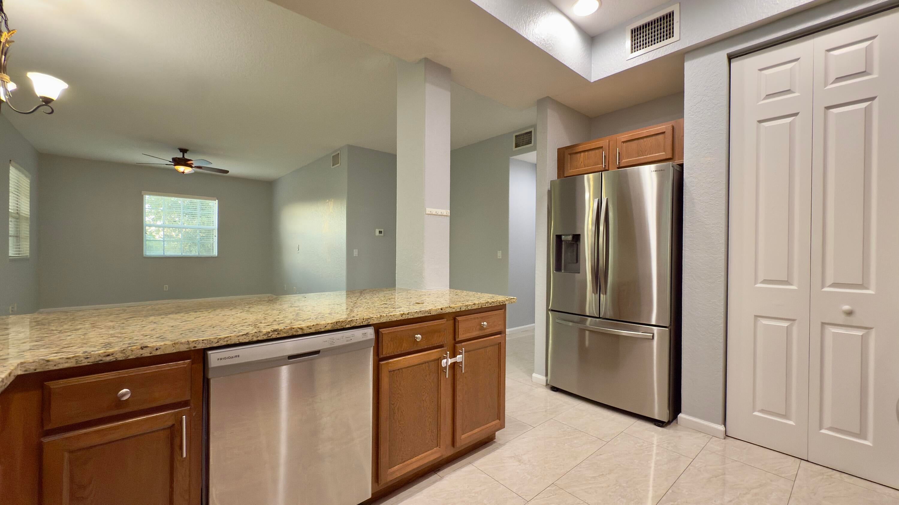 Live the Tradition life! Rare 3/2/1 condo for annual rental, seconds from the best shops and the pool. This second-floor gem boasts high ceilings, modern tile floors, and a gorgeous kitchen with SS appliances and granite counters. The master suite has its own private balcony and huge his & hers closets. Comes with a private garage! Secure your dream rental now!Available to Rent 11/01/25. 1st,Last, Security Deposit, Credit/Bkgrd Check, Assocciation App & Approval. Pet/Vehicle Restrictions. See Attached Documents. Annual Rental Only.Interior Photos Coming soon as unit is being vacated and will be cleaned and painted.