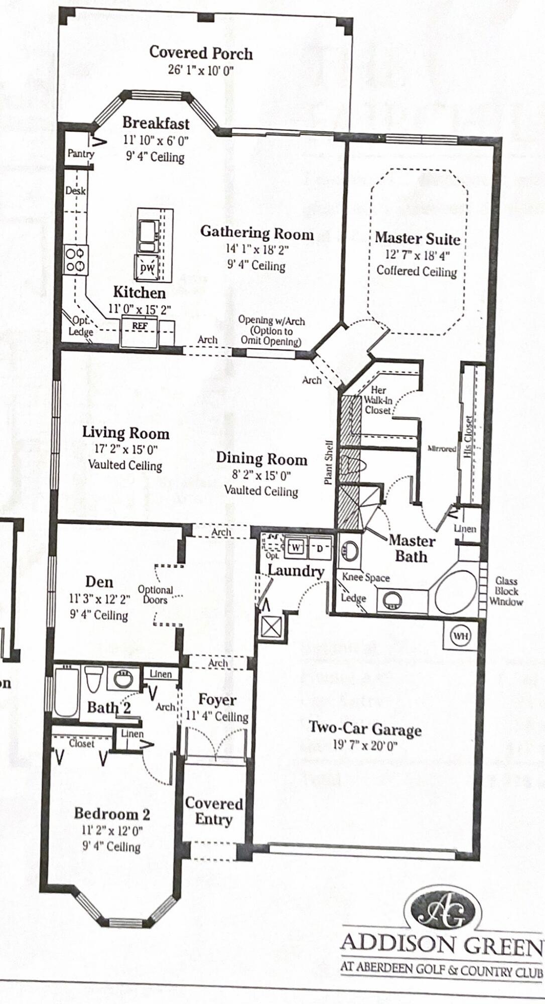 Two Bedroom + Den/office (easily convertible), two full bath 2,175 sq ft home. This is an opportunity to personalize and update to your taste. HOA includes exterior pest control, exterior house painting, lawn care and cable . Live the dream at Aberdeen golf and country club featuring 40,000 sq. ft. modern Clubhouse, state of the art tennis complex , 14 Har-Tru tennis courts, state of the art fitness center, card rooms and restaurants, access Jim Fazio's spectacular golf course. Social membership mandatory, however, golf and tennis optional. Aberdeen is in a location that is private, beautiful and convenient to the ocean, Easy and fast drive to PB Int'l Airpport. Close proximity to restaurants and shopping. Enjoy the life you deserve!