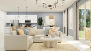 The lower level of this two-story home includes a flex room ready to be transformed. The main living space features an open-concept kitchen, dining area and Great Room with an attached covered patio, ideal for indoor-outdoor living. There is also a convenient first-floor bedroom, while upstairs are three additional bedrooms, a lavish owner's suite and a spacious loft offering versatility.Prices, dimensions and features may vary and are subject to change. Photos are for illustrative purposes only.