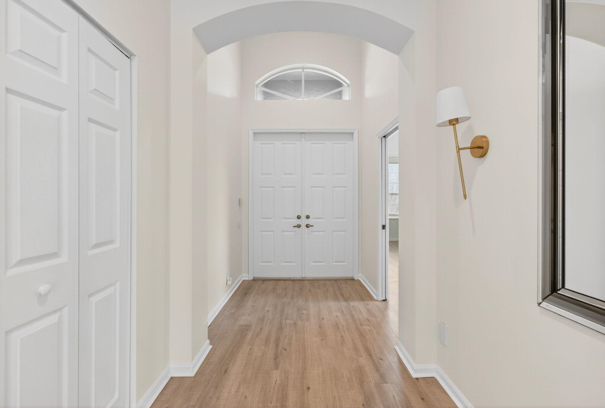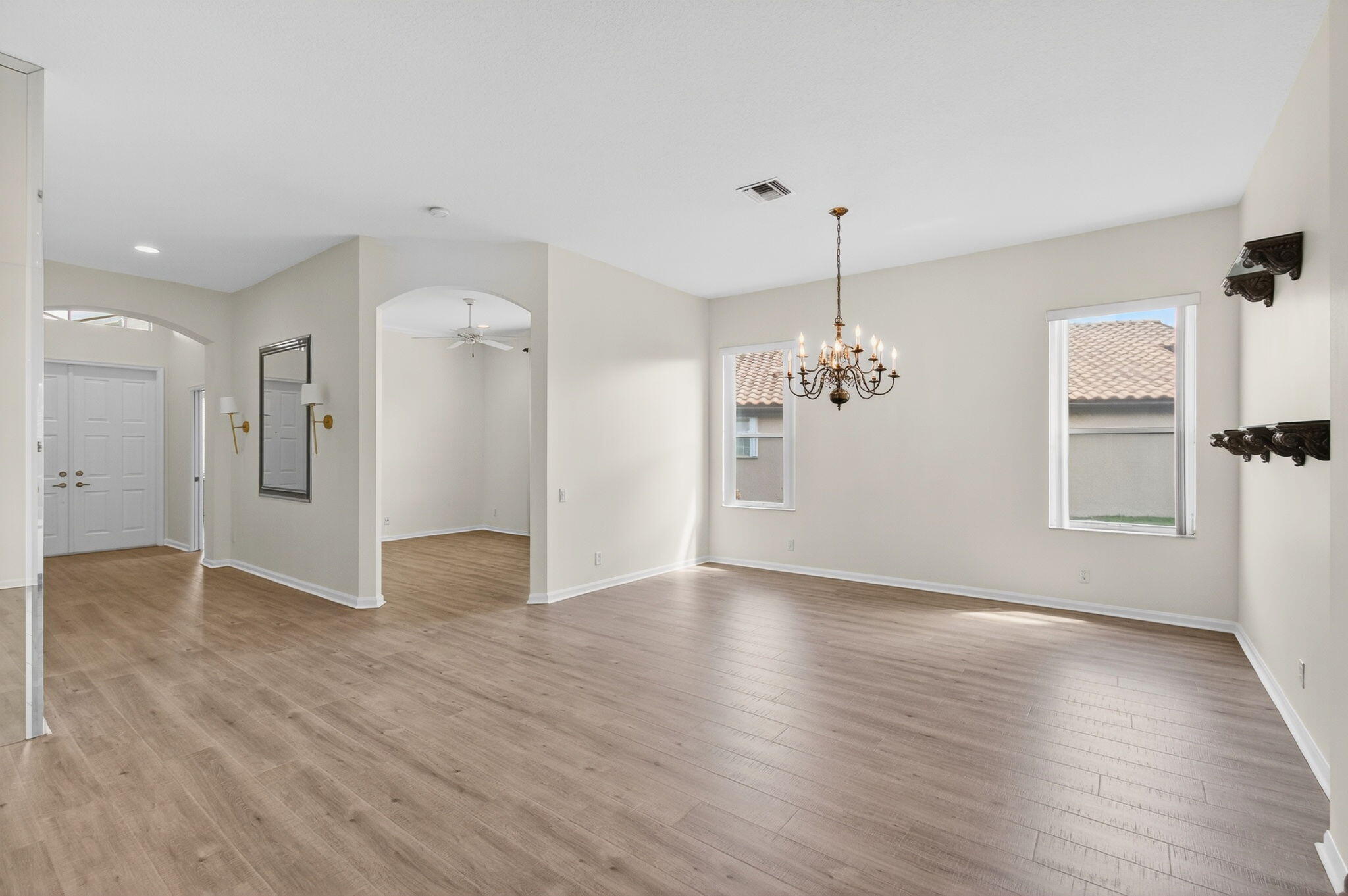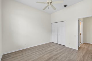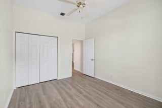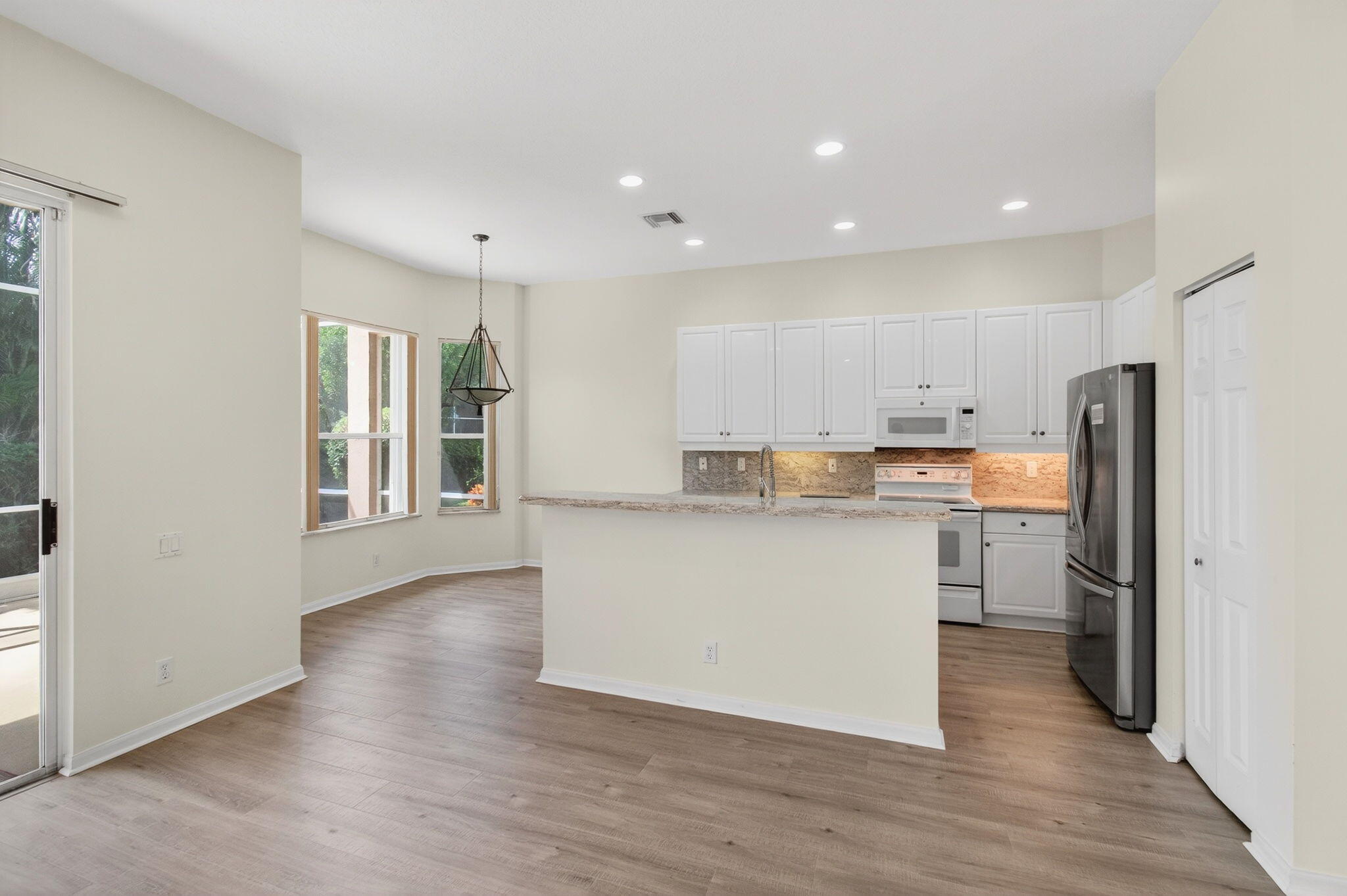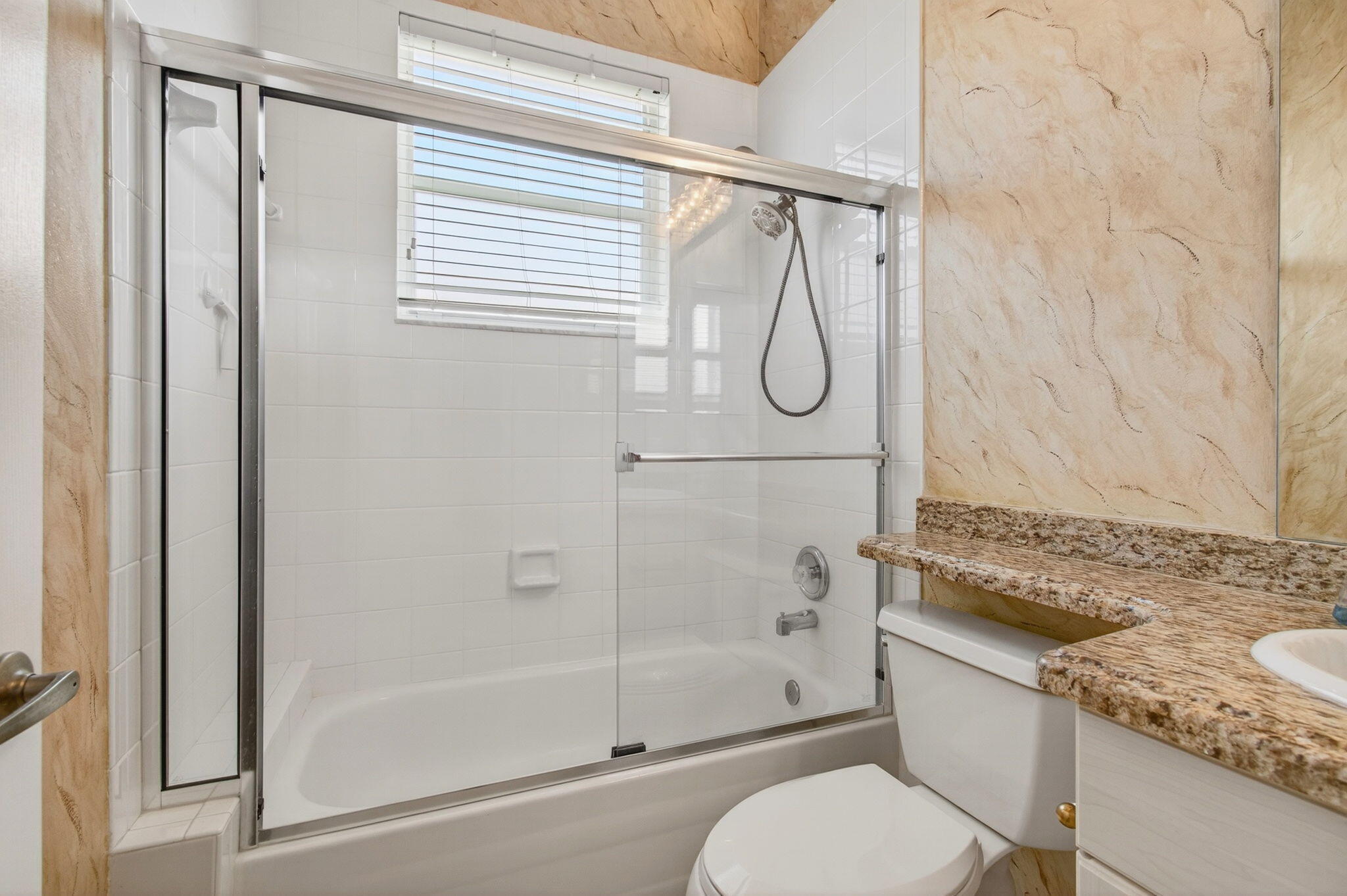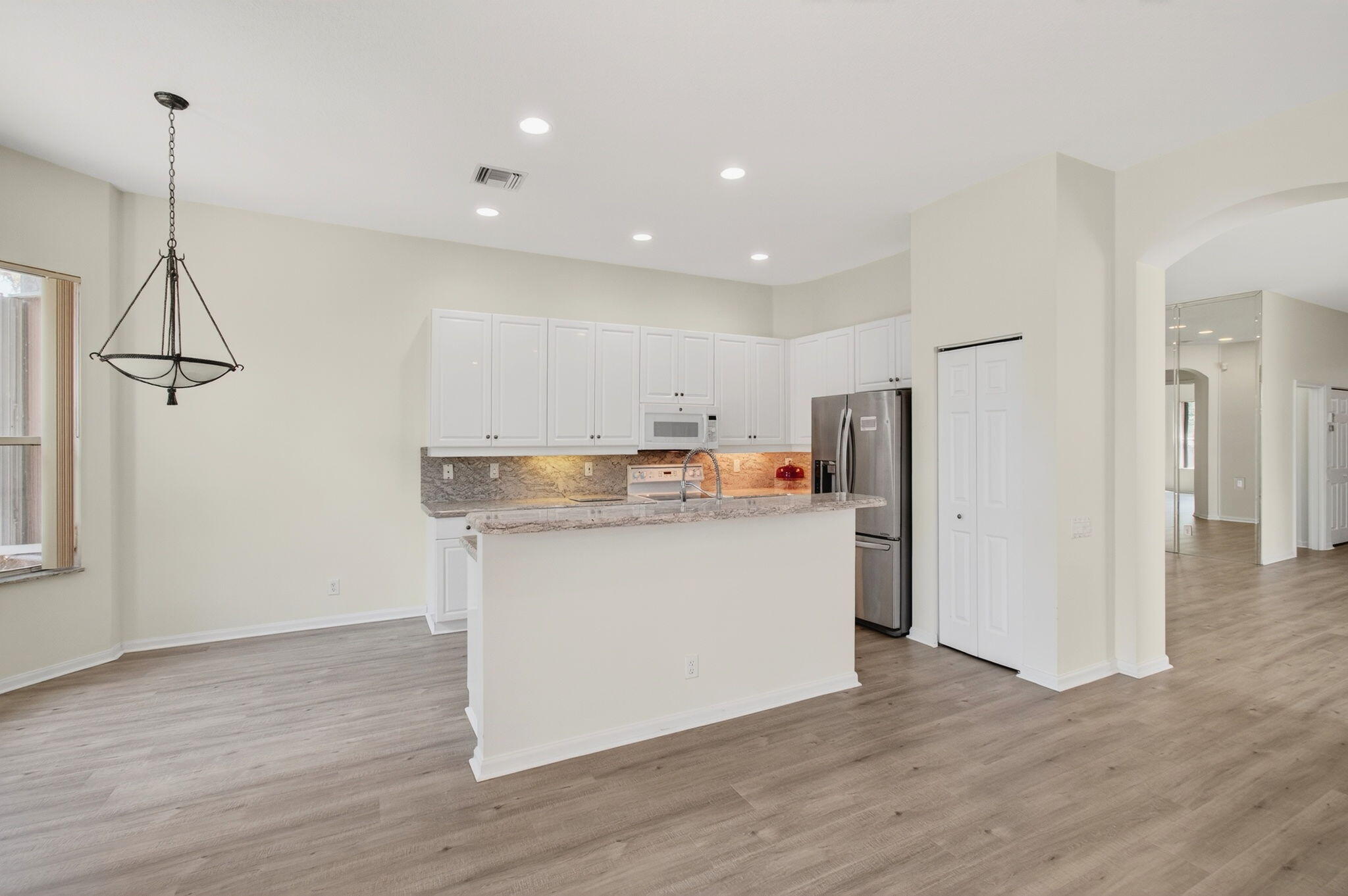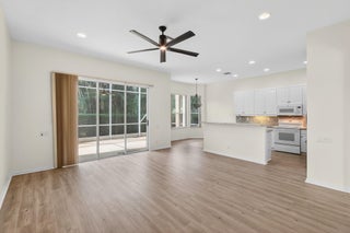 This Granville model in Cascades has been beautifully transformed with BRAND NEW Nature Tek laminate flooring installed throughout the home, offering a seamless and elegant look that enhances every room. With 2 bedrooms plus a den, 2 bathrooms, and over 2,000 square feet of living space, this residence sits on a larger lot with an extended side yard. Freshly painted in neutral Sherwin-Williams tones with wallpaper thoughtfully removed, the interiors are ready for your personal touch. The spacious kitchen offers white 42'' cabinetry, sleek granite countertops, stainless steel appliances--including an LG Stainless Steel refrigerator, a KitchenAide new dishwasher, and a brand new disposal. It opens to both formal and casual living areas, perfect for entertaining or relaxing.The primary suite is a true retreat with his-and-hers custom closets, dual vanities, a soaking tub, and a separate glass-enclosed shower. A split-bedroom layout offers privacy for guests, with an updated second bathroom featuring granite counters and a glass-enclosed tub/shower combo. Additional highlights include a 2024 water heater, 2017 AC with New UV light and New Nest thermostat, Roof 2009, new ceiling fans, hurricane-rated garage door with MyQ remote opener, accordion shutters for storm protection, and central vacuum system. The home is situated on a premium oversized lot with an expansive side yard offering additional privacy and tranquility. Cascades offers resort-style living with a 24/7 manned gated entrance, updated clubhouse, resort-style pool and spa, state-of-the-art fitness center, on-site café serving breakfast and lunch, pickleball and tennis courts, card rooms, clubs, and live entertainment. Golf enthusiasts can enjoy Westchester Country Club's 18-hole courseright next door with no mandatory membership. HOA fee includes high-speed internet, cable, lawn care, exterior home painting, and full access to all community amenities.