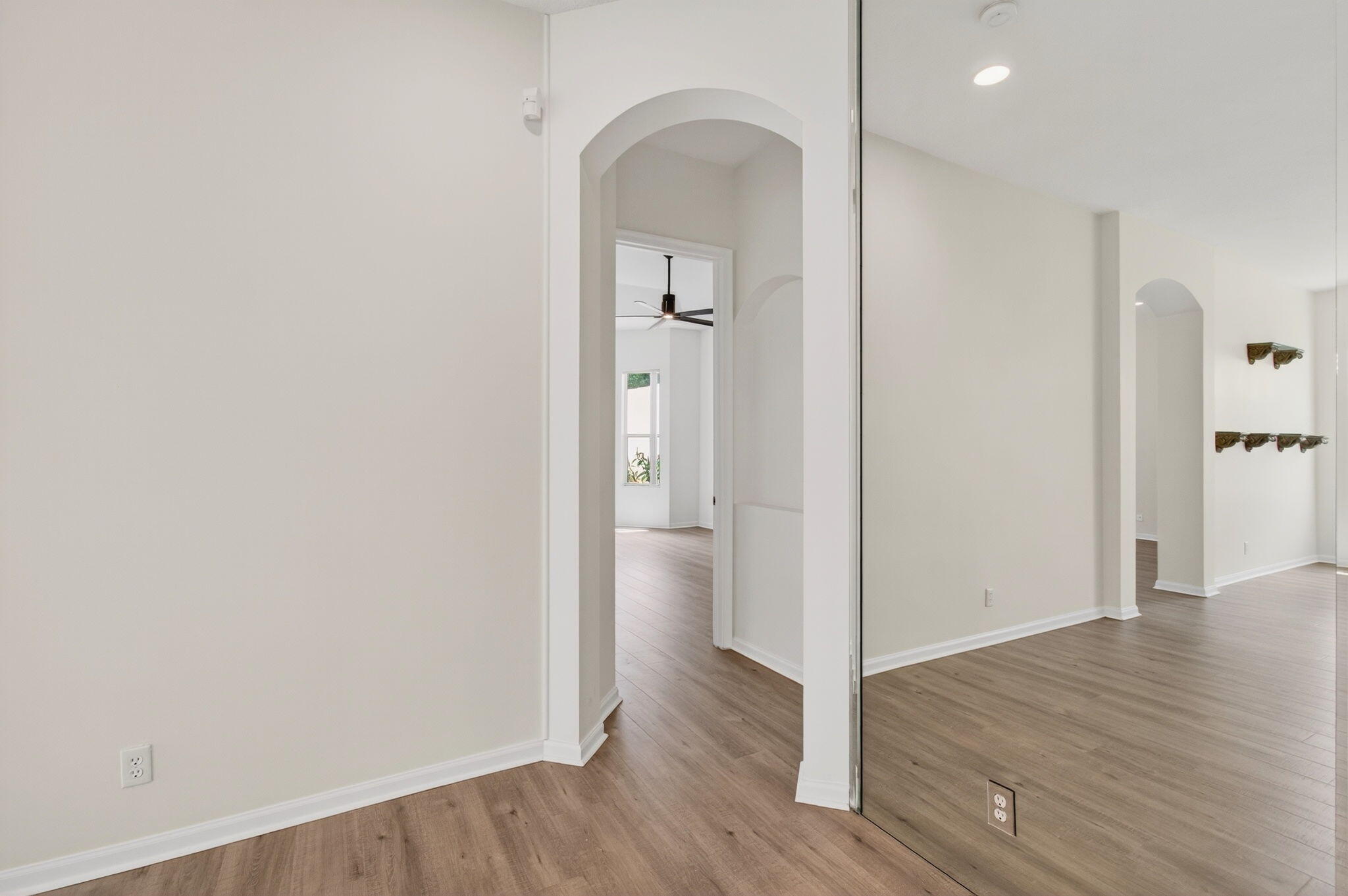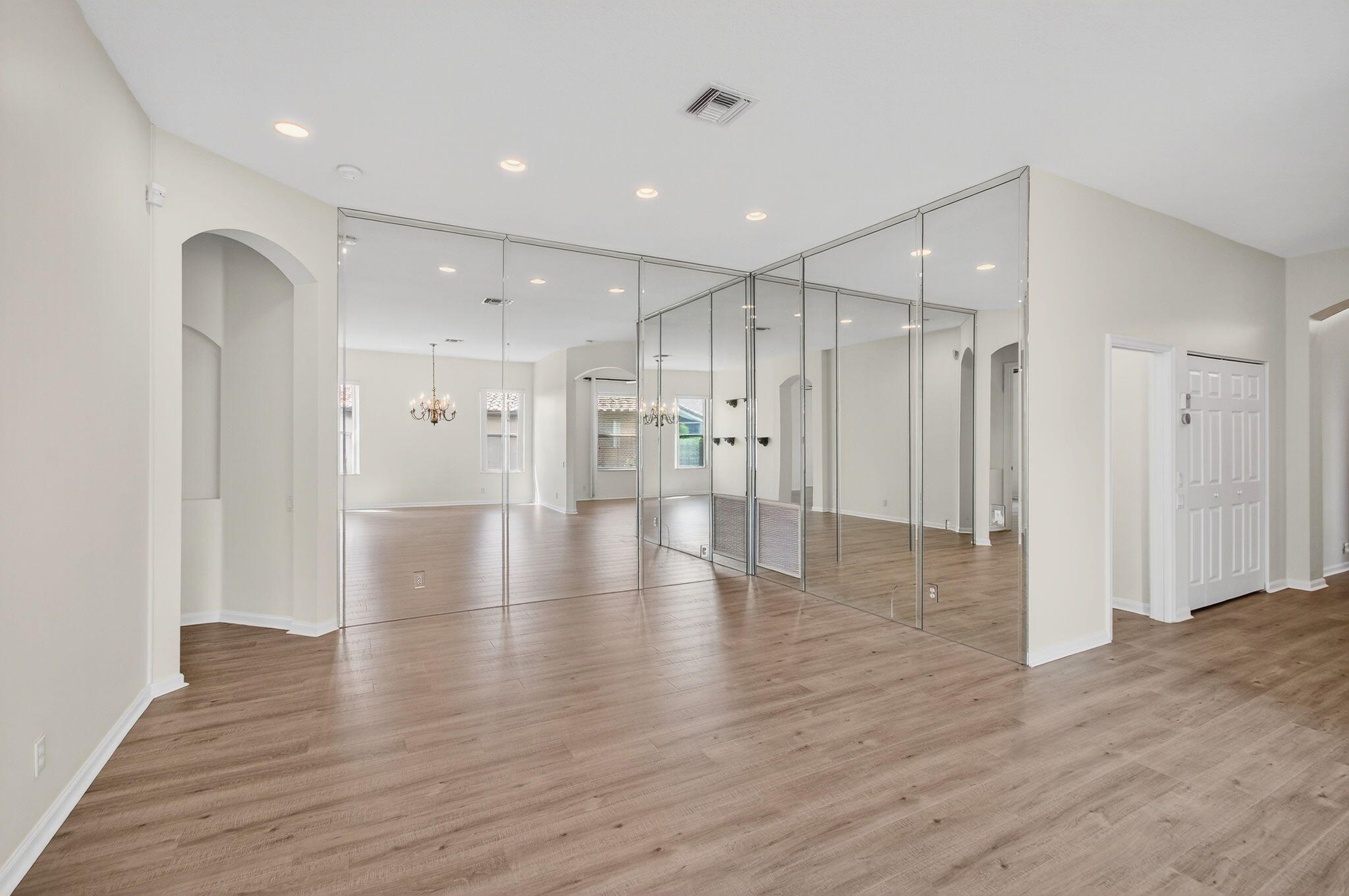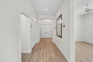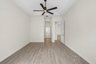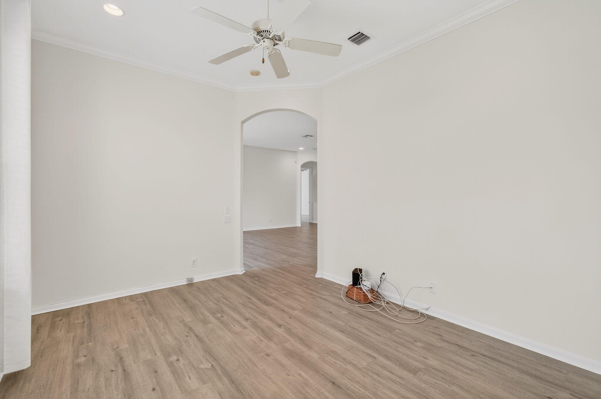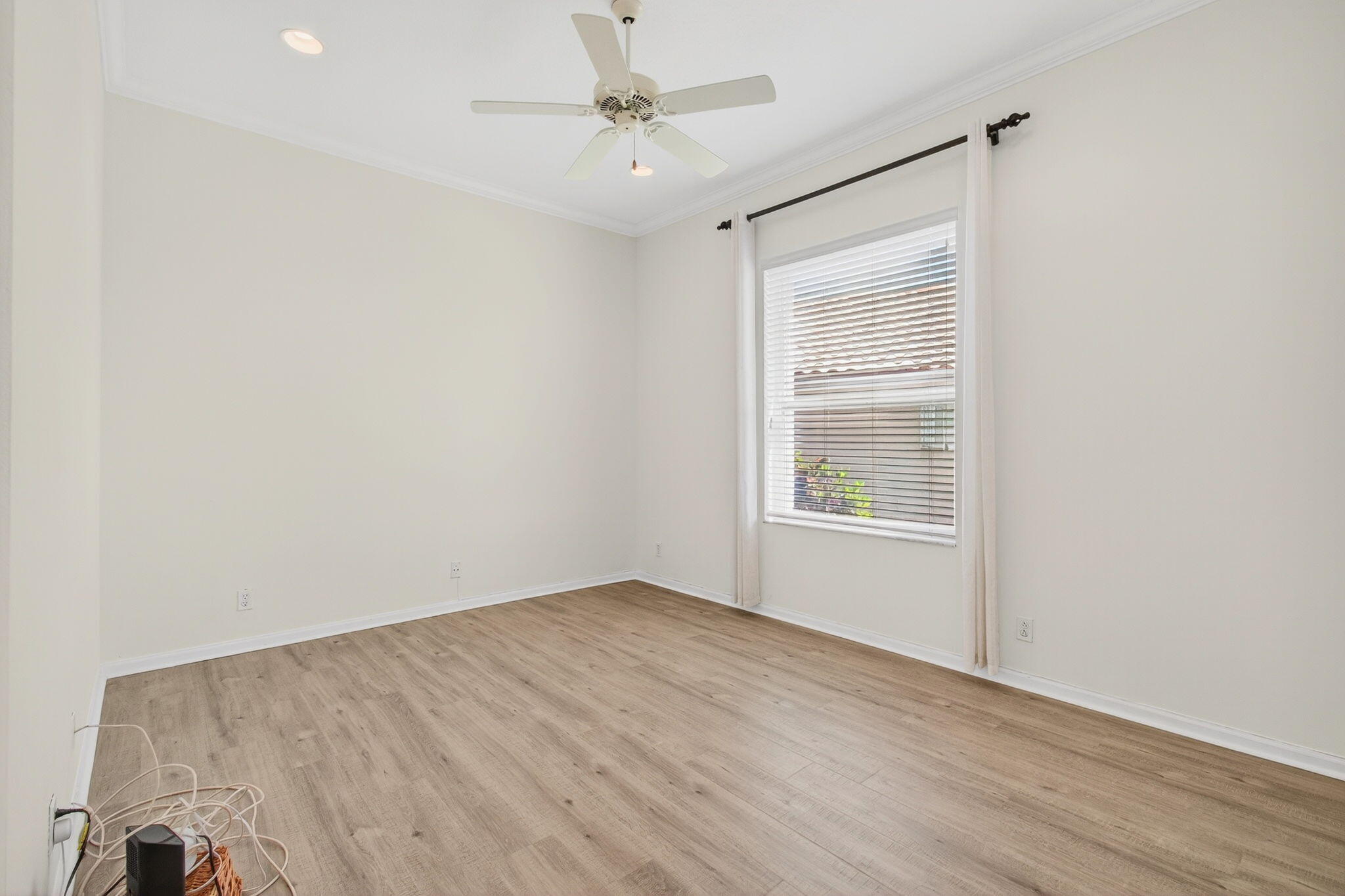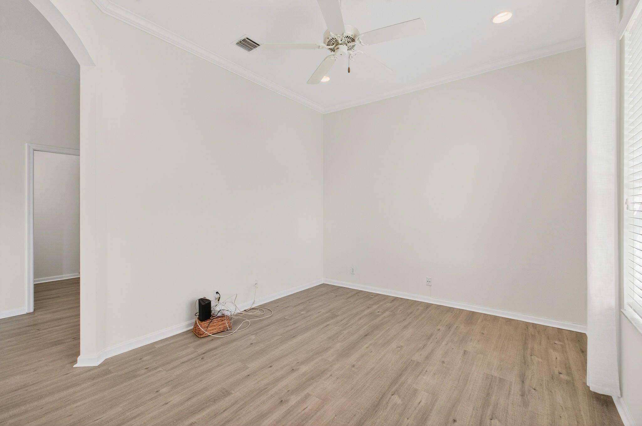 This Granville model in Cascades has been beautifully transformed with BRAND NEW Nature Tek laminate flooring installed throughout the home, offering a seamless and elegant look that enhances every room. With 2 bedrooms plus a den, 2 bathrooms, and over 2,000 square feet of living space, this residence sits on a larger lot with an extended side yard. Freshly painted in neutral Sherwin-Williams tones with wallpaper thoughtfully removed, the interiors are ready for your personal touch. The spacious kitchen offers white 42'' cabinetry, sleek granite countertops, stainless steel appliances--including an LG Stainless Steel refrigerator, a KitchenAide new dishwasher, and a brand new disposal. It opens to both formal and casual living areas, perfect for entertaining or relaxing.The primary suite is a true retreat with his-and-hers custom closets, dual vanities, a soaking tub, and a separate glass-enclosed shower. A split-bedroom layout offers privacy for guests, with an updated second bathroom featuring granite counters and a glass-enclosed tub/shower combo. Additional highlights include a 2024 water heater, 2017 AC with New UV light and New Nest thermostat, Roof 2009, new ceiling fans, hurricane-rated garage door with MyQ remote opener, accordion shutters for storm protection, and central vacuum system. The home is situated on a premium oversized lot with an expansive side yard offering additional privacy and tranquility. Cascades offers resort-style living with a 24/7 manned gated entrance, updated clubhouse, resort-style pool and spa, state-of-the-art fitness center, on-site café serving breakfast and lunch, pickleball and tennis courts, card rooms, clubs, and live entertainment. Golf enthusiasts can enjoy Westchester Country Club's 18-hole courseright next door with no mandatory membership. HOA fee includes high-speed internet, cable, lawn care, exterior home painting, and full access to all community amenities.