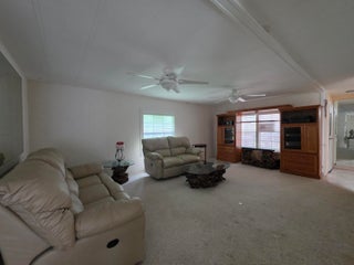 Welcome to Spanish Lakes Riverfront! This beautifully maintained 2-bedroom, 2-bath home offers around 1,300 sqft. of comfortable living space, featuring an updated kitchen with modern finishes, and plenty of storage. Relax in the fully enclosed, under-air Florida Room--perfect for a home office, cozy den, or potential third bedroom! The spacious primary suite offers natural light, with flooring ready for your personal touch. Set on a private lot backing up to a wooded forest, this home provides peace, privacy, and a serene backdrop. Located in a vibrant 55+ community with resort-style amenities and a monthly lot lease of $898.77, this home delivers comfort, flexibility, and true Florida lifestyle. Schedule your showing today!