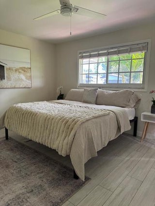 Completely remodeled 3-bedroom, 2-bathroom single-family home near downtown Delray Beach. Conveniently located close to shopping, dining, and top-rated schools. Features include a new shingle roof, brand new air conditioning with all ducts redone, quartz kitchen countertops and kitchen island, stainless steel appliances, and modern bathrooms. The home also boasts an open floor plan with walls and windows with full view French doors creating a very bright home with full view of the lush, tropical backyard, ceramic tile flooring, impact windows, recessed lighting, ceiling fans, and stylish fixtures throughout. Additional perks include a two-car garage, large driveway and a stylish outdoor shower with a coastal tropical feel, and a large 14x20 covered patio. Room for pool.