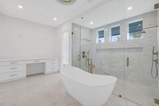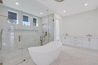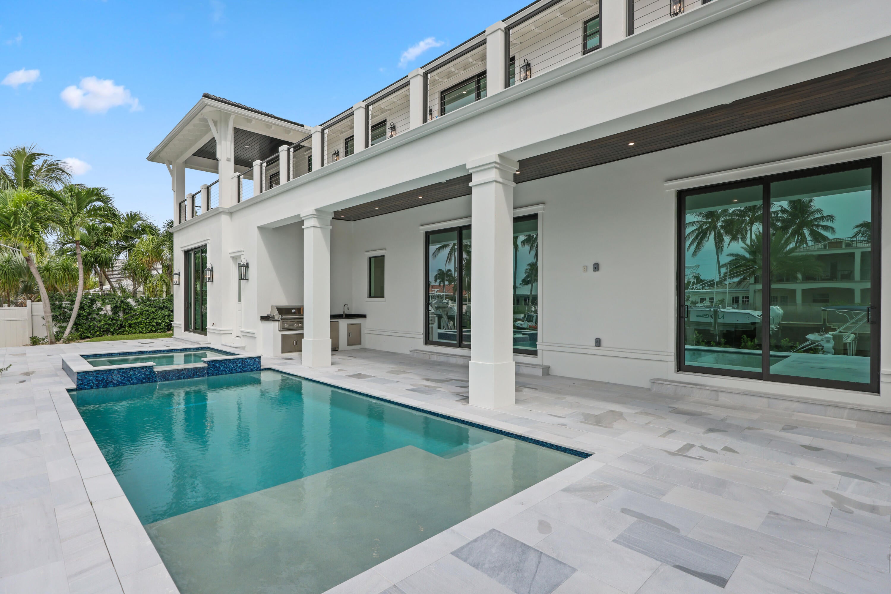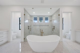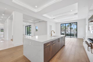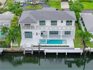 Waterfront New Construction! 5BR, one of which could serve as an Office, 6.1 BA, 2CG CBS home built with the finest and most Luxurious finishes (Floor Plans Attached). 90' of water frontage on a deep wide water canal. New 74' dock and 15k lb lift. Ocean access within minutes with no fixed bridges and a short walk to the beach. Abundant living space including great room, family room, formal dining room and dual master suites. 12'x35' heated pool/spa with large sundeck. A dream gourmet kitchen offers a Thermador 6 burner sealed Gas stainless steel cooktop, Thermador stainless steel 30'' built in double convection ovens, Thermador 48'' fridge/freezer, dual Thermador dishwashers, microwave oven and a spacious pantry. Floor Plans attached in Documents.The kitchen features - See Supplement...Waterfront New Construction! 5BR, one of which could serve as an Office, 6.1 BA, 2CG CBS home built with the finest and most Luxurious finishes (Floor Plans Attached). 90' of water frontage on a deep wide water canal. New 74' dock and 15k lb lift. Ocean access within minutes with no fixed bridges and a short walk to the beach. Abundant living space including great room, family room, formal dining room and dual master suites. 12'x35' heated saltwater pool/spa with large sundeck. A dream gourmet kitchen offers a Thermador 6 burner sealed Gas stainless steel cooktop, Thermador stainless steel 30'' built in double convection ovens, Thermador 48'' fridge/freezer, dual Thermador dishwashers, microwave oven and a spacious pantry. Floor Plans attached. The kitchen features hand-made custom cabinets with a large island. This home offers a grand entrance with double bronze aluminum/glass doors & marble floors and beautiful staircase leading to a gallery opening to a deck on the front of the house. The living areas on both floors are finished with high quality engineered wood floors. Several rooms feature beautiful ceiling details. The home is built with the best quality materials and workmanship including high impact hurricane windows and doors. There are large sliding doors in all the rooms facing the water letting in lots of natural light and giving a beautiful view of the pool, the water and your boat. The house is perfect for entertaining with a wonderful flow from the indoors to the outdoors. The downstairs master suite includes oversized his & her closets, a spacious bathroom with a built-in dressing table, dual shower, soaking tub, and separate toilet rooms all finished in the highest quality marble floor and Snow White marble counter tops. The upstairs boasts a spacious master suite with a large deck the full width of the house overlooking the pool and the water. Three additional upstairs bedrooms are all ensuites with luxury finishes and large walk-in closets also open out to the deck. The deck has a 14'X19' covered area. There is a day kitchen with sink and refrigerator in the gallery. Additional features include a large veranda with summer kitchen and cabana bath. This home is architect designed and has a West Indies flare with many contemporary features and includes new lush tropical landscaping. No furnishings, window treatments, light fixtures (except those already installed) or built-ins are included in the sale price.