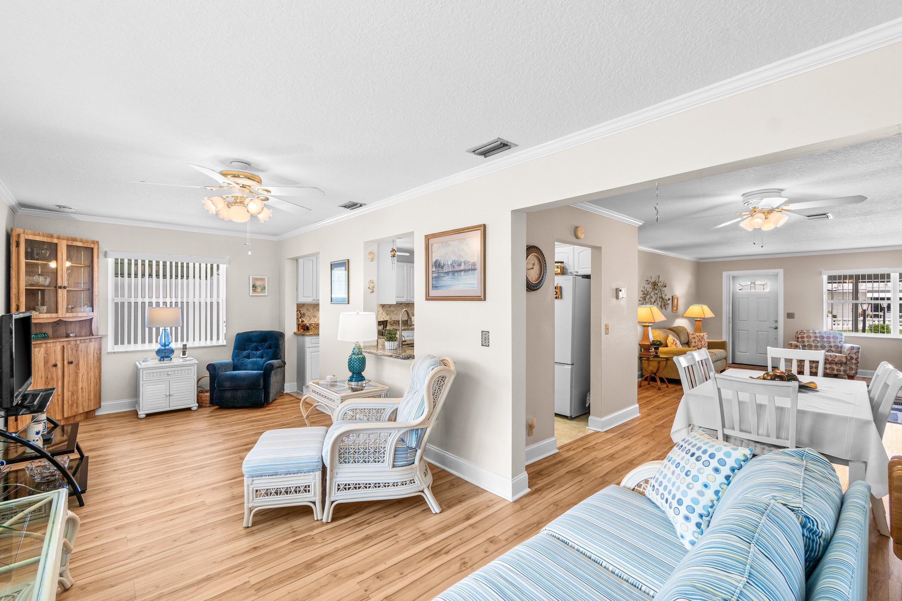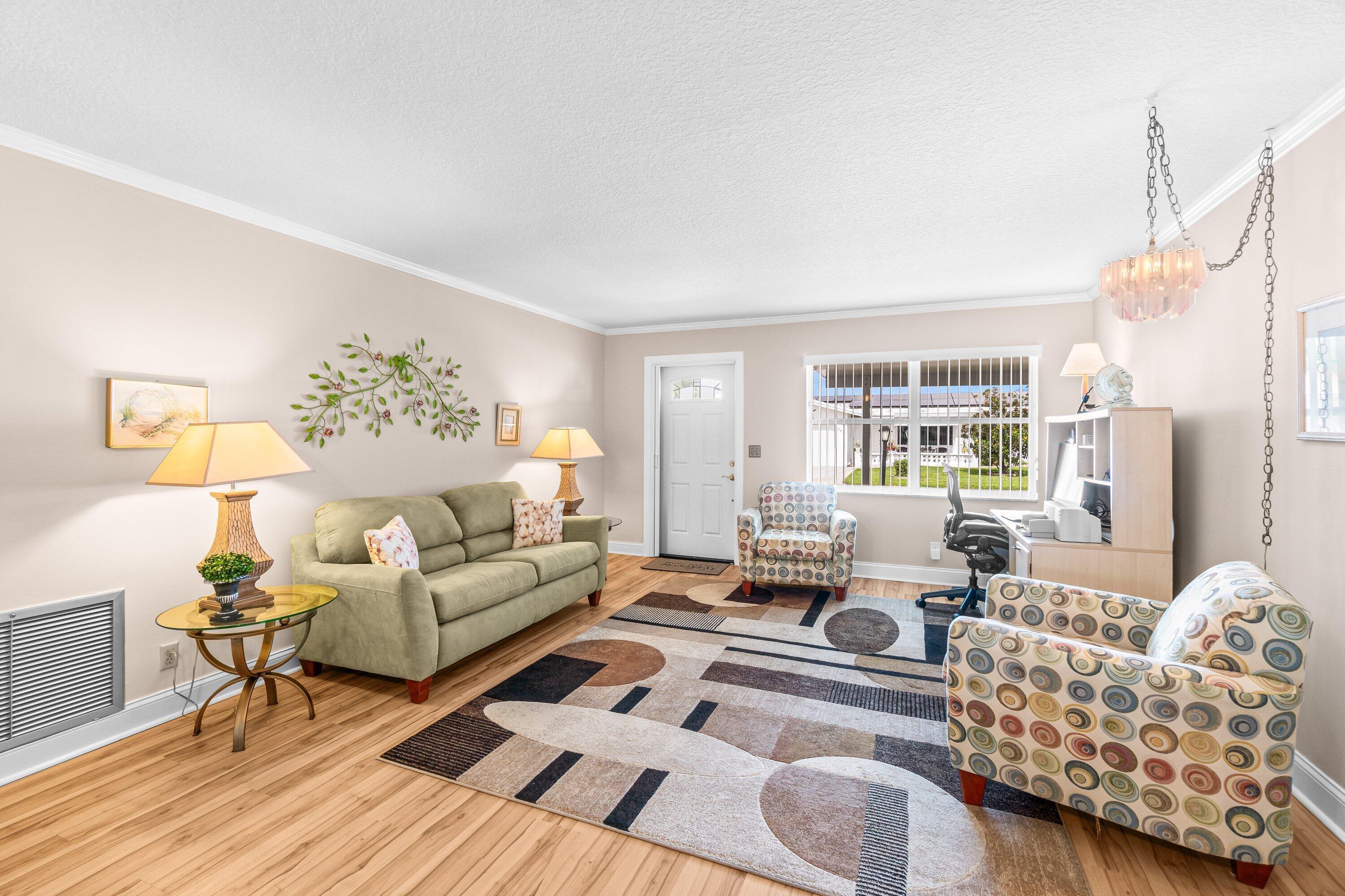 This Leisureville 55+ home is pristine!! The seller is immaculate. New flooring and an updated kitchen make this home stand out from the competition. A great back patio and front patio are amazing for starting your day with a coffee or ending it with a sunset and a good book. Come make Leisureville home. Low HOA and a ton of amenities. Close to 95, the beach and tons of shopping.