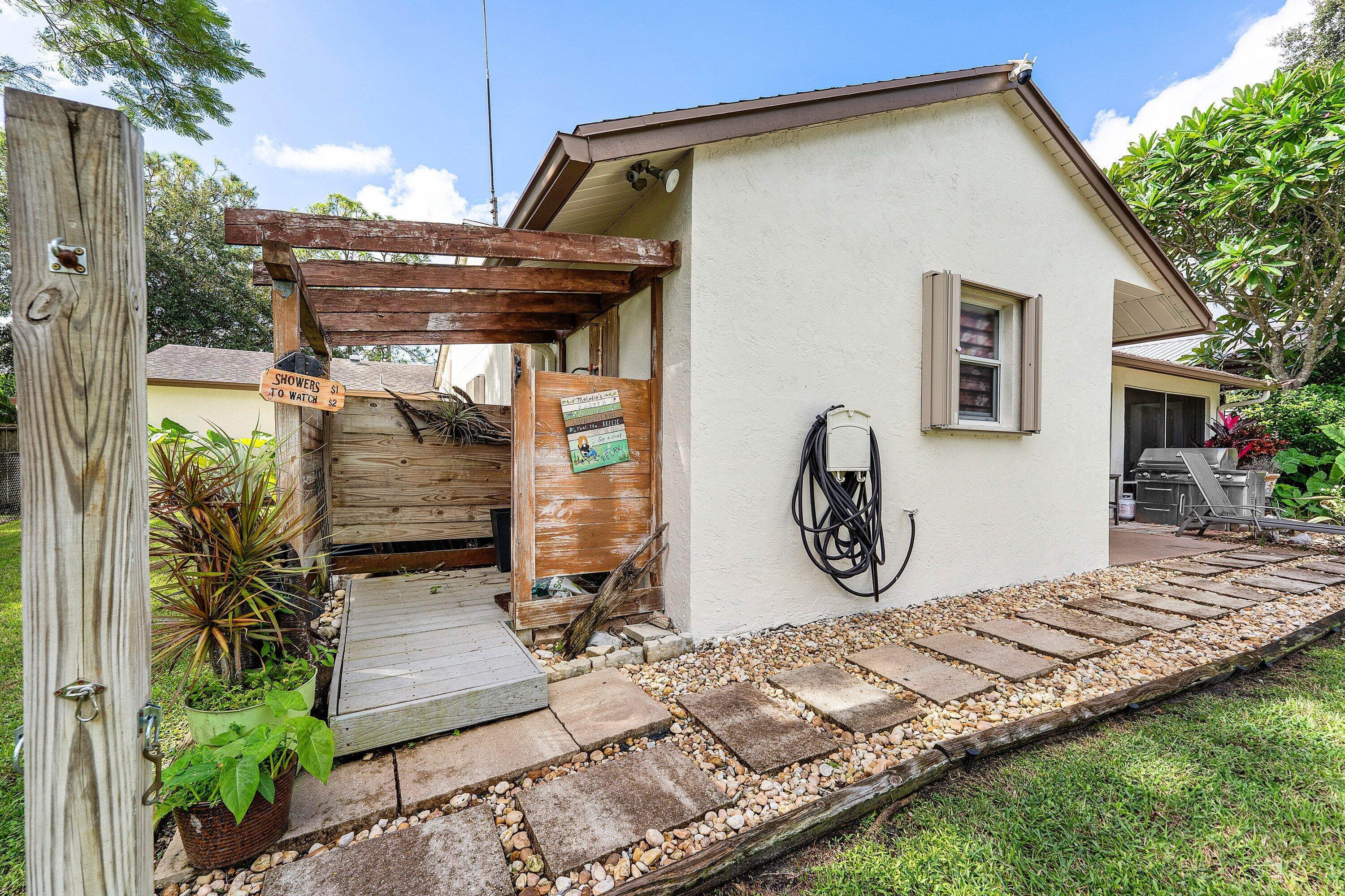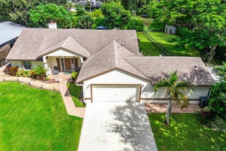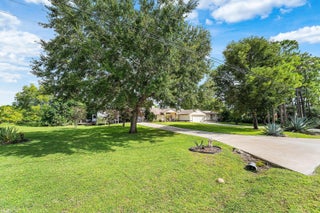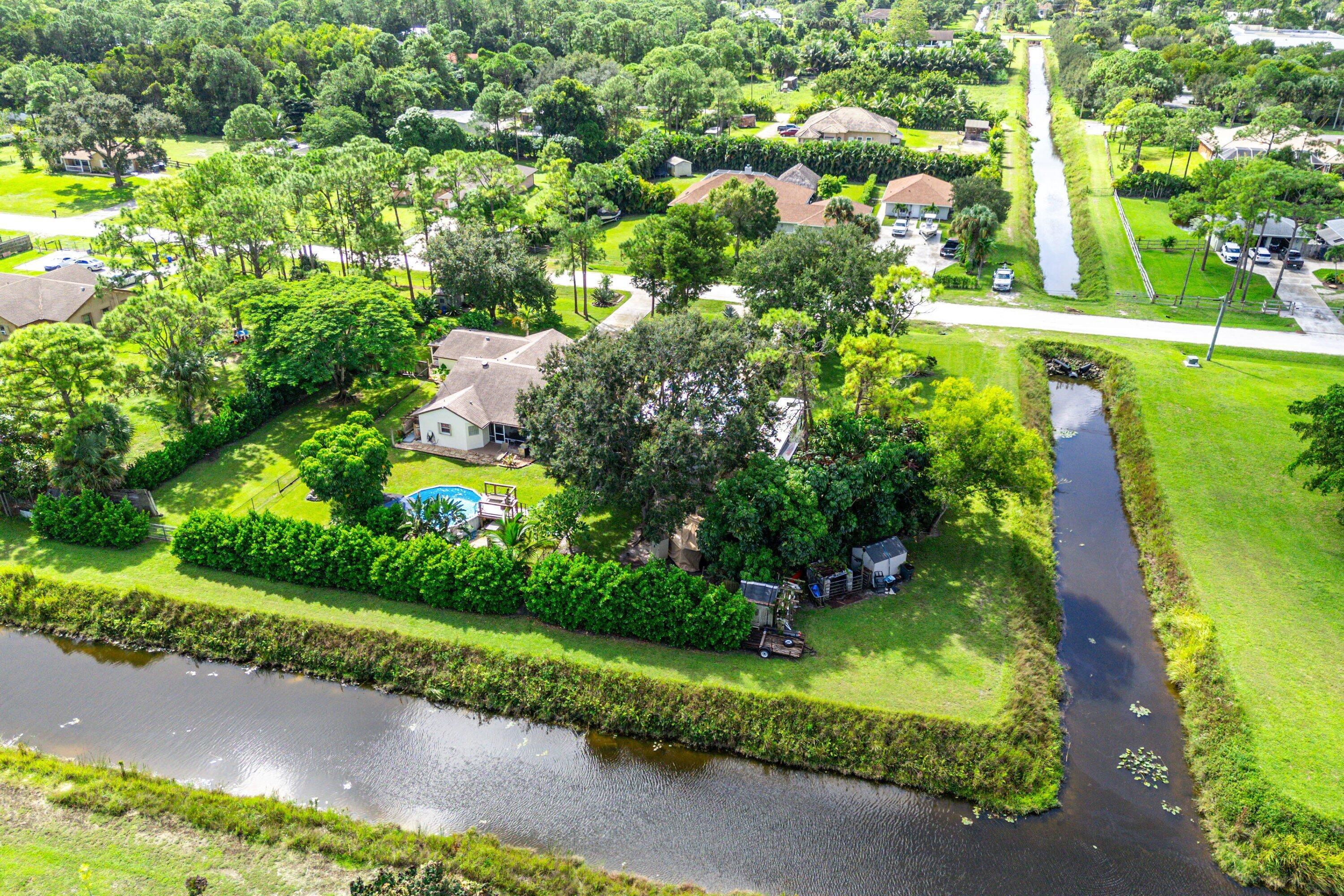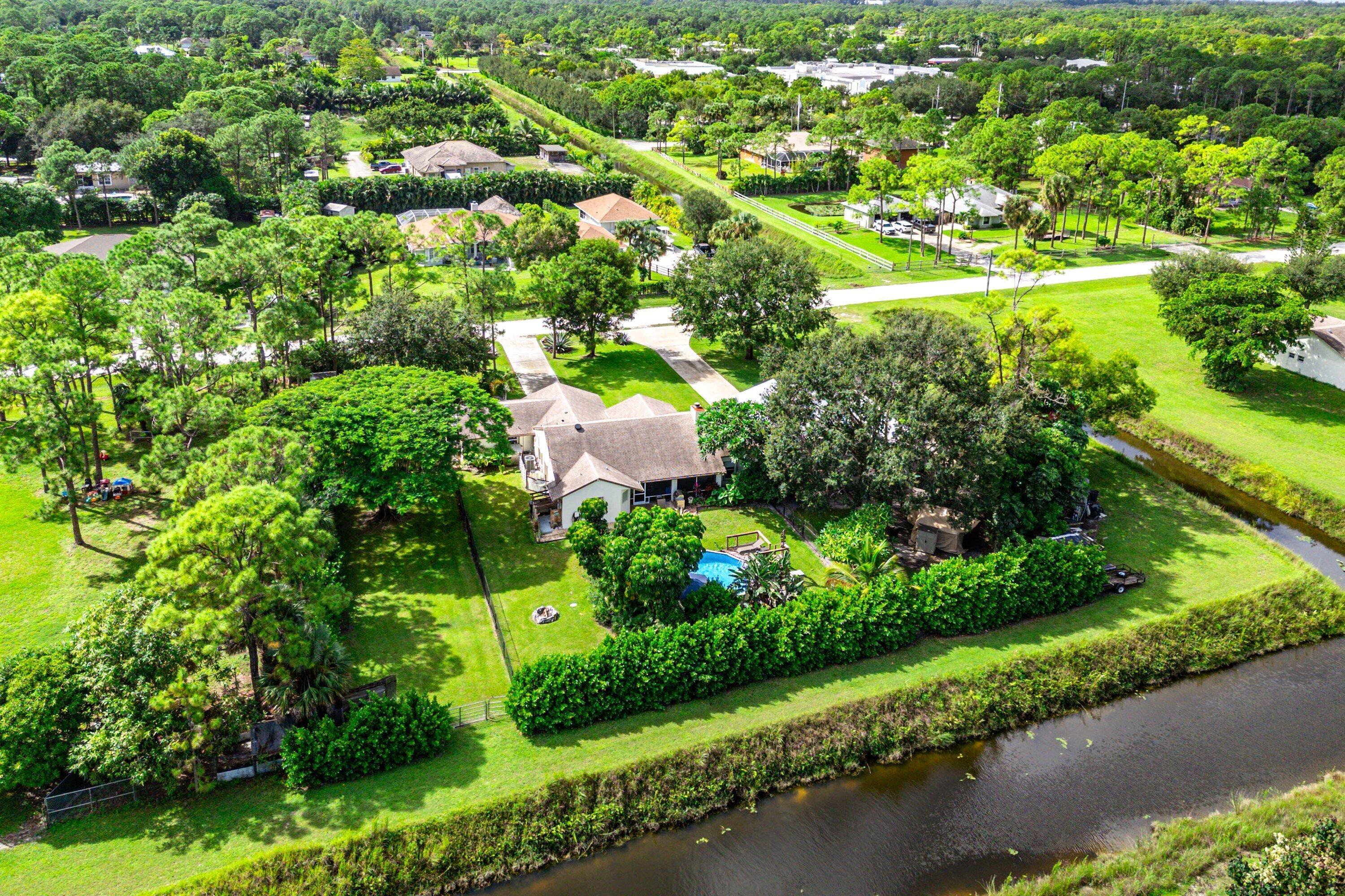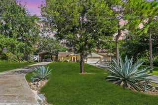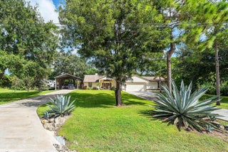 WOW FACTOR ALERT! This is a stunning nearly 1.5 acres.retreat of pure Florida paradise. NO HOA, NEW ROOF & RARE DUAL DRIVEWAYS! The main home offers 3 beds / 2 baths, an airy open layout with vaulted ceilings, and a beautifully UPDATED kitchen with granite counters, subway tile, and rich cabinetry. The primary suite impresses with a custom walk-in closet and spa-like CABANA bath. A remodeled IN-LAW SUITE with its own entrance, full kitchen, and bath makes the perfect guest haven or rental! Outside, enjoy your private oasis POOL & HOT TUB with an OUTDOOR SHOWER, covered/screened patio, + a fully fenced yard with canal access on 2 sides. Extra perks: oversized carport with water/electric (boat/RV ready), functioning fireplace, accordion shutters, and generator hookup. Minutes to everything!
