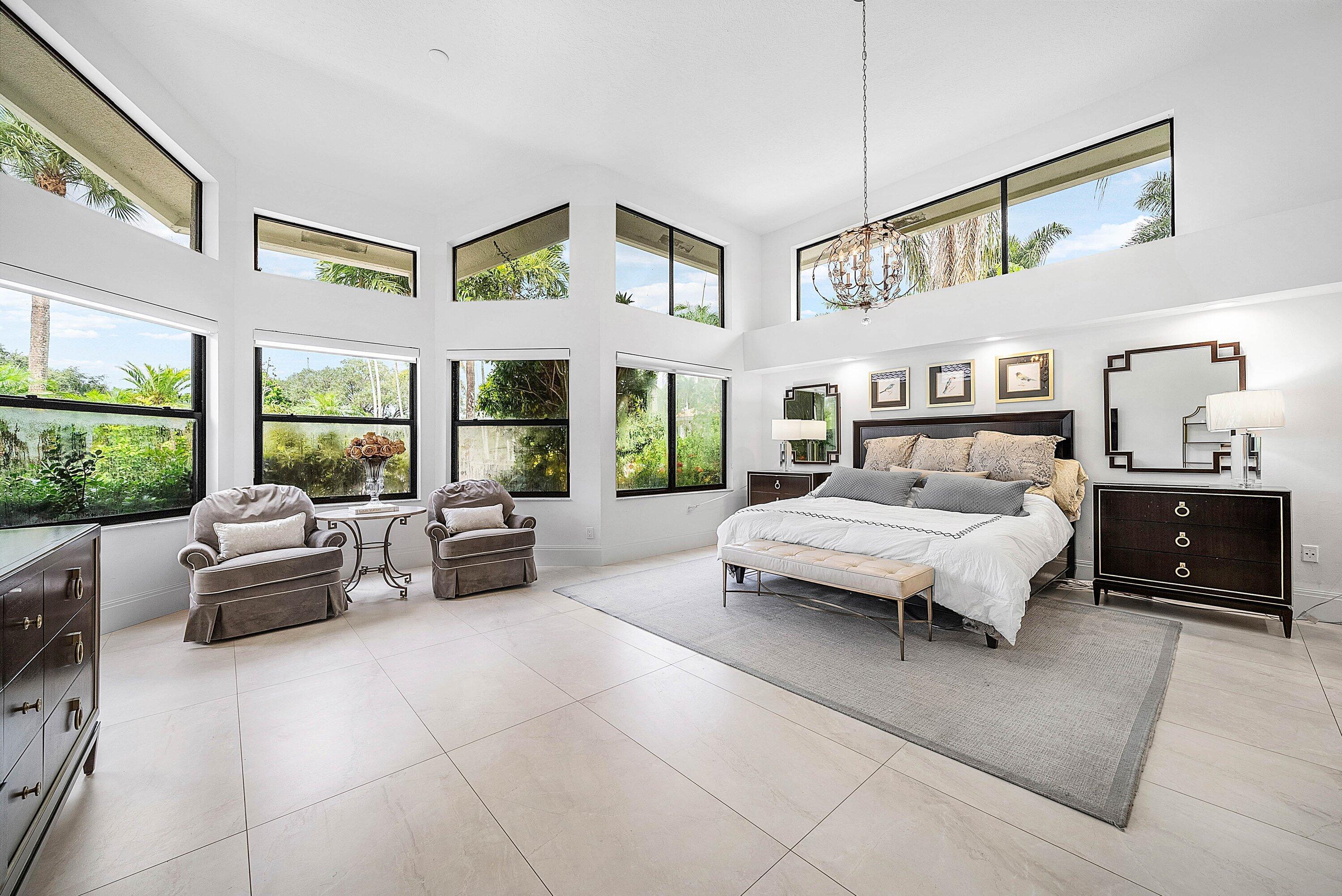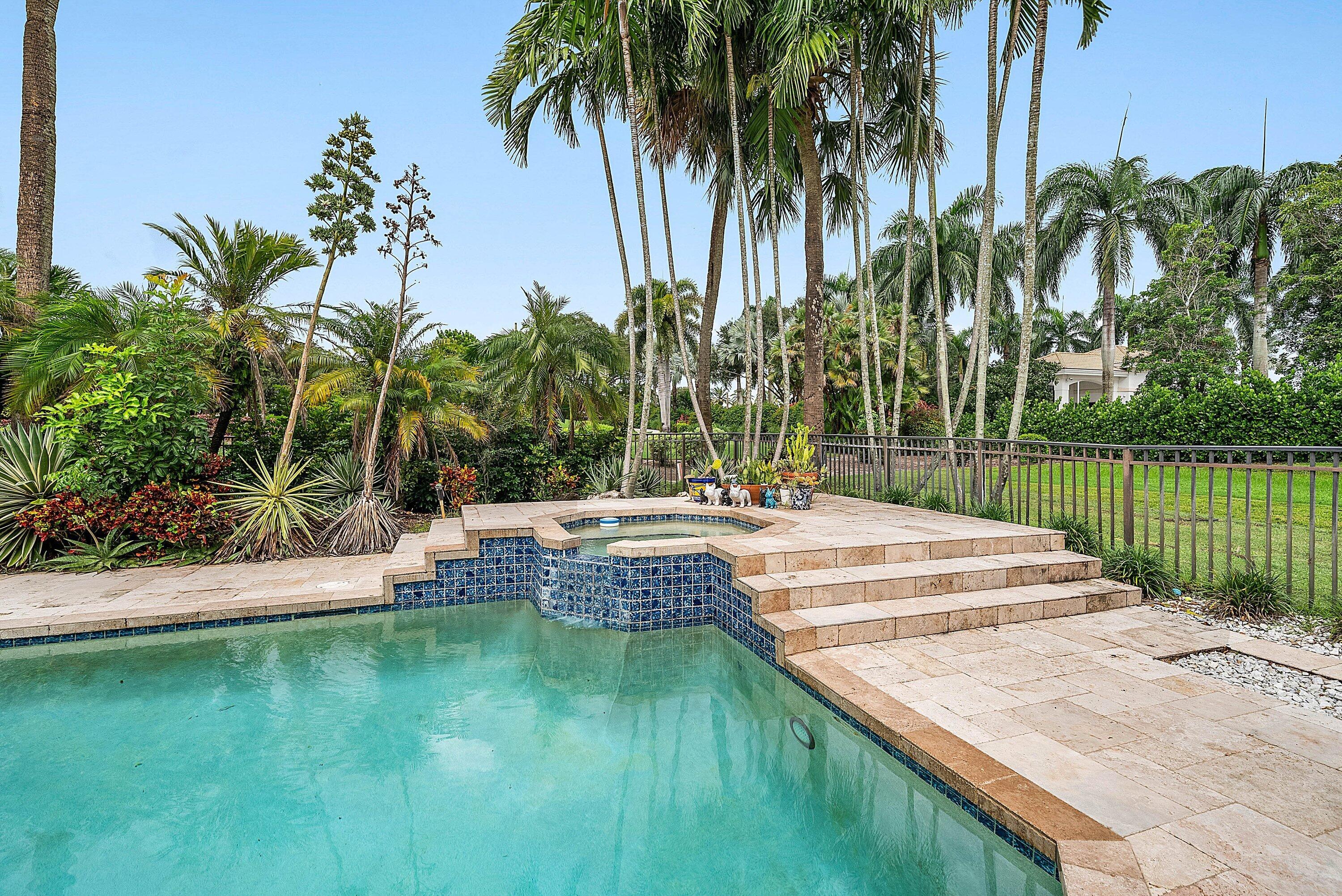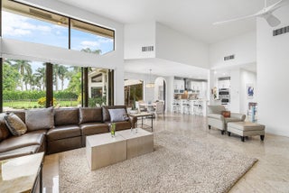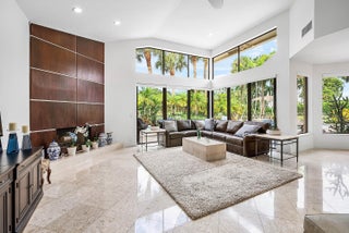 Sunny & warm tropical paradise! This beautifully updated & meticulously maintained home offers over 4,000 sqft on 1/3 acre. 4 ensuite bedrooms (one used as office) with split floor plan, vaulted ceilings & light-filled spaces. Spacious family room with fireplace & custom wet bar--perfect for entertaining. Renovated kitchen & baths. Step outside to a lush backyard with pool overlooking manicured golf course & water--absolutely stunning! Walk to clubhouse, golf, tennis/pickle, fitness & dining. Exclusive Bocaire Country Club with only 239 homes offers resort-style amenities, championship golf, racquets, 24 hr fitness, high-end dining & a welcoming community. Membership extends to parents, children and grandchildren. A-rated school district, close to beaches, restaurants, airports & shopping.