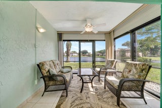 Enjoy stunning lake views from this bright first-floor corner unit with a glass-enclosed patio. Benefit from convenient assigned parking, quick pool access, accordion shutters for protection, & the ability to BBQ outdoors. Inside, find granite countertops, lightly used appliances, updated flooring, crown molding, & a stacked washer/dryer. Live securely in Boca Lago's gated, non-mandatory country club 55+ community near shopping & major roads. Plus, a brand-new air conditioner was installed in October 2025 & new roof 2025. Don't miss the chance to live in comfort and style with spectacular views!