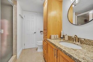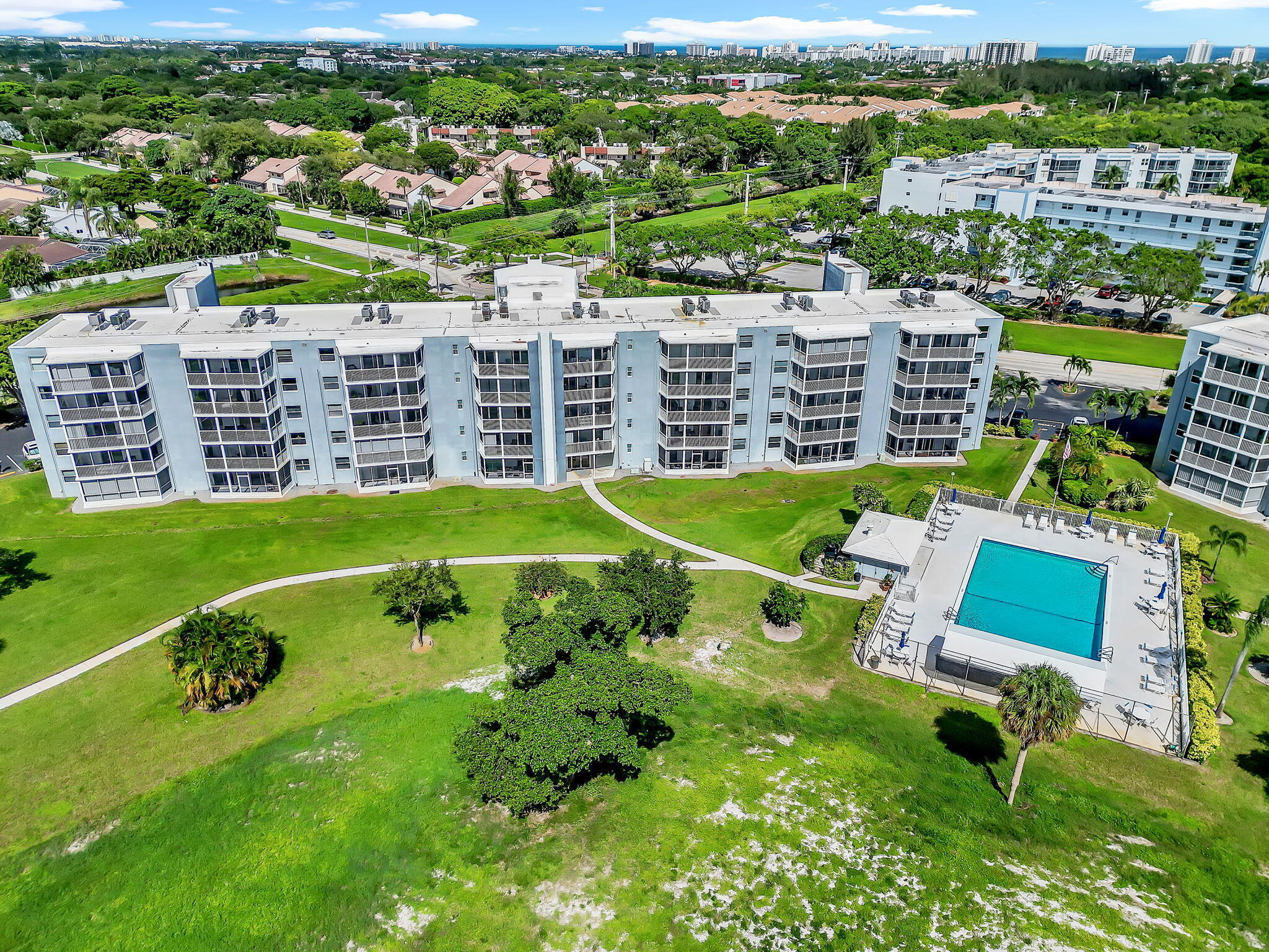 This bright & spacious 2 bed/2 bath with den condo can easily be converted into a 3 bedroom by closing off the large den/office. Floors are wood & ceramic throughout, and the updated kitchen has wood cabinets, granite counter tops, and stainless-steel appliances. The walk-in laundry room/pantry is conveniently accessed through the kitchen. The large screened in balcony faces southwest overlooking the large pool and our western sunsets. Enjoy low condo fees of $534/month, A-Rated school zone while being 1 mile (5-minute drive) to the beach and close to FAU, Mizner Park, & downtown Delray. NO LEASE building with a secure phone entry system and a welcoming lobby. Condo fees include cable, high speed internet, water, sewage, trash & reserves. Reports, Studies and Certifications are completed.