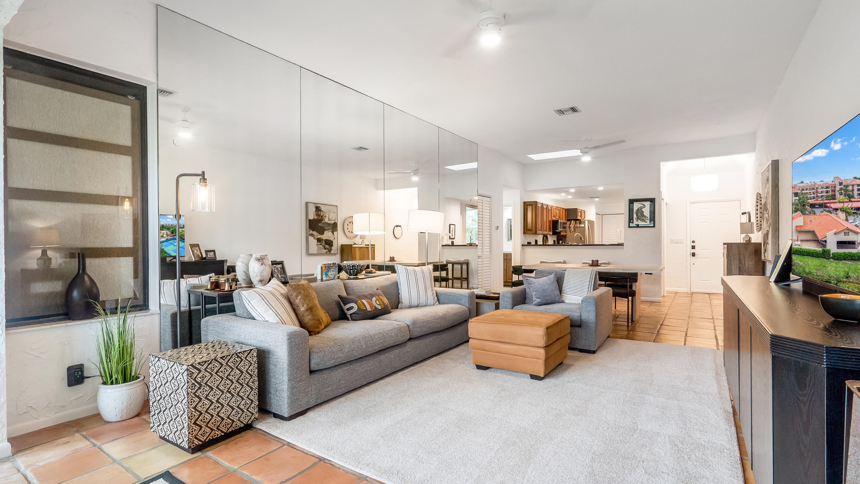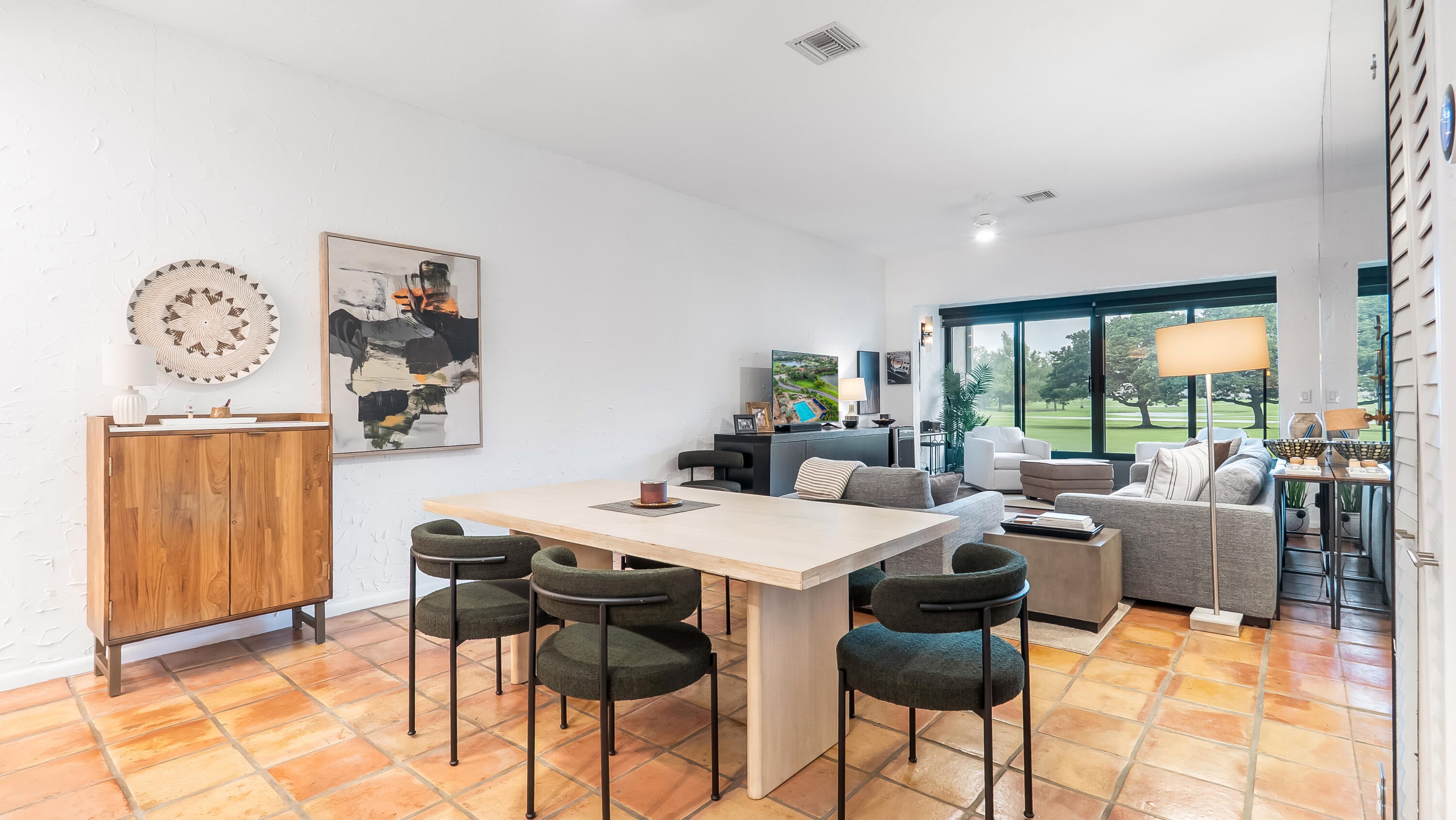 Don't miss this rarely available 1,300 sqft Villa in Boca Point - move-in ready & designed for effortless living! This beautifully updated 1BR/1.5BA home features panoramic golf course views, designer finishes, and an open-concept layout filled with natural light. Enjoy a private enclosed patio/Florida room overlooking the greens, plus a versatile flex space off the main bedroom complete with a Murphy bed--perfect for guests or a home office. Hurricane impact windows along the Florida room and a 2024 roof. Located in a secure, gated community with resort-style pools, walking paths, and optional club memberships, offering the country club lifestyle without the fees. Minutes to Boca's best beaches, dining, shopping and places of worship. All-ages community within an A rated school zone.