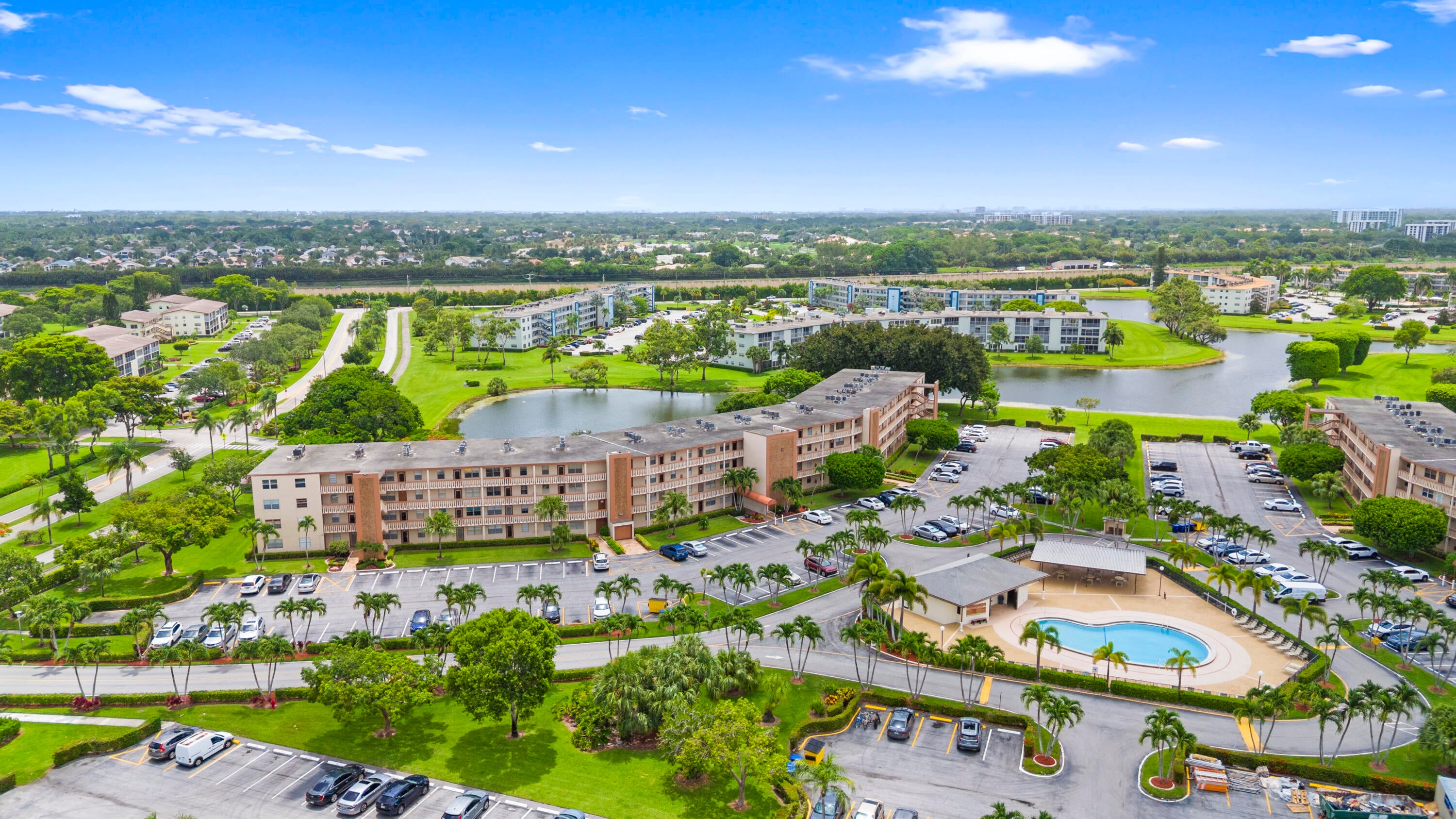 Welcome to Newcastle C, one of the most beautifully maintained buildings in all of Century Village! This spacious and upgraded 2-bedroom, 2-bath condo is the best-priced, move-in-ready condo with a tranquil lake view and it's rentable right away! Step inside to an inviting living room with a large dining area that easily accommodates a full-sized table. The renovated kitchen features modern cabinetry, new countertops, and matching Whirlpool appliances. The primary suite is impressively spacious with a walk-in closet, extended vanity, and a upgraded stand-up shower. The guest bedroom offers balcony access, a large closet, and there is a full bathroom with a tub/shower combo.Enjoy your morning coffee or evening breeze from the bright, enclosed, tiled patio overlooking the lush greenery and peaceful lake. Located in a vibrant 55+ community, residents have access to an incredible 125,000 sq. ft. clubhouse filled with resort-style amenities like a state-of-the-art theater, fitness center, heated pools, game rooms, sauna, library, billiards, and more. Community buses offer easy transportation to shopping, restaurants, and medical centers. HOA includes water, basic cable, exterior maintenance, trash removal, laundry facilities, security, and more. Don't miss this incredible value, schedule your showing today!