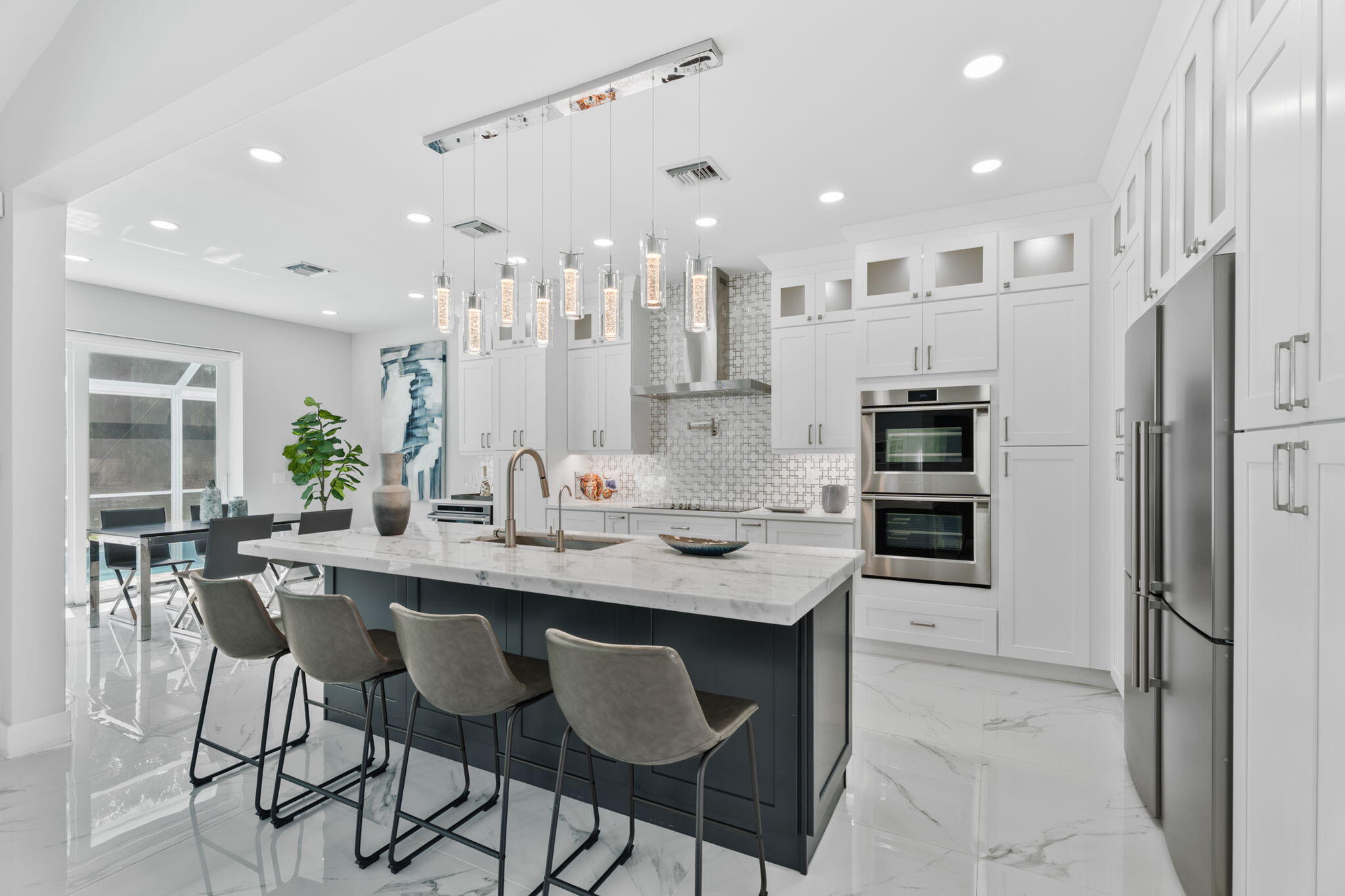 Masterfully modernized estate home in world-renowned PGA National. This stunning one-story CBS home spans over 3,800 sq. ft. of living space with 4 bedrooms & 4.5 baths. This residence features 2 large primary suites and a very private guest suite with its own entry & dry bar--perfect for in-laws or extended stays. Every detail has been upgraded: new roof, impact windows & doors, Lutron smart system, & imported porcelain floors from Spain throughout. The chef's kitchen includes double ovens, vented hood, standalone ice maker, & filtered water tap. All baths are newly redesigned with elegant finishes. Outside, enjoy a resurfaced pool, new heater, screen enclosure, & paver patio ideal for entertaining. This is your opportunity to live steps away from an internationally acclaimed golf resort.