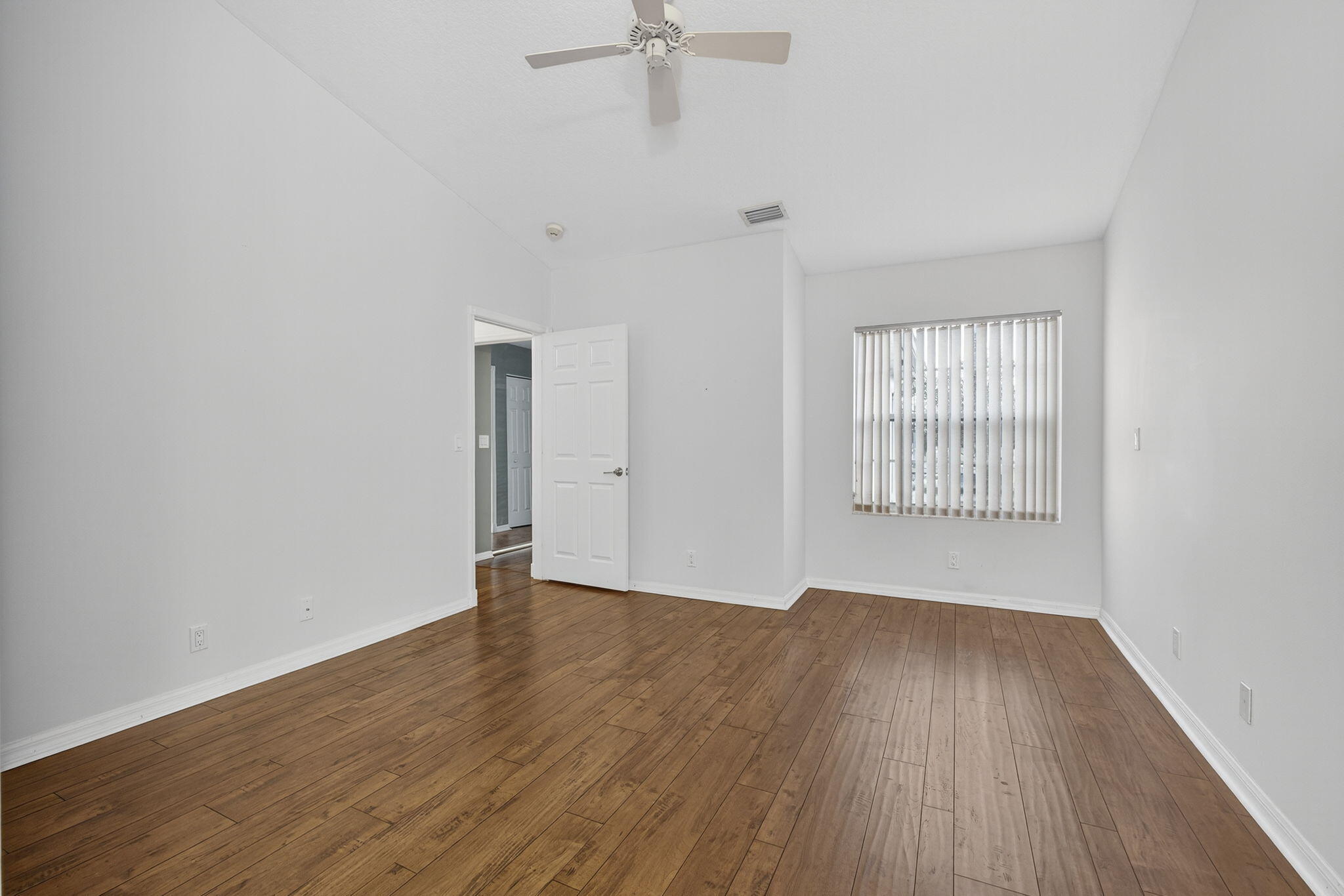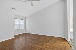 Vacant and move-in ready! This beautifully maintained Golf Estate Villas townhome offers incredible value with low HOA fees. Enjoy wide-open canal and green space views from your private, covered screen patio. Built with durable CBS construction and a barrel tile roof, this home features an open kitchen with a pantry, tile floors downstairs, and beautiful wood laminate upstairs. The oversized garage provides plenty of shelving and storage space. Inside, you'll find spacious living areas, a bright kitchen, and comfortable bedrooms. Get READY for BIG added value with exterior upgrades such as a new roof, stucco repairs and fresh paint all coming soon. Move in with peace of mind knowing these updates are in the works. This home offers the perfect blend of convenience and lifestyle.