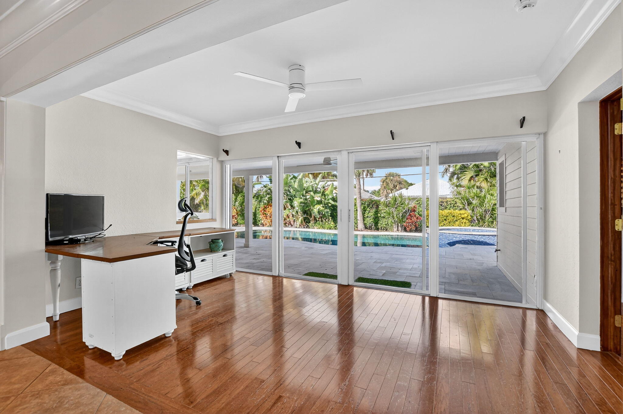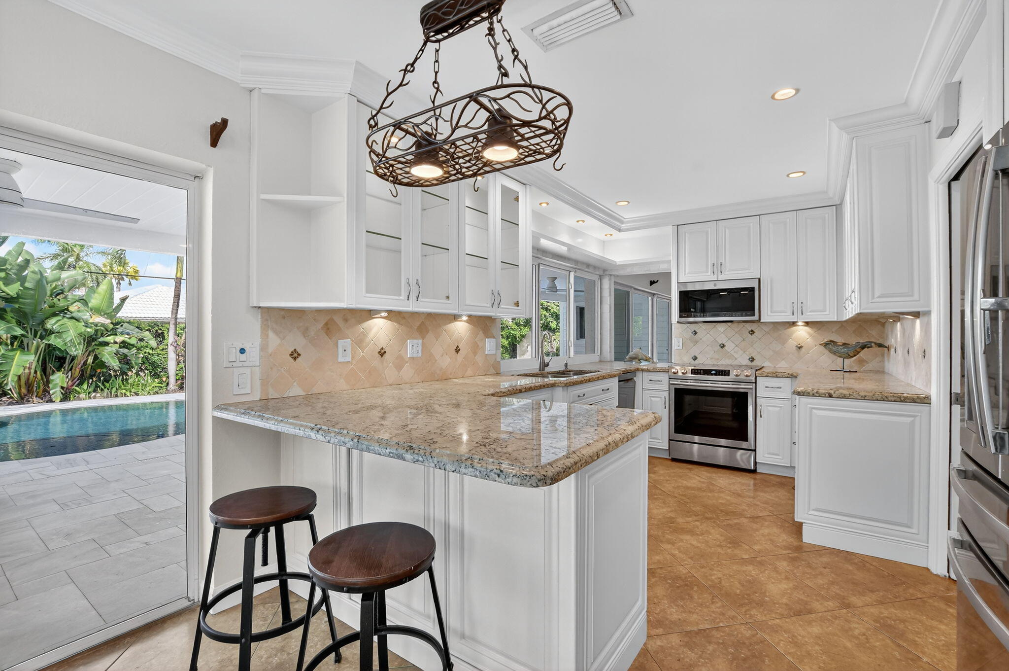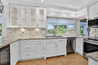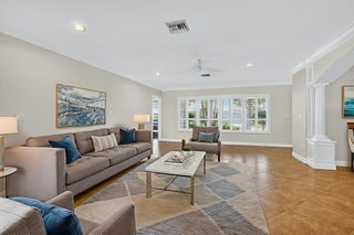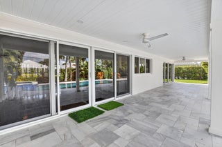 Located on a quiet street with no cut-through traffic, this contemporary Bermuda-Colonial residence sits on an oversized interior lot boasting more than a quarter acre. Granite kitchen with stainless appliances. Newer hot water heater, dishwasher, refrigerator, microwave, disposal, washer and dryer.Wide-open floorplan with 3 sizable bedrooms plus an office. Meticulously manicured landscape package with synthetic sod surrounding the firepit in one corner of the large yard. Impact glass throughout. Just painted inside and out! Virtually staged to show scale. Move-in condition, quick close available. Vacant.