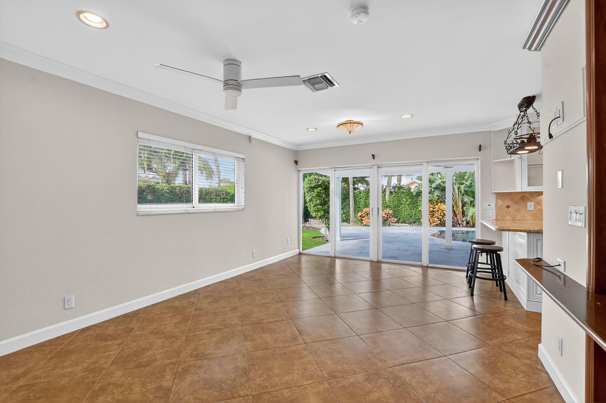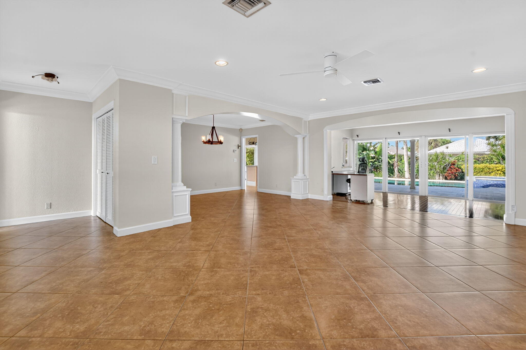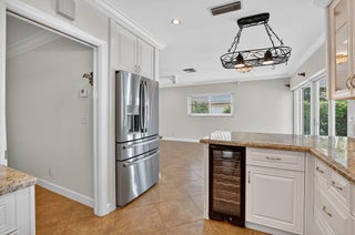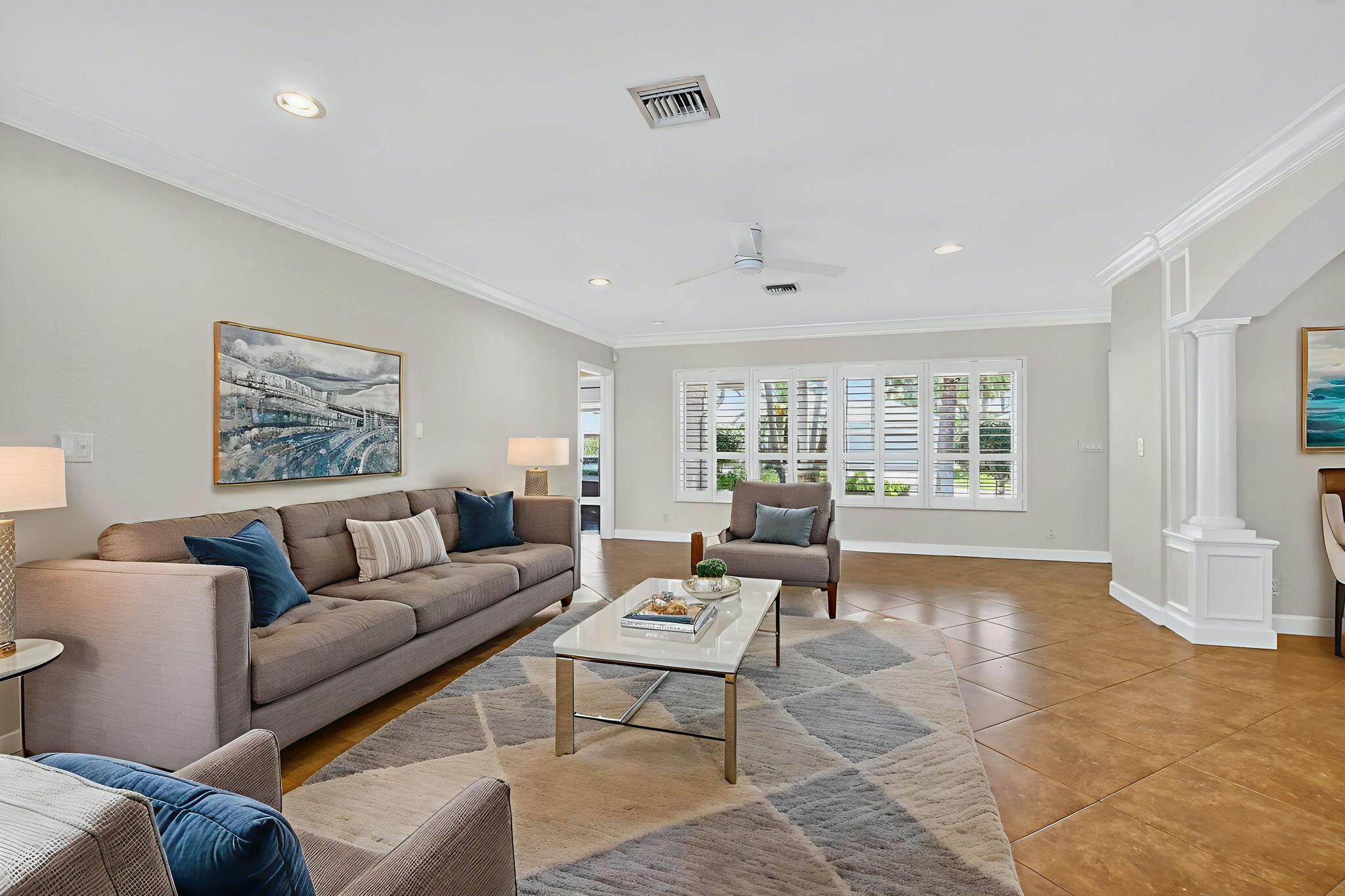 Located on a quiet street with no cut-through traffic, this contemporary Bermuda-Colonial residence sits on an oversized interior lot boasting more than a quarter acre. Granite kitchen with stainless appliances. Newer hot water heater, dishwasher, refrigerator, microwave, disposal, washer and dryer.Wide-open floorplan with 3 sizable bedrooms plus an office. Meticulously manicured landscape package with synthetic sod surrounding the firepit in one corner of the large yard. Impact glass throughout. Just painted inside and out! Virtually staged to show scale. Move-in condition, quick close available. Vacant.