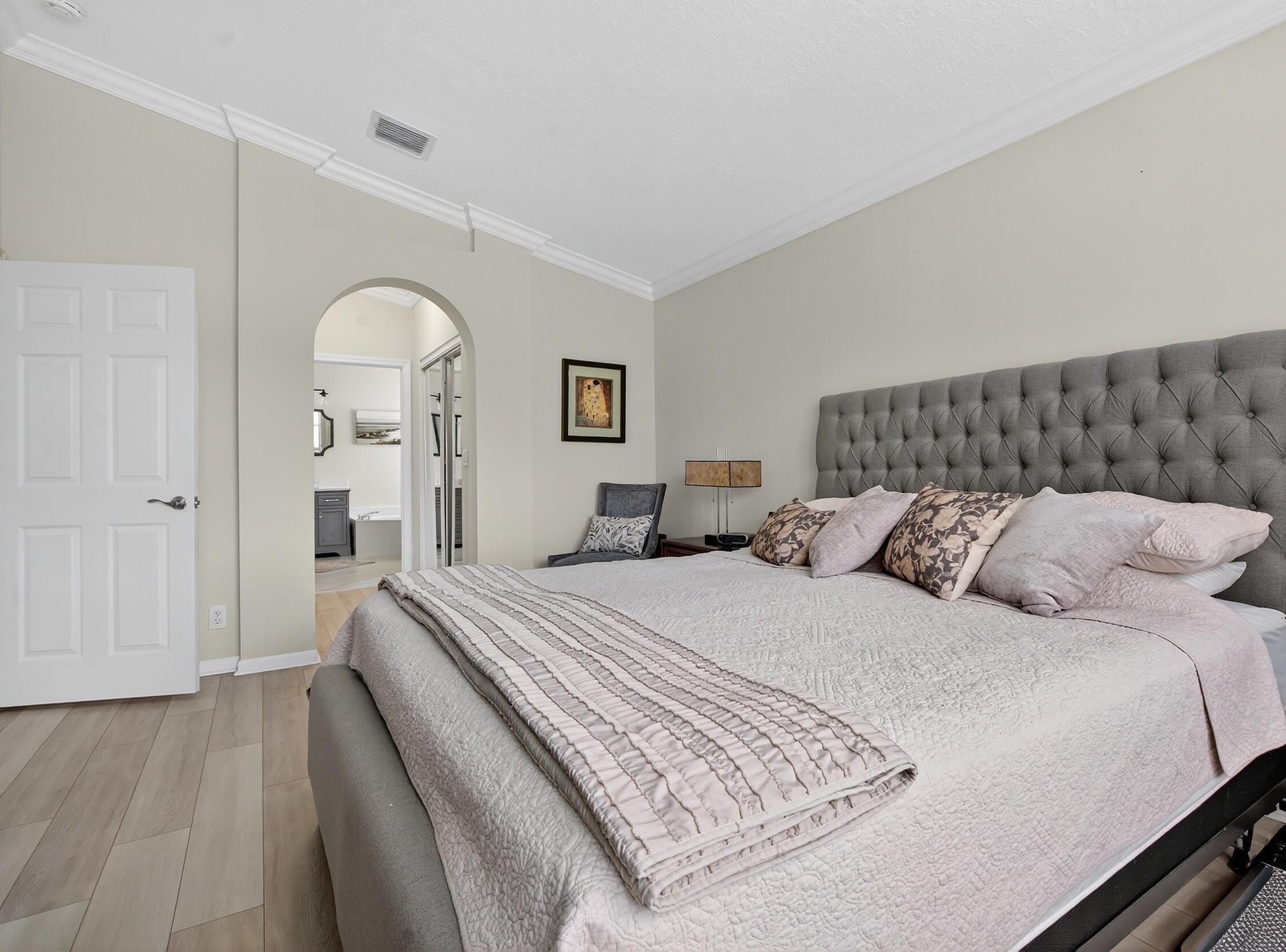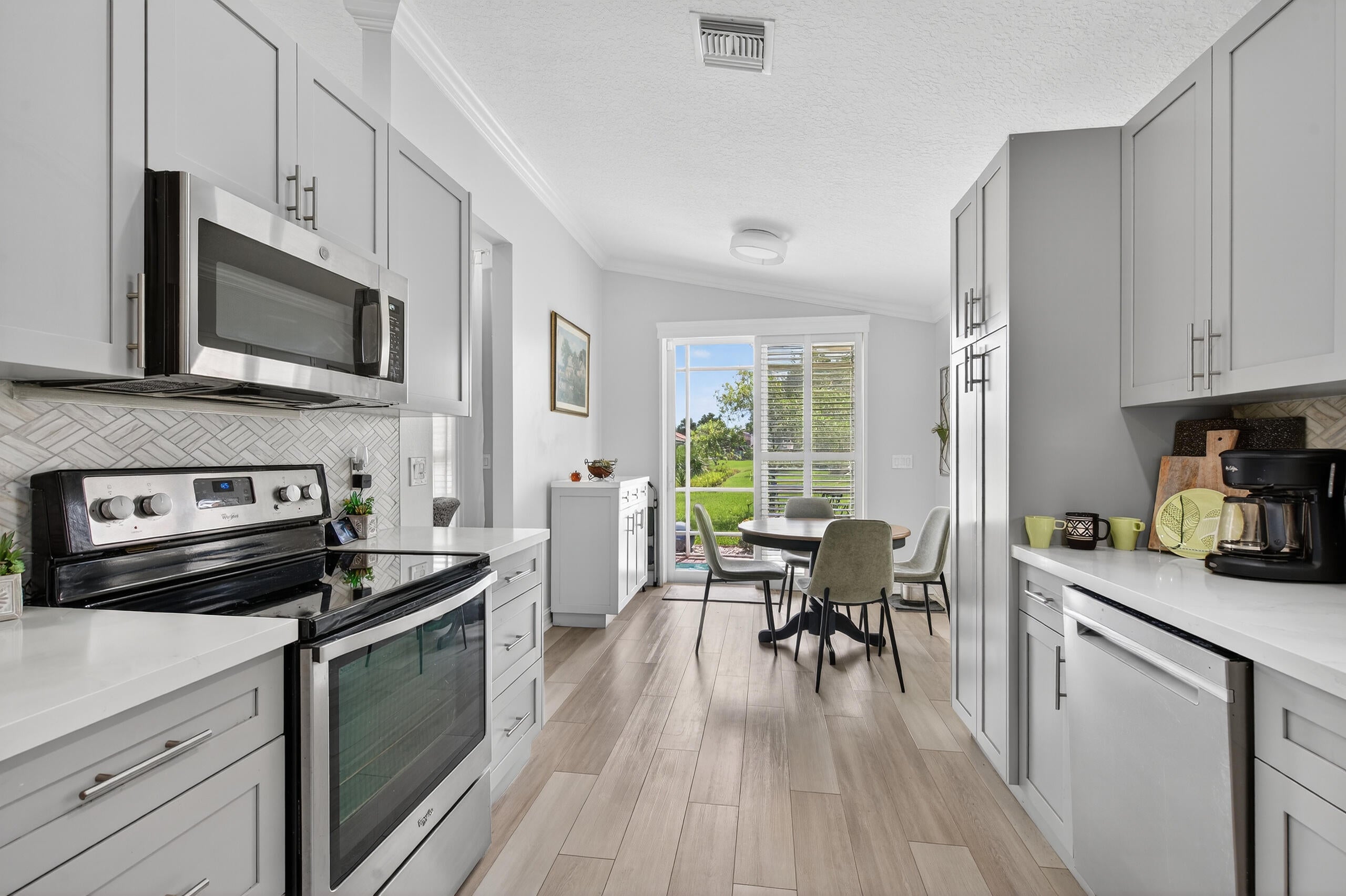 Light, bright and absolutely lovely 3/2 home with attached 2-car garage. Fully updated kitchen and bathrooms. Laminate floors. New roof. Hurricane windows. Unobstructed lake views. Spacious primary bedroom has 2 walk-in closets, ensuite bath with his and hers sinks, shower in renovated 2nd bath. Owners will pay assessments for upgraded exterior house painting in 2026 and proposed clubhouse renovation. Cascade Lakes is a 24/7 guard gated, active adult community with many amenities including indoor/outdoor pool, a fully equipped gym, sauna, library, card room, and billiard room. The active Sports Center has 6 tennis courts and 4 pickleball courts with on-sight pro.