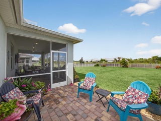 Like new and meticulously maintained, this 2020-built home blends comfort, efficiency, and modern design. Enjoy ultra-low energy costs -- the whole-home solar panels are fully paid off, with an FPL bill averaging just $49/month no matter how much you run everything.Inside, you'll find an open-concept split floor plan with ceramic tile flooring, quartz countertops, and ARISTOKRAFT cabinetry featuring pull-out shelves, a lazy Susan, and dedicated recycling drawers. The custom Halo H2O Ultima whole-house water system provides clean, filtered drinking water right from the tap, complemented by a new maintenance-free water heater. The spacious den offers flexibility for a home office or guest space. The primary suite features custom closet shelving.the home is filled with natural light through impact windows and doors. Step outside to your oversized, covered, screened-in lanai with extended pavers and a mounted outdoor TV (included) perfect for entertaining. The fully fenced quarter-acre lot backs to a private preserve, offering plenty of room for a pool or play area. Additional highlights include a complete gutter system, durable ox-coated garage floor, and extra matching tiles for peace of mind. The HOA fee at Heron Preserve includes community pool, cable, high-speed internet, alarm system monitoring and landline phone