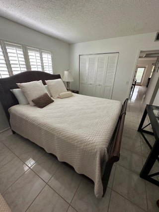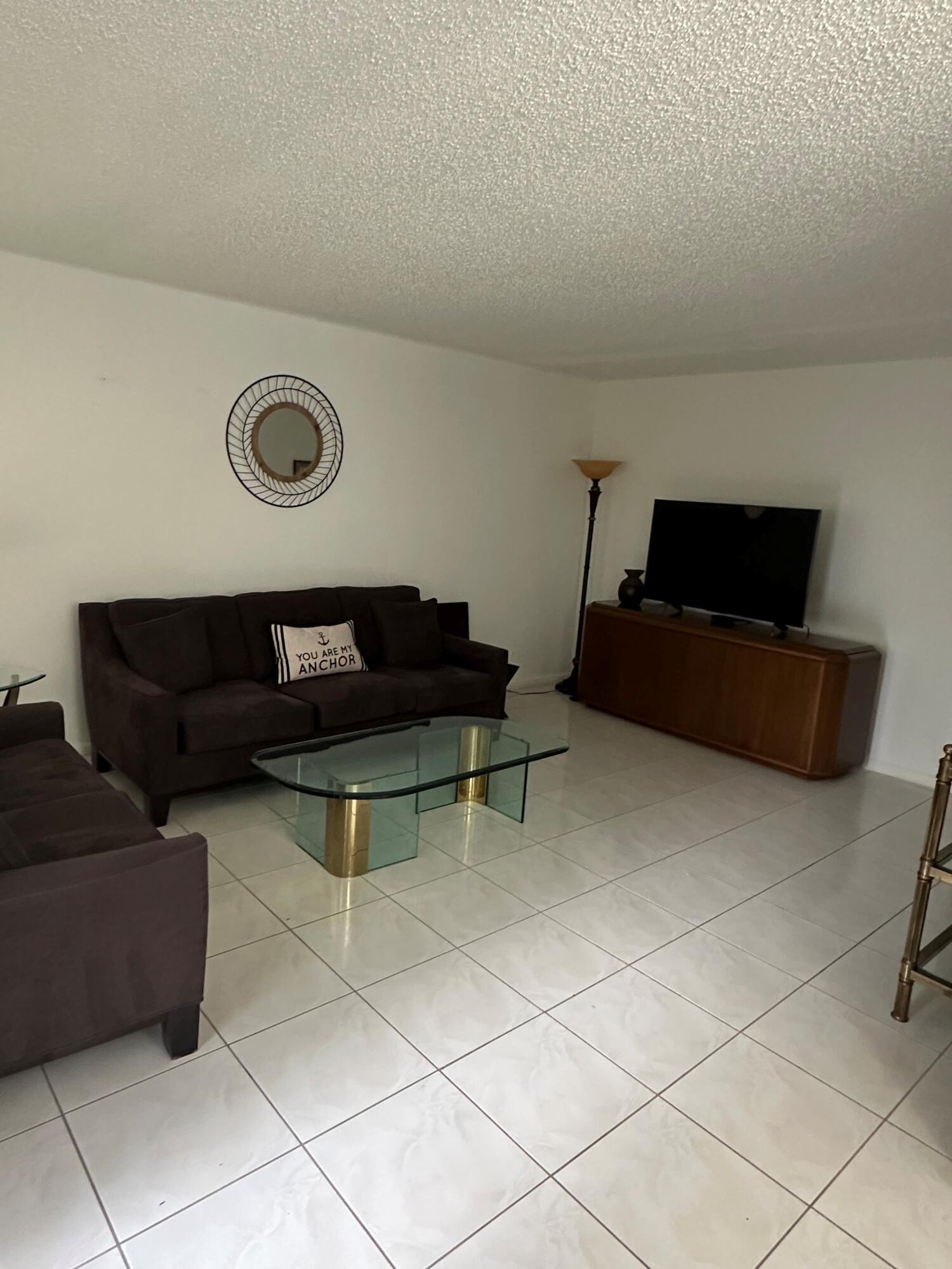 Immaculate, 1st Floor, light and bright CORNER unit in popular 55+ Century Village Boca Raton. Ready to move in. Existing furniture available. Updated kitchen has raised panel cabinets, granite look counters, and newer appliances. Beautiful tile throughout. Newer vanity in master, updated half bath. Large bedrooms. Walk-in closet. Screened patio with beautiful tiled floor and security pull-downs. Large storage closet on patio. Near laundry room. Close to bus stop. Monthly rent includes water, basic internet, trash disposal, and basic cable. Enjoy all of the wonderful amenities that Century Village has to offer - fabulous clubhouse, pools, shows, activities.