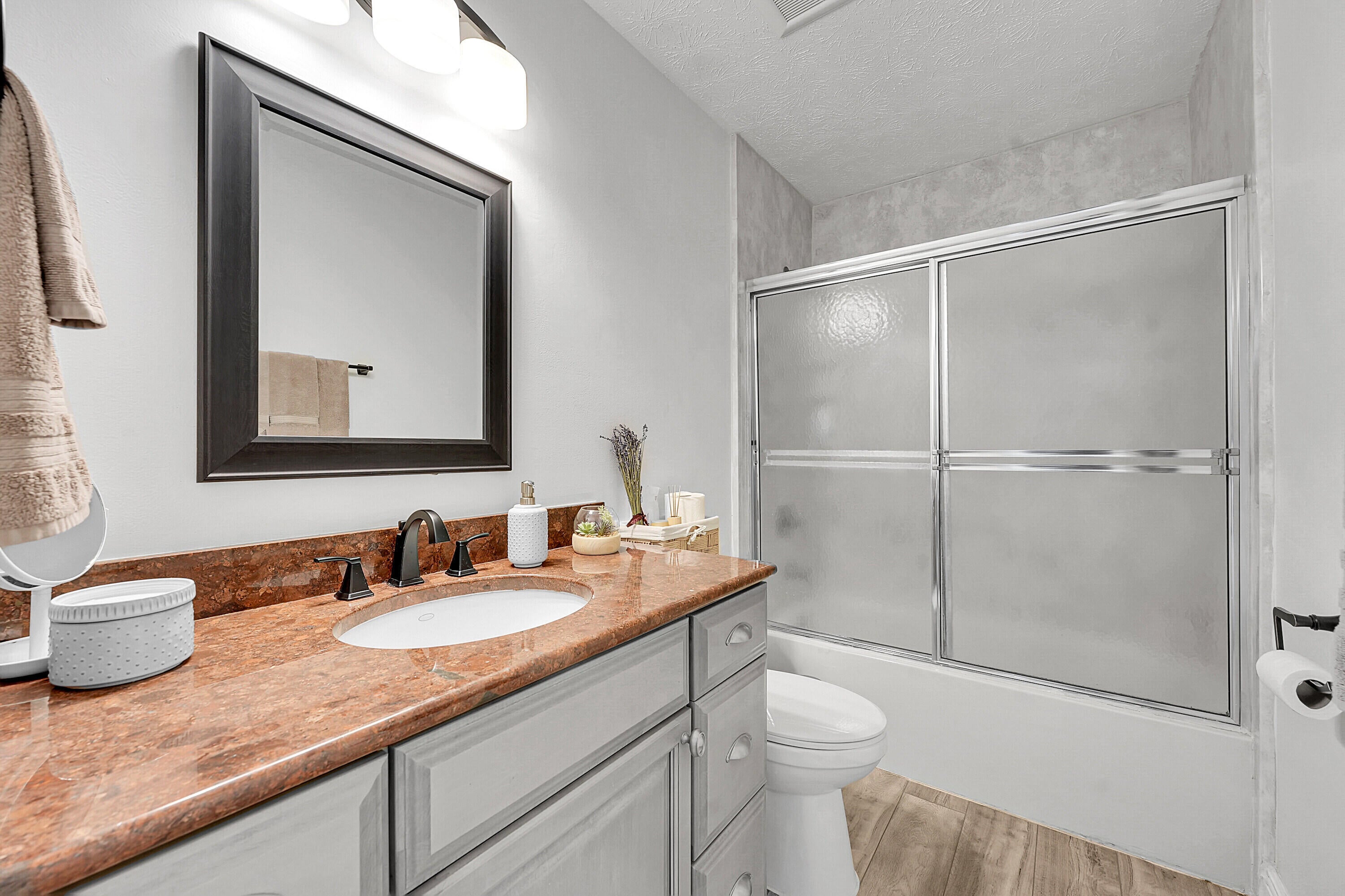 Welcome to your dream home in the perfect location! This stunning 3-bedroom 2-bathroom and pool has been maintained and is ready for you to move in. Great size Pool with gazebo-bar screened, shed in the backyard and extra-long driveway on left side of the house perfect for boat and RV. Beautifull updated with laminate wood floors, French Doors, Crown Molding, open concept with an L Shaped kitchen with Stone Countertops, stainless steel appliances Samsung, LG & Gray Cabinets. Metal roof installed in 2016. Concrete Block construction, Impact glass windows throughout the house. Wood Fence. Convenient location, close toCrosstown Parkway, shopping, dining, schools and parks! Turnkey condition!