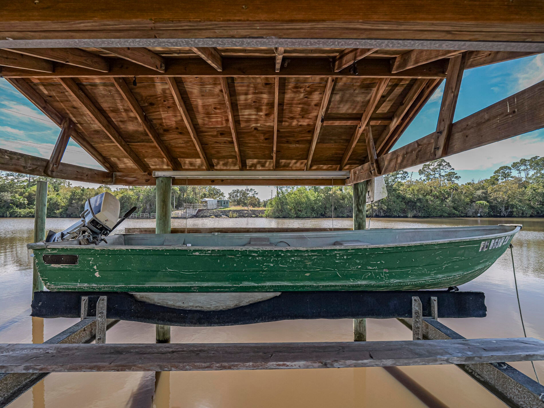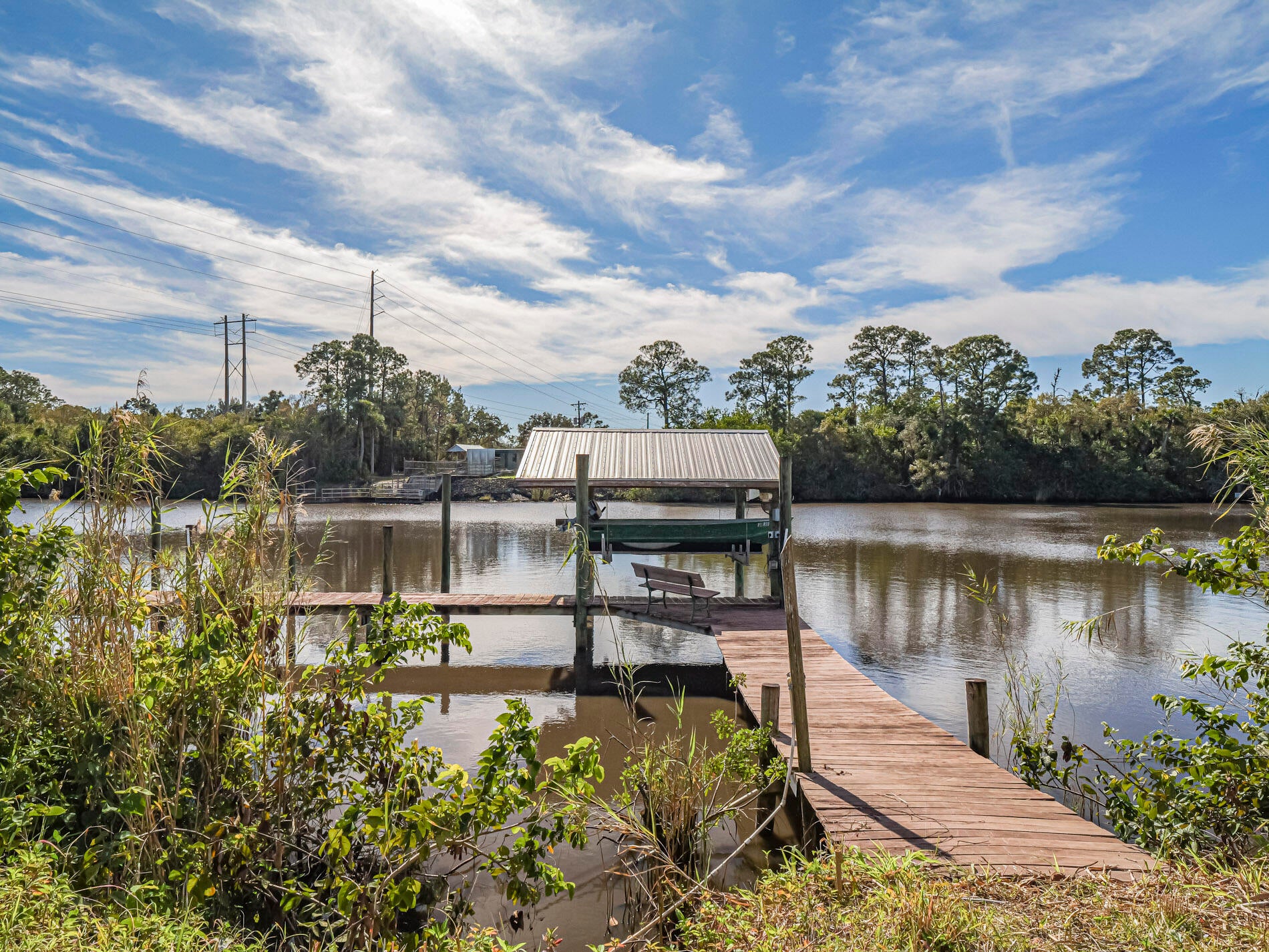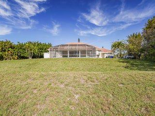 :BACK ON MARKET WITH BRAND NEW ROOF!! What a fantastic opportunity to own almost 2.5 acres of WATERFRONT property! This 3BR/2BA CBS home sits right on the deep waters with access to the Atlantic, Gulf and Okeechobee waterways! Features a private dock with a lift and a view that goes on forever!! Watch the boats go by from your screened lanai (new screens just installed) and recently updated pool. The home features tastefully updated bathrooms, a split bedroom plan, tile floors throughout and new water filtration system. The light and bright white kitchen boasts granite countertops, stainless appliances, gas range, wine fridge & a view of the river from your kitchen island! 1/2 acre of property across the road is perfect for a car enthusiast or to house your toys/RV etc. NO HOA