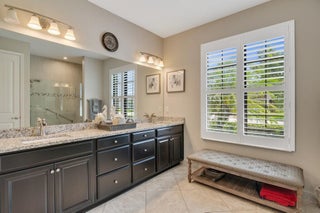 Step into this stunning 3-bedroom, 2.5-bath residence boasting a spacious 3-car garage and a bright, open layout. The interior showcases elegant trey ceilings accented with crown molding, complemented by upgraded cabinetry with matching crown details and stylish plantation shutters throughout. Tile flooring runs seamlessly through all main living areas, combining durability with easy maintenance. The luxurious upgraded showers are tiled up to the ceiling, offering a spa-like feel in both full baths. A freshly painted interior enhances the airy atmosphere, while the bright, open kitchen features modern finishes, abundant counter space, and superior workflow for effortless entertaining and everyday cooking.This home blends sophisticated design with practical living, providing a warm, inviting atmosphere ready for you to move in and make it yours.