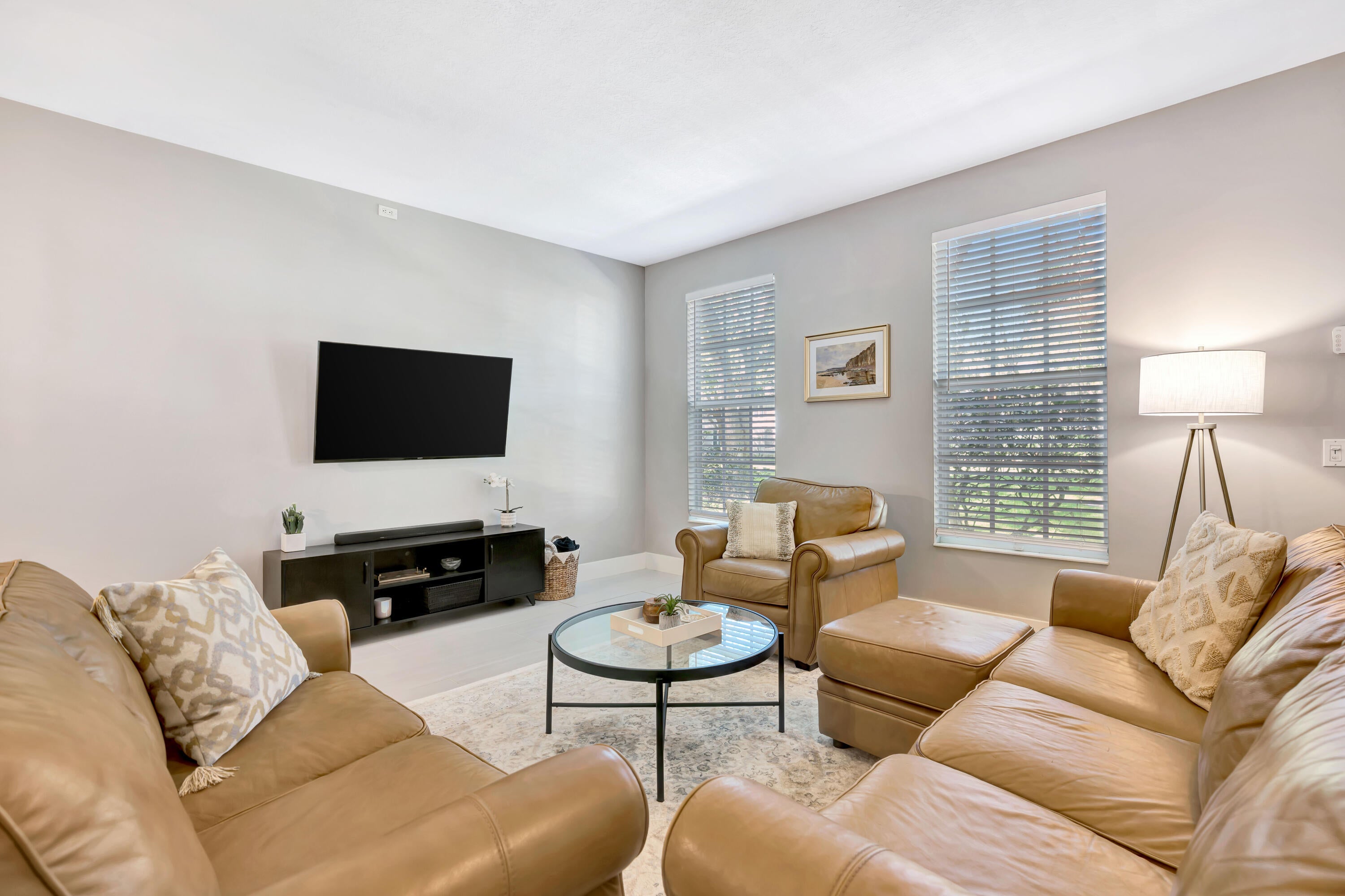 Beautifully updated 3-bedroom, 2-bathroom townhouse in a prime location just steps from the Abacoa Golf Course. This home features elegant tile flooring on the main level and warm wood floors upstairs, blending style with comfort. The modern kitchen and bathrooms are finished with sleek quartz countertops, creating a contemporary yet inviting feel. Enjoy the convenience of being close to restaurants, shops, the Abacoa Amphitheatre (host to numerous concerts) and Roger Dean Chevrolet Stadium (the spring training home of the Marlins and Cardinals). Experience the best of Jupiter living in one of the area's most desirable communities. New roof 2021, Water Heater 2023, AC 2018.
