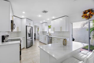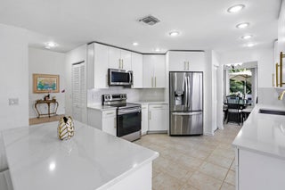 Beautifully maintained 4 bedroom, 2.5 bath two-story pool home with additional downstairs bonus room! Situated at the end of a quiet cul-de-sac, in the desirable Ventura community of Boca Raton's Mission Bay, is this bright CBS 2,259 square foot home with sizable two car garage! Vaulted ceilings in the foyer and living room with recessed lighting provides an openness and elegance as you enter the home. Allow your eyes to gaze just outside the living room to the sparkling screened-in crystal blue pool, while offering additional entertainment space on the newly painted pool deck backed by lush palms. Enjoy the formal dining area just off the pristinely renovated kitchen! Boasting all new quartz countertops, white cabinets, stainless steel LG appliances, an island with additional ...cabinetry and room for stools, as well as two pantries. Just off the kitchen is a brilliantly multi-purpose bonus room which could be used as an office, den or even guest room! The private primary suite is located on the main level, offering lovely pool views with sliders for easy access, a walk-in closet and a reach-in closet, as well as an over-sized bathroom with separate tub and shower, linen closet and a dual sink vanity. Well-designed half bath and laundry room are also located on the main level with freshly cleaned tiled flooring throughout. Well-kept light wood flooring on the stairwell brings you to a generously sized landing, 3 additional spacious bedrooms offering plenty of closet space, as well as a large bathroom with a combo/tub/shower and a dual sink vanity. As a resident of one of West Boca Raton's most premier communities, you can indulge in Mission Bay's resort style amenities which include tennis courts, pickle ball courts, a salt water pool and children's pool, sauna, hot tub, fitness center and studio with complimentary classes, locker rooms, steam room, basketball, volleyball, playground, clubhouse and so much more! Additional benefits with the low HOA include being in a pristinely kept gated community, front yard lawn care, basic cable, high-speed internet, exterior painting of the home and a private neighborhood playground. Mission Bay is mere minutes from an extensive array of community amenities including top A+ rated public and private schools, a wide range of recreational facilities, easy accessibility to parks, major shopping centers, exceptional dining options, golf courses, dog parks, playgrounds, sports fields, theaters and top rated health care facilities. Look no further! In choosing your next home in Ventura of Mission Bay, you are choosing more than a house, you are choosing an elevated lifestyle!
