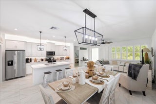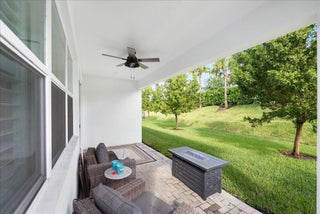 LOCATION! LOCATION! LOCATION! Walking distance to the Heart at Tradition and many restaurants and shops. Step into this modern villa, where you will find a spacious and flexible layout This 2-bedroom, 2.5-bathroom residence features a versatile flex room that can serve as a home office, den, or guest space. The entire home is adorned with beautiful tile flooring, offering both a clean and contemporary feel.Rest easy with the complete peace of mind offered by impact-resistant glass on all windows and doors and a home security system. The primary bedroom boasts a generous walk-in closet for ample storage and a large master bathroom. Outside you can enjoy private peaceful evenings on your covered porch that backs a beautiful grass berm and hedge for additional privacy.