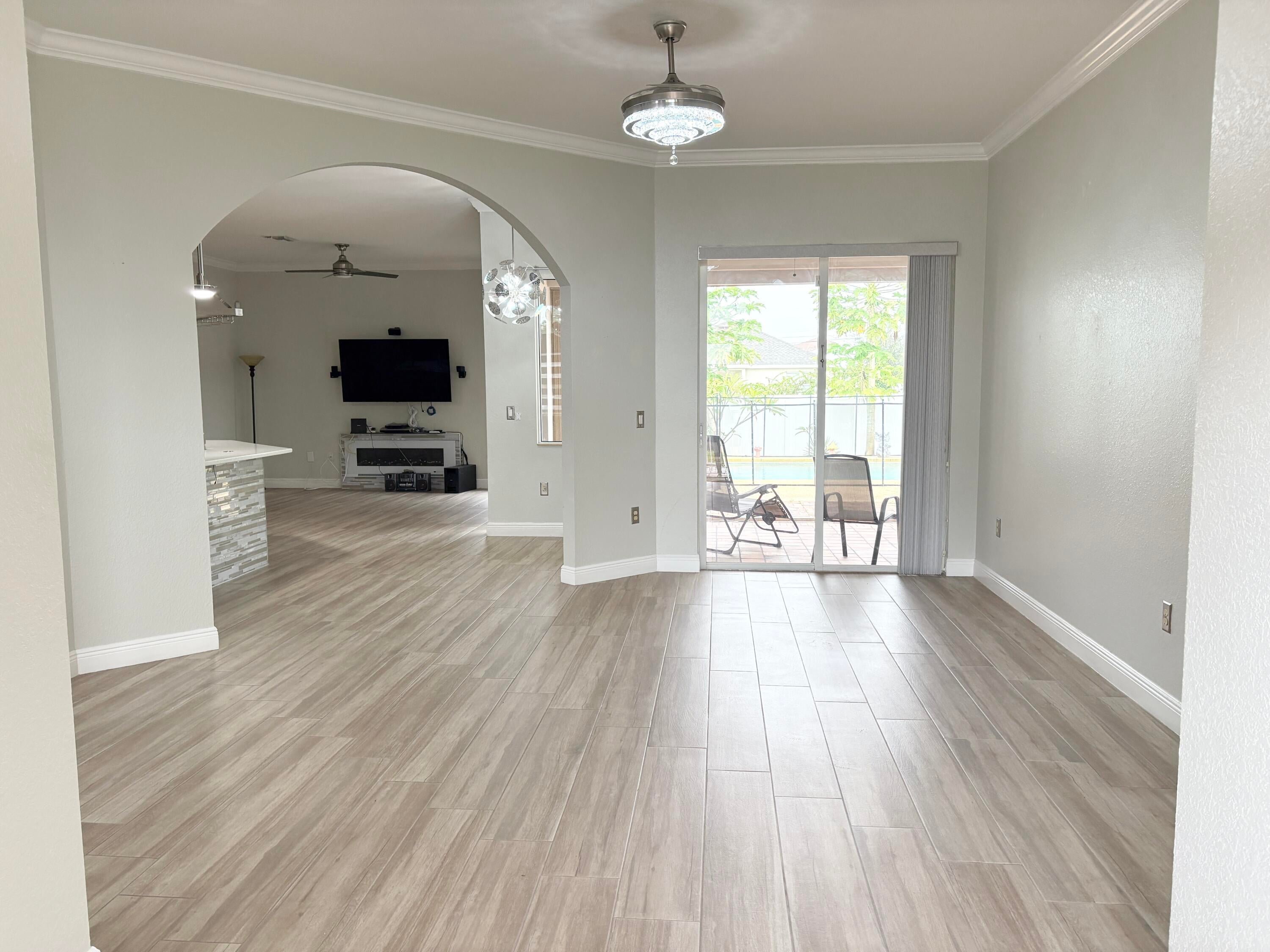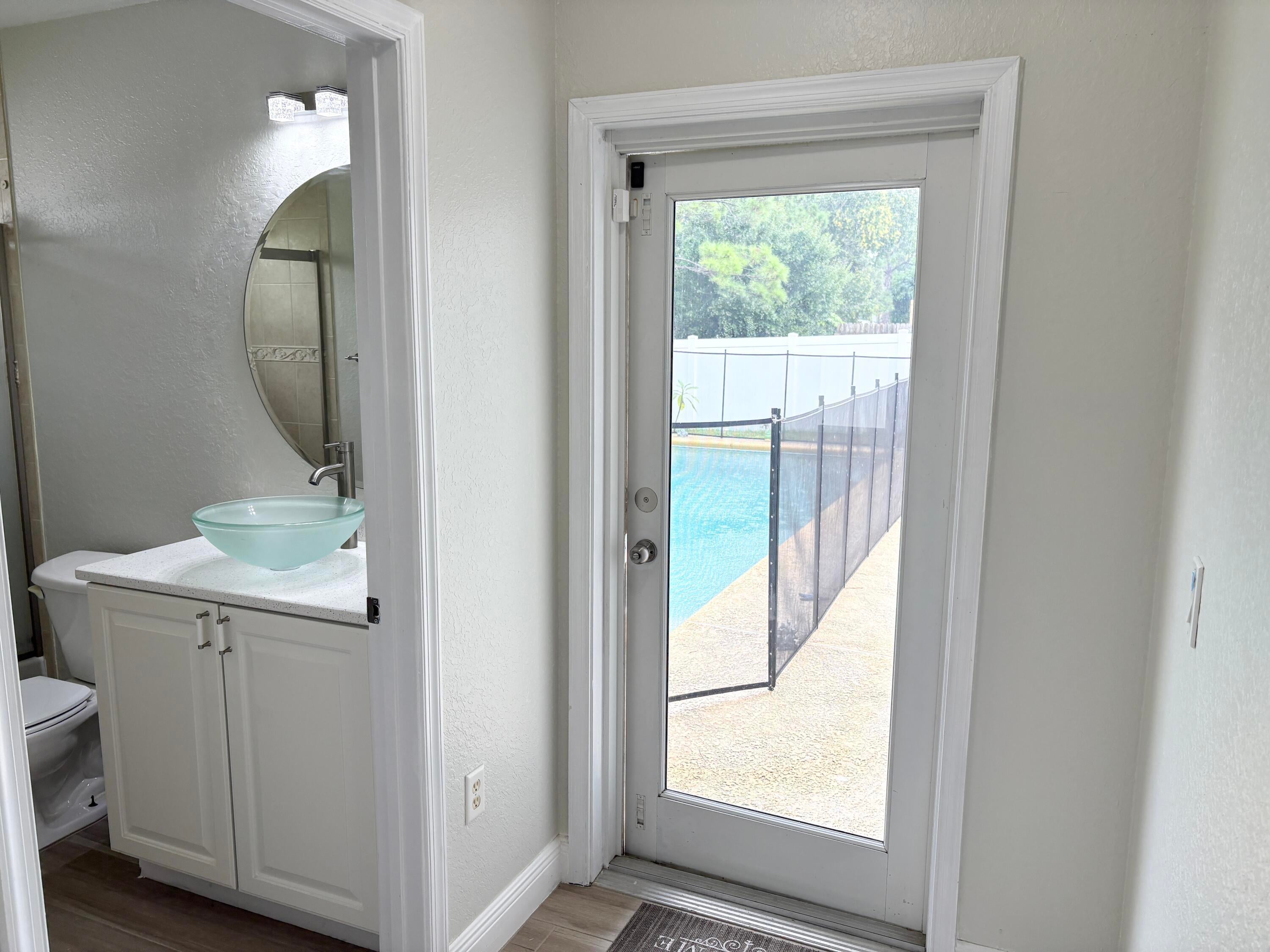 This stunning and spacious 4-bedroom, 3-bath, 2-car garage pool home offers luxury living at its finest. The home features numerous upgrades throughout, including high-end appliances and beautiful quartz countertops in the kitchen and bathrooms. Elegant tile flooring flows seamlessly through the entire home. The master suite includes custom California closets and a spa-like bathroom with a separate soaking tub and walk-in shower. Perfect for entertaining, the home boasts a cabana bath leading directly to the sparkling pool and a large covered patio ideal for outdoor gatherings. The oversized, fenced-in yard provides plenty of privacy and includes a shed for extra storage. A circular driveway adds convenience and curb appeal, making access to and from the and from the home effortless.This property perfectly blends comfort, sophistication, and functionalitytruly a must-see! Tenant insurance required.