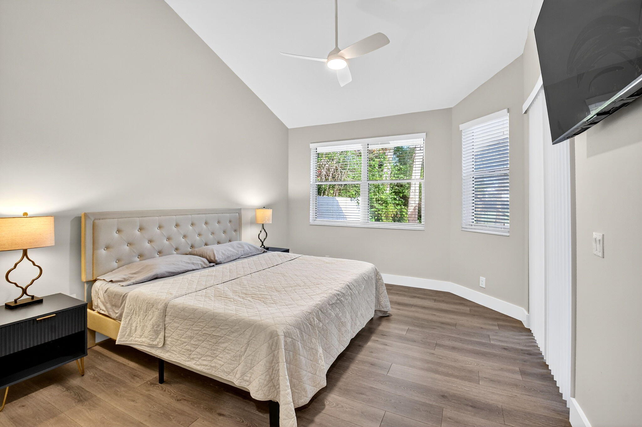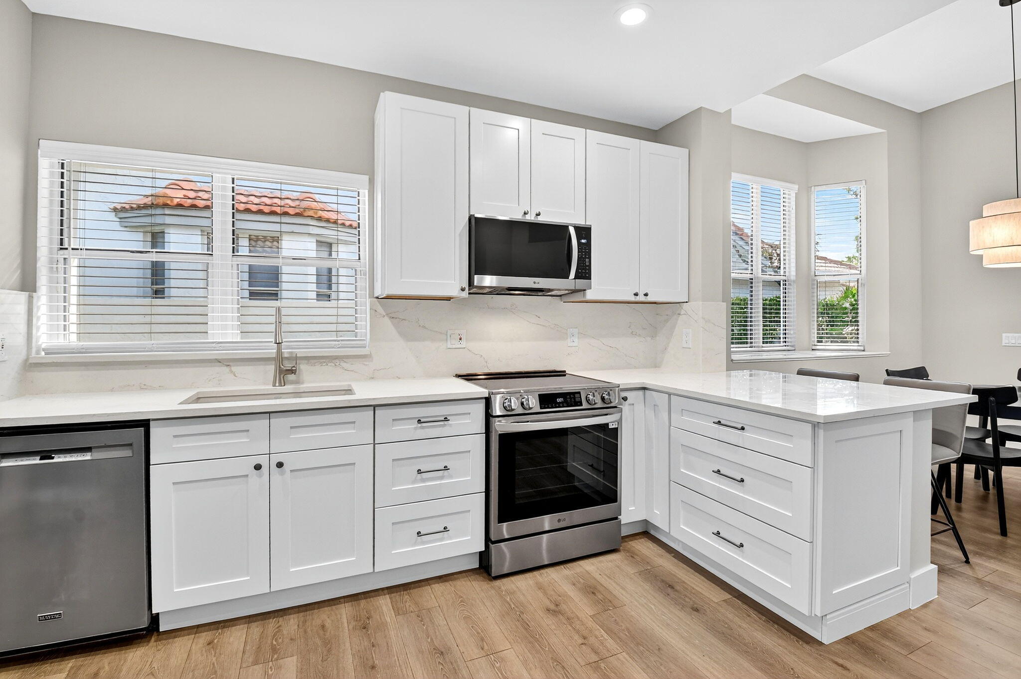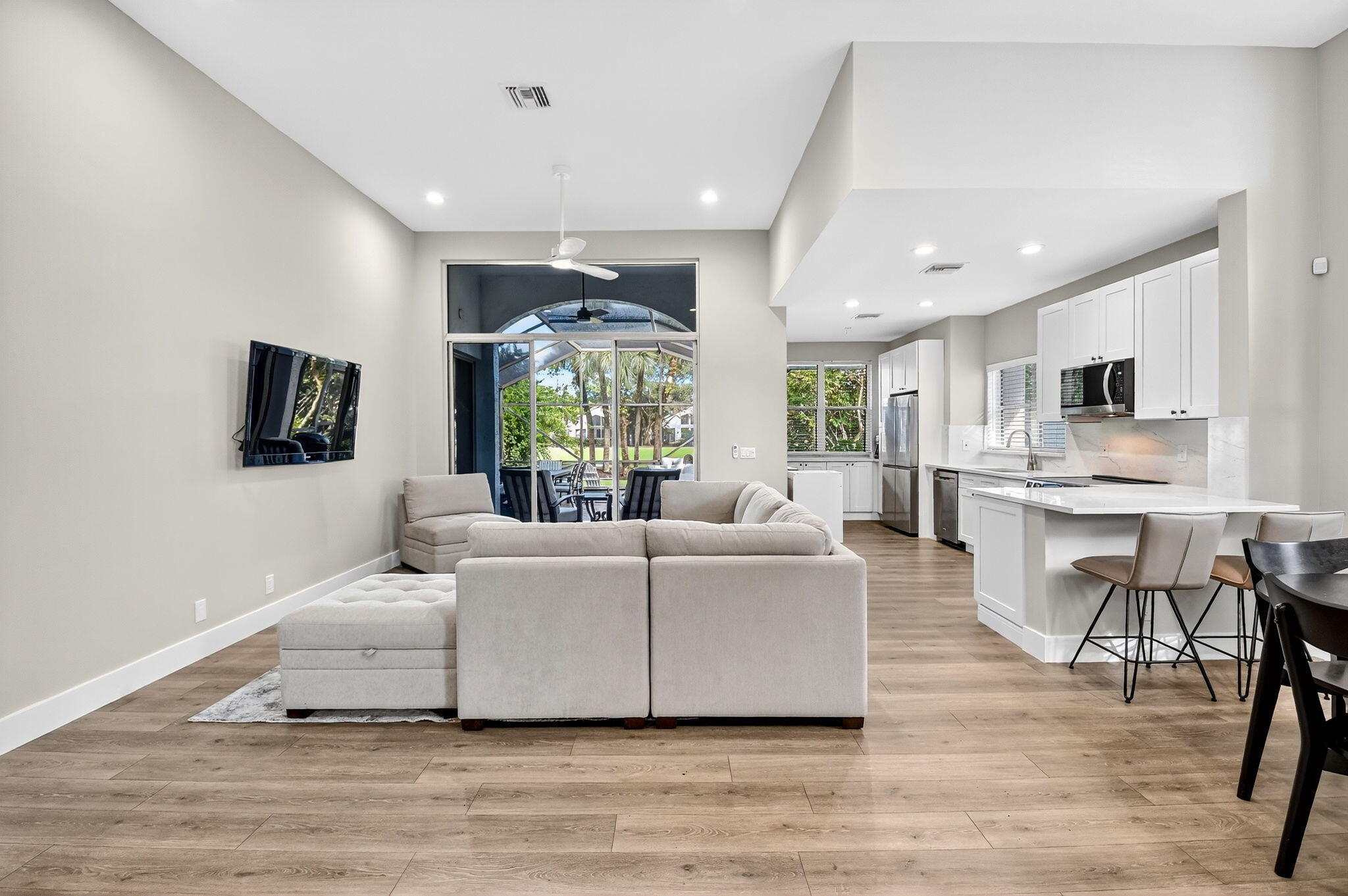 Enjoy the ultimate seasonal getaway in this stunning 3-bedroom, 2-bath one-story townhome located in the sought-after village of Cedar Cay in Broken Sound Country Club. Recently renovated, this home features an open great room with volume ceilings, new stainless steel appliances, quartz countertops, and modern finishes throughout. The spacious primary suite offers a sizable walk-in closet and a beautifully updated en suite bath with a large skylight that fills the space with natural light. Relax on the screened-in back patio overlooking the 8th hole of the Club Course -- the perfect spot for morning coffee or evening sunsets. Experience comfortable, contemporary living in one of Boca Raton's premier country club communities.